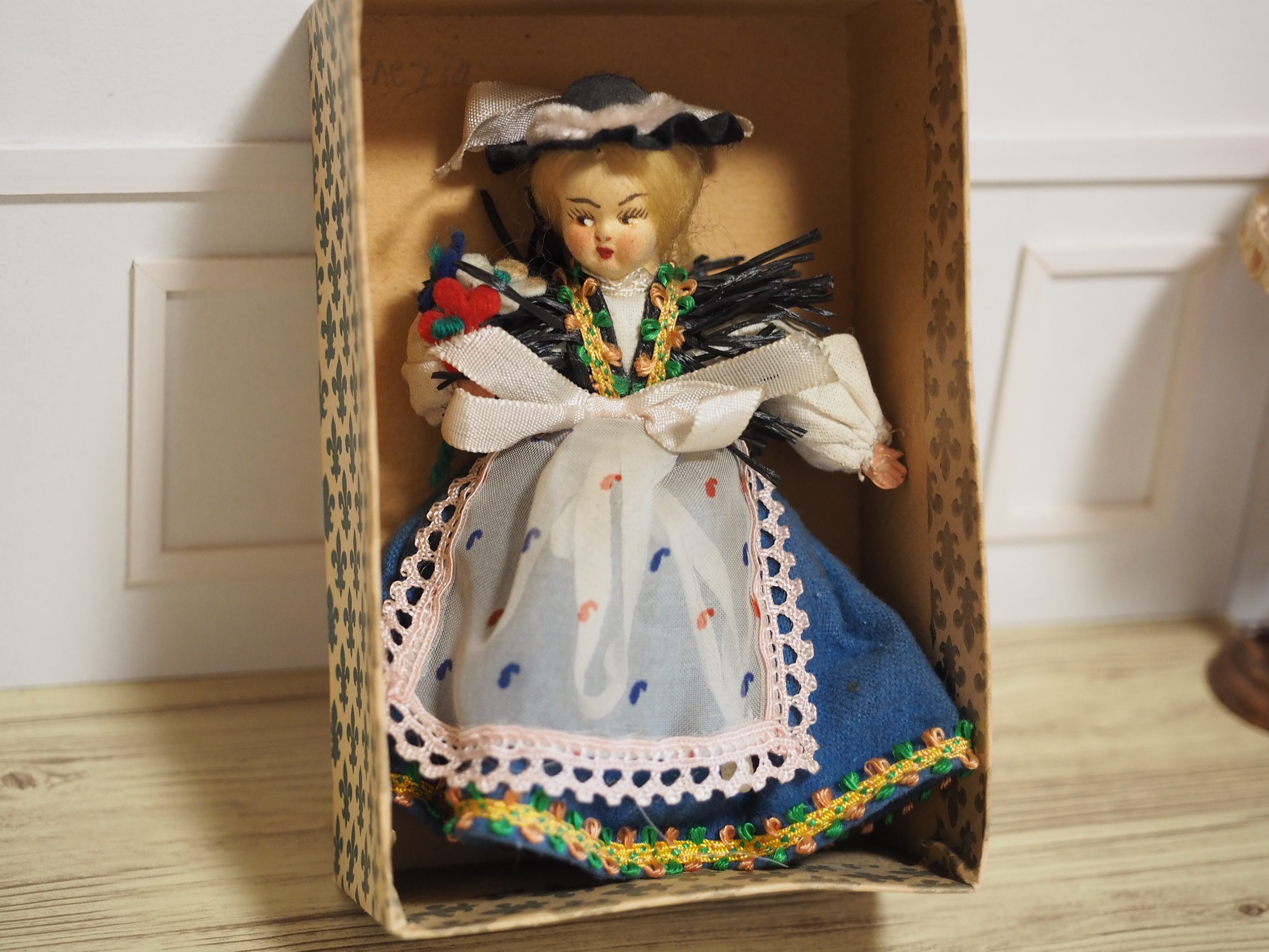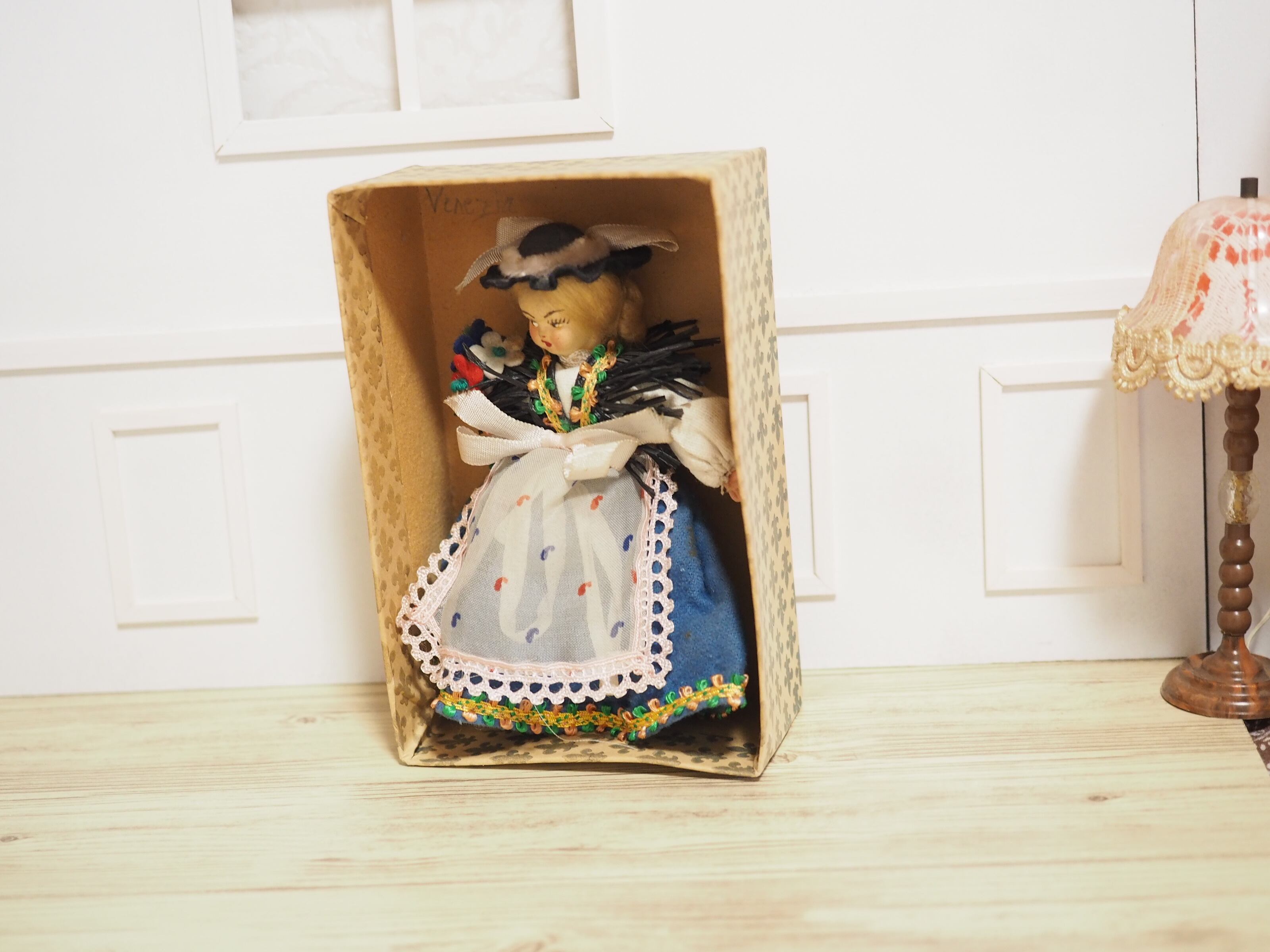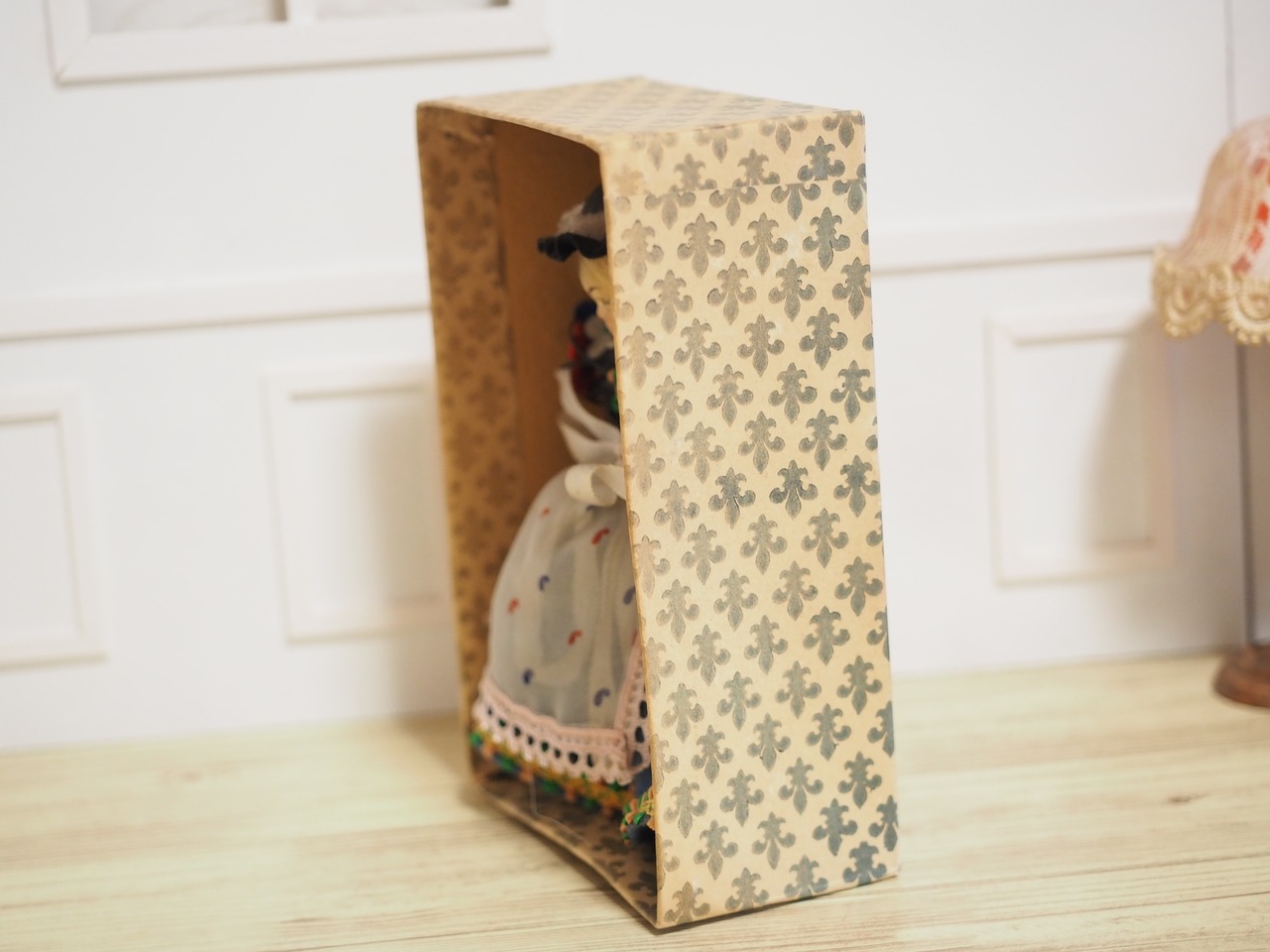小さなお人形と箱もビンテージな風合いでかわいらしく、このまま飾って頂いても素敵です。