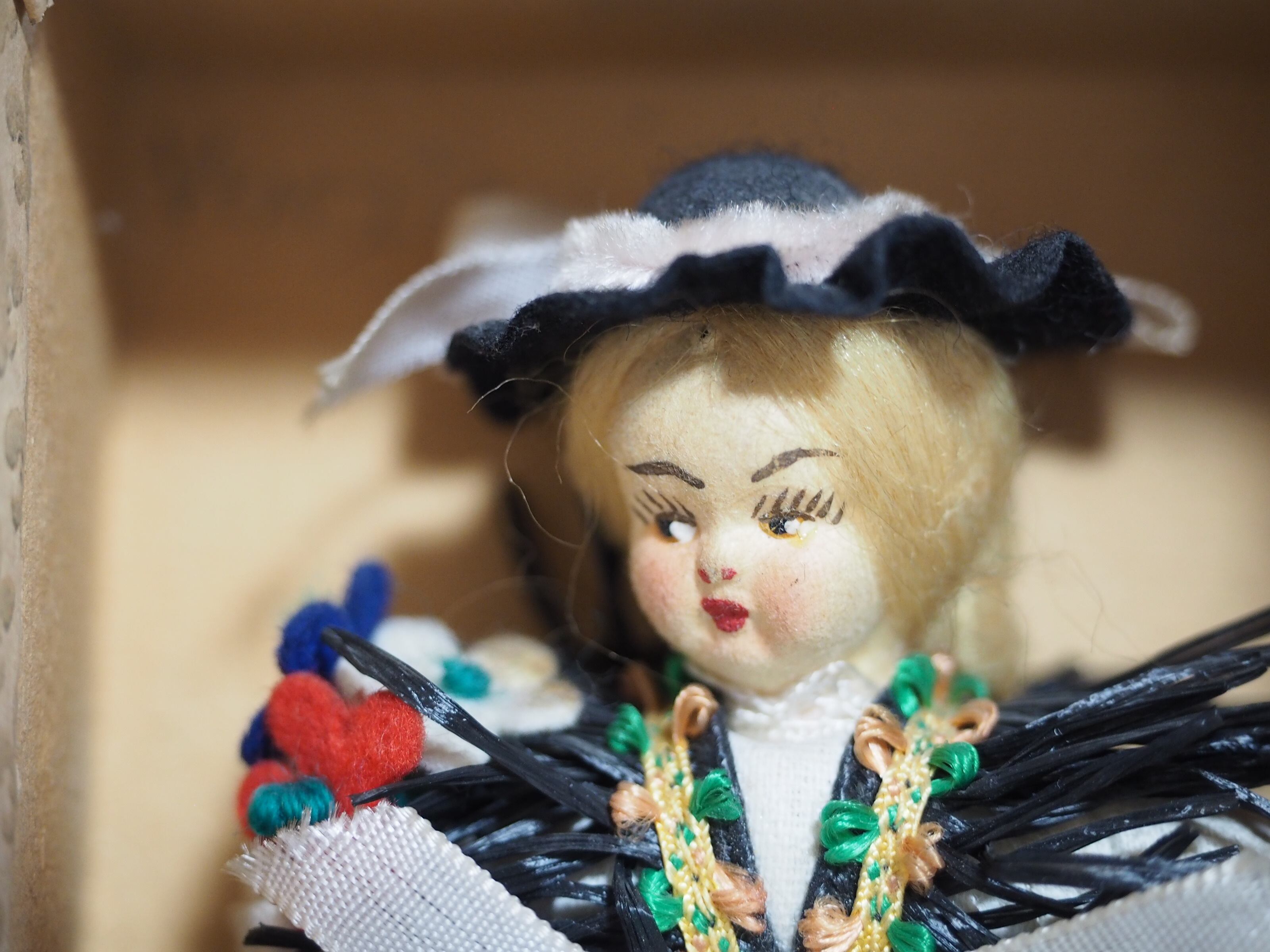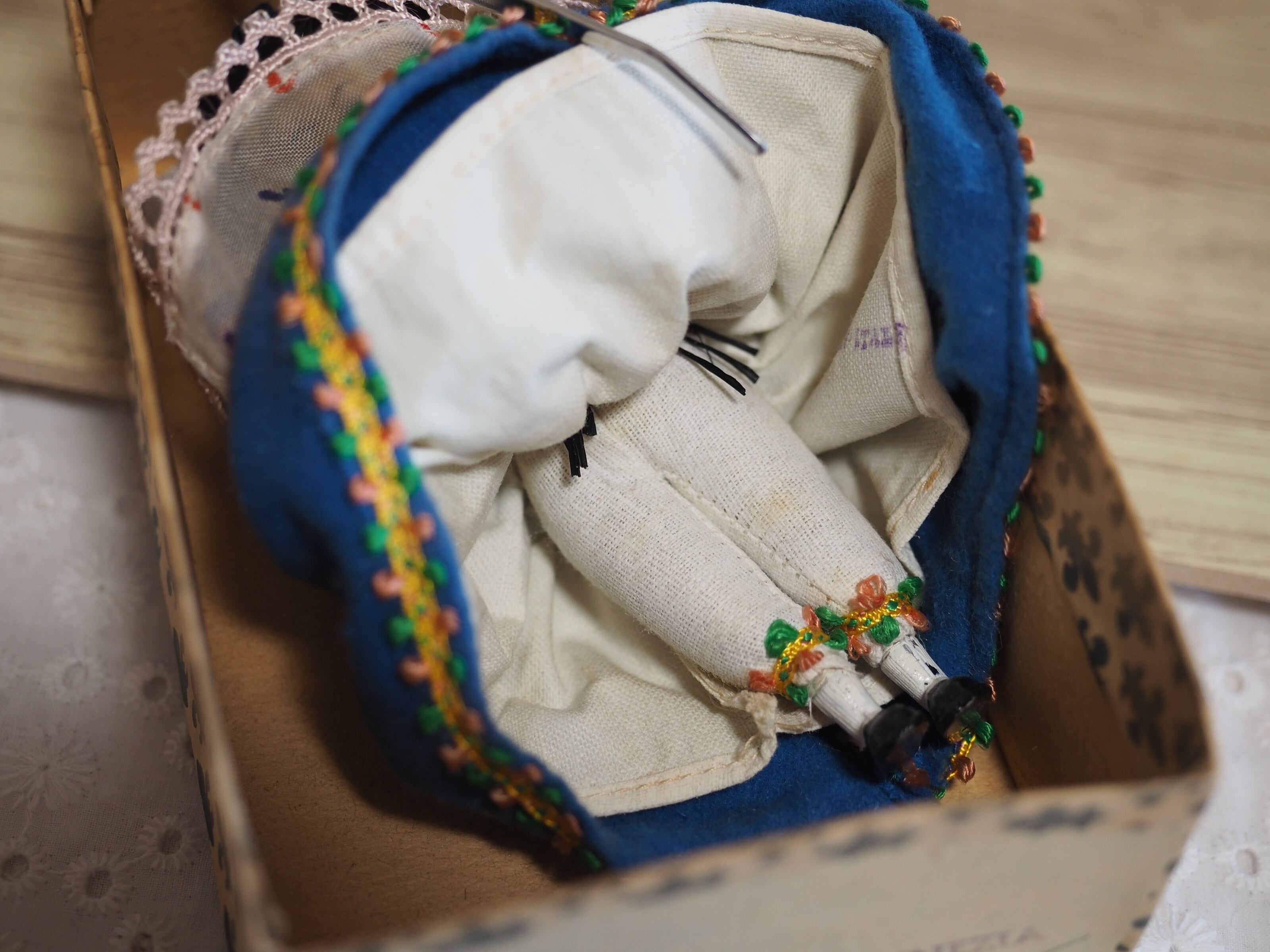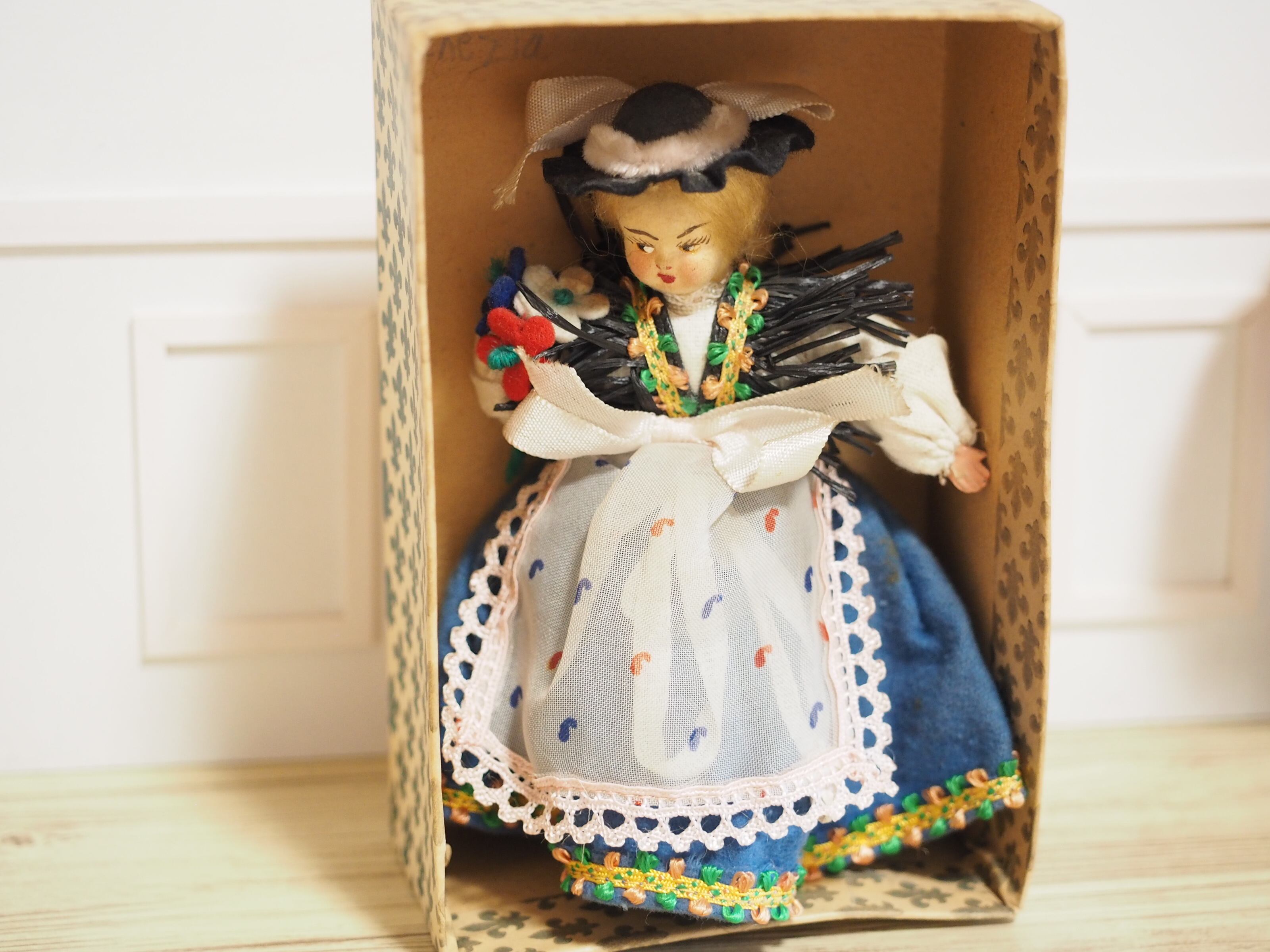 小さなお人形と箱もビンテージな風合いでかわいらしく、このまま飾って頂いても素敵です。