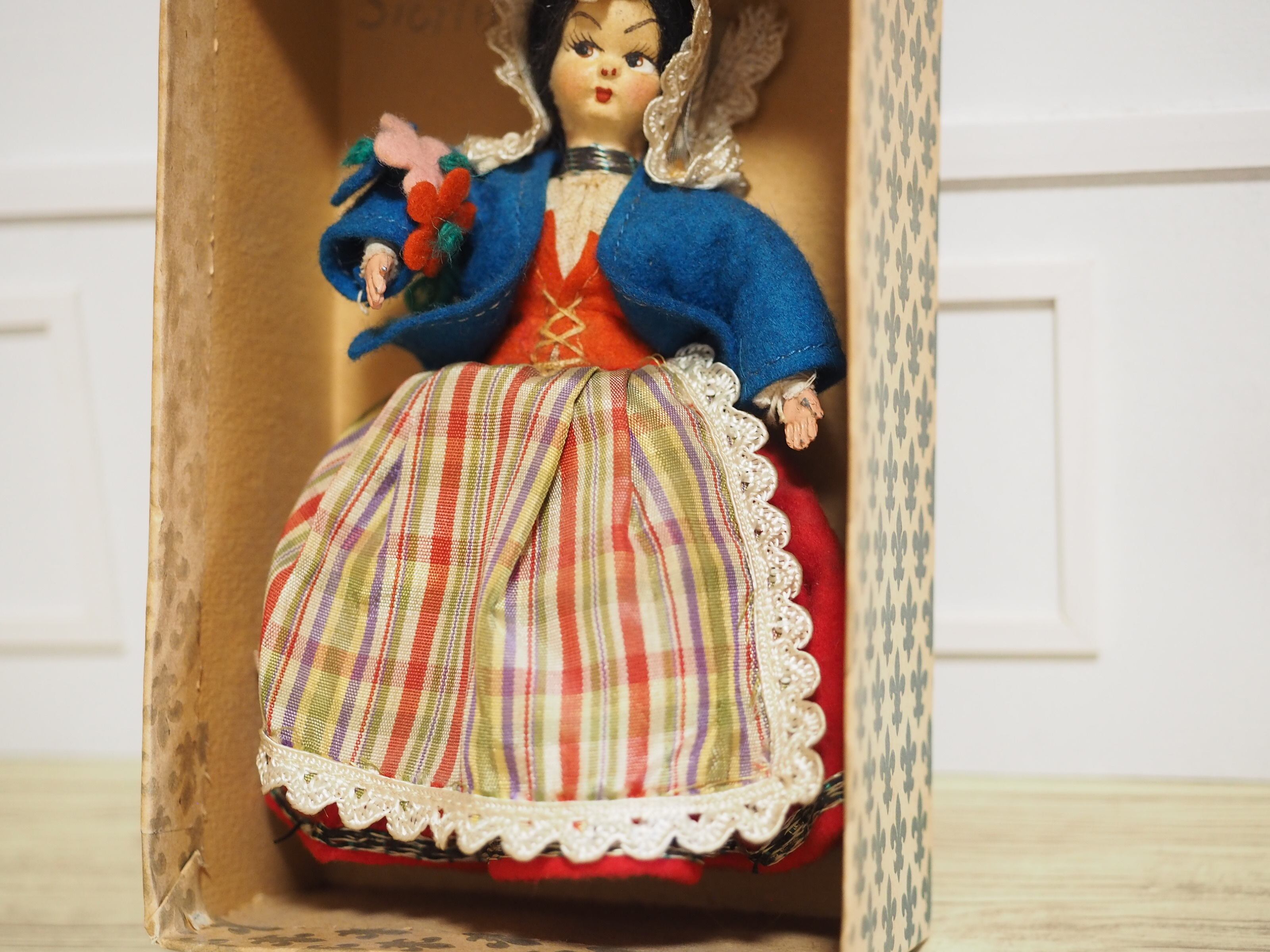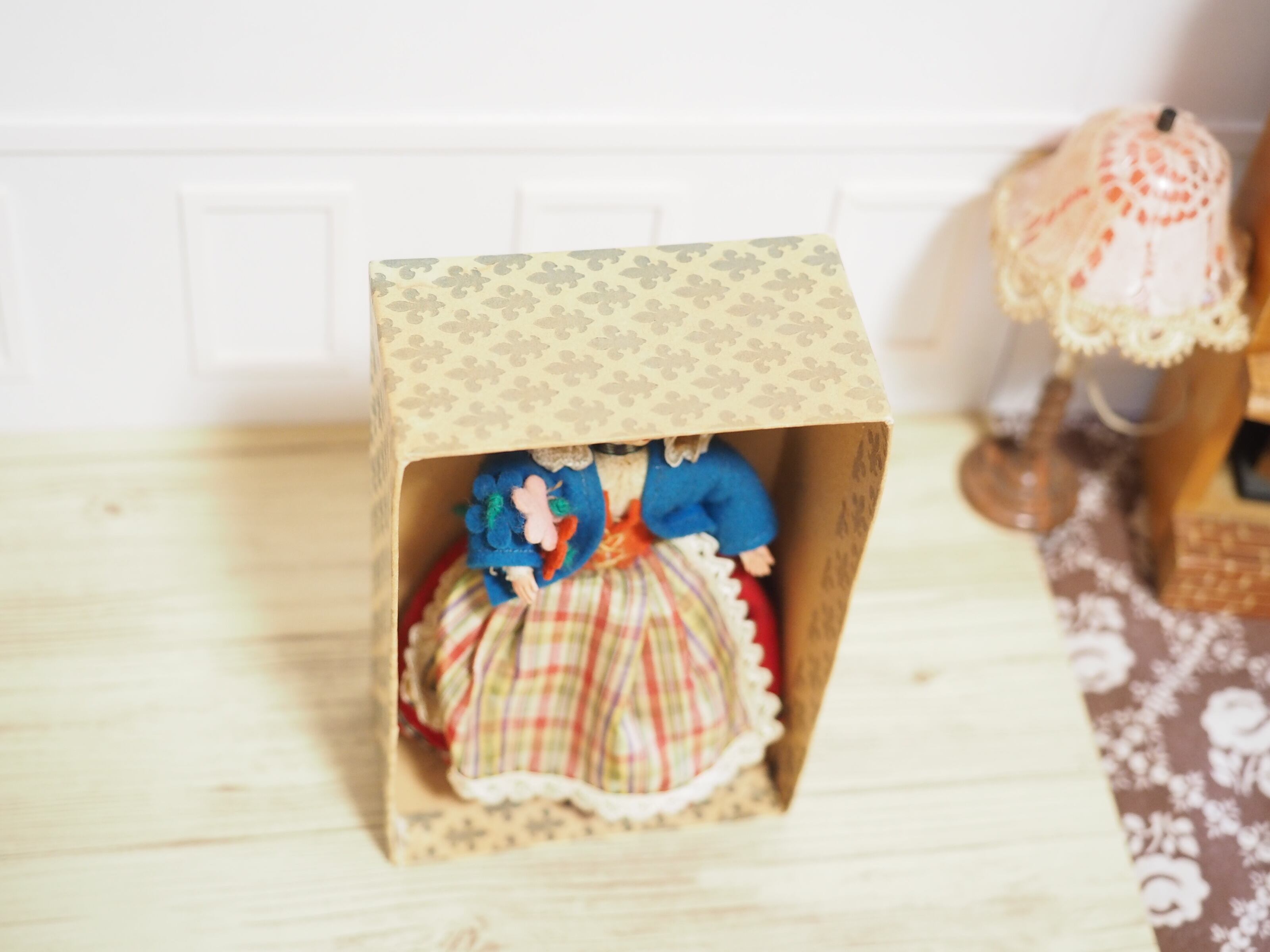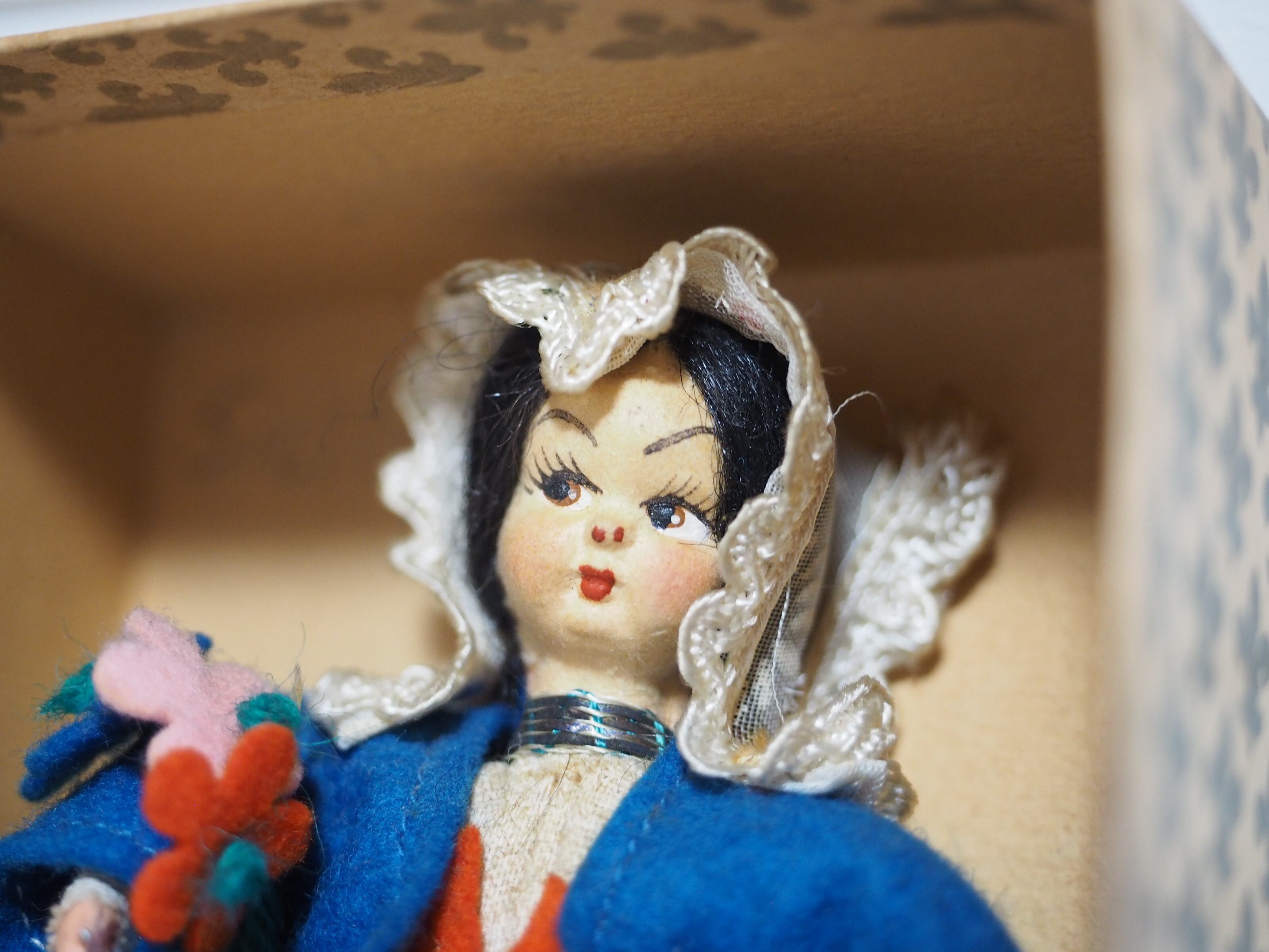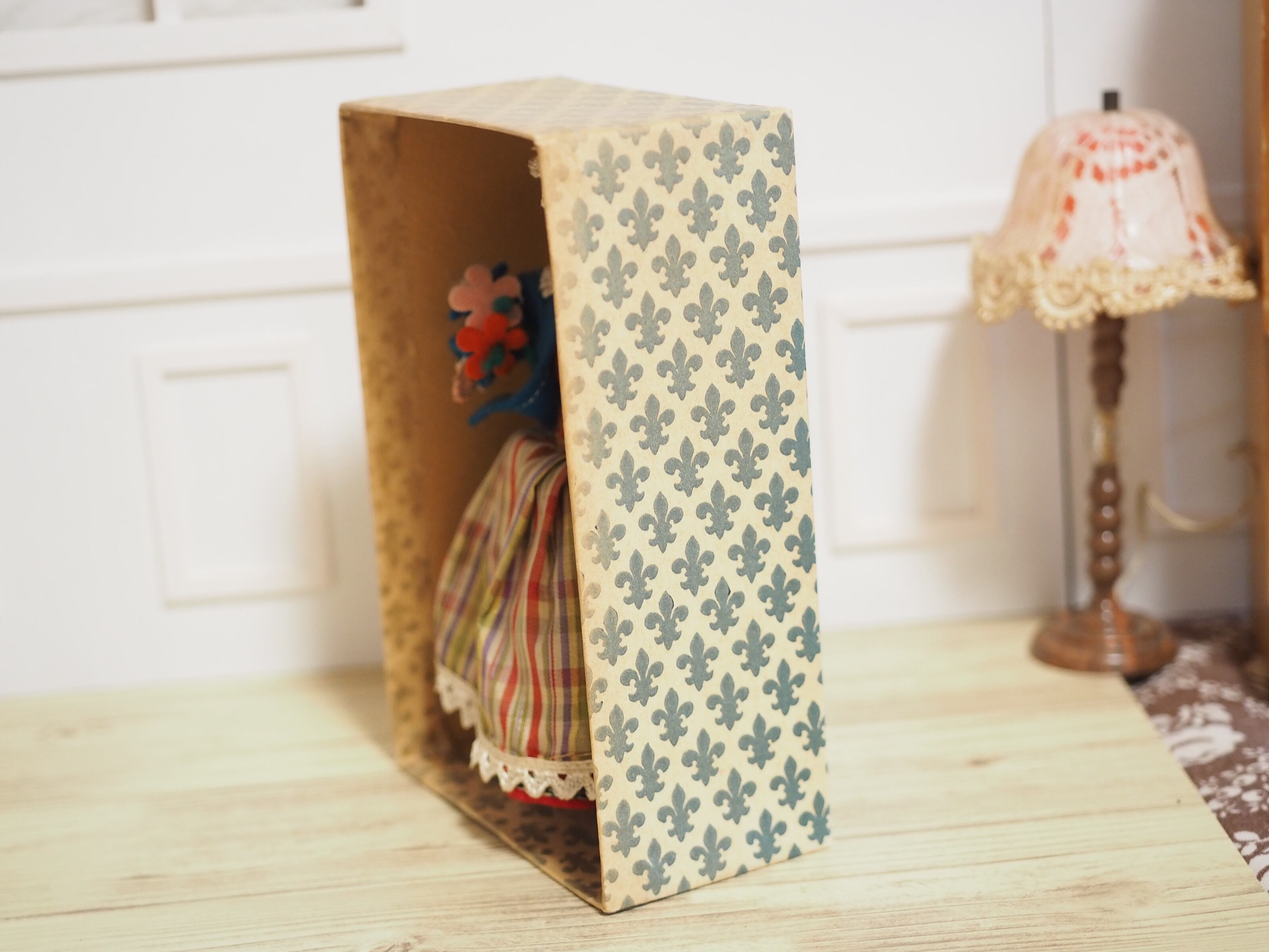 小さなお人形と箱もビンテージな風合いでかわいらしく、このまま飾って頂いても素敵です。