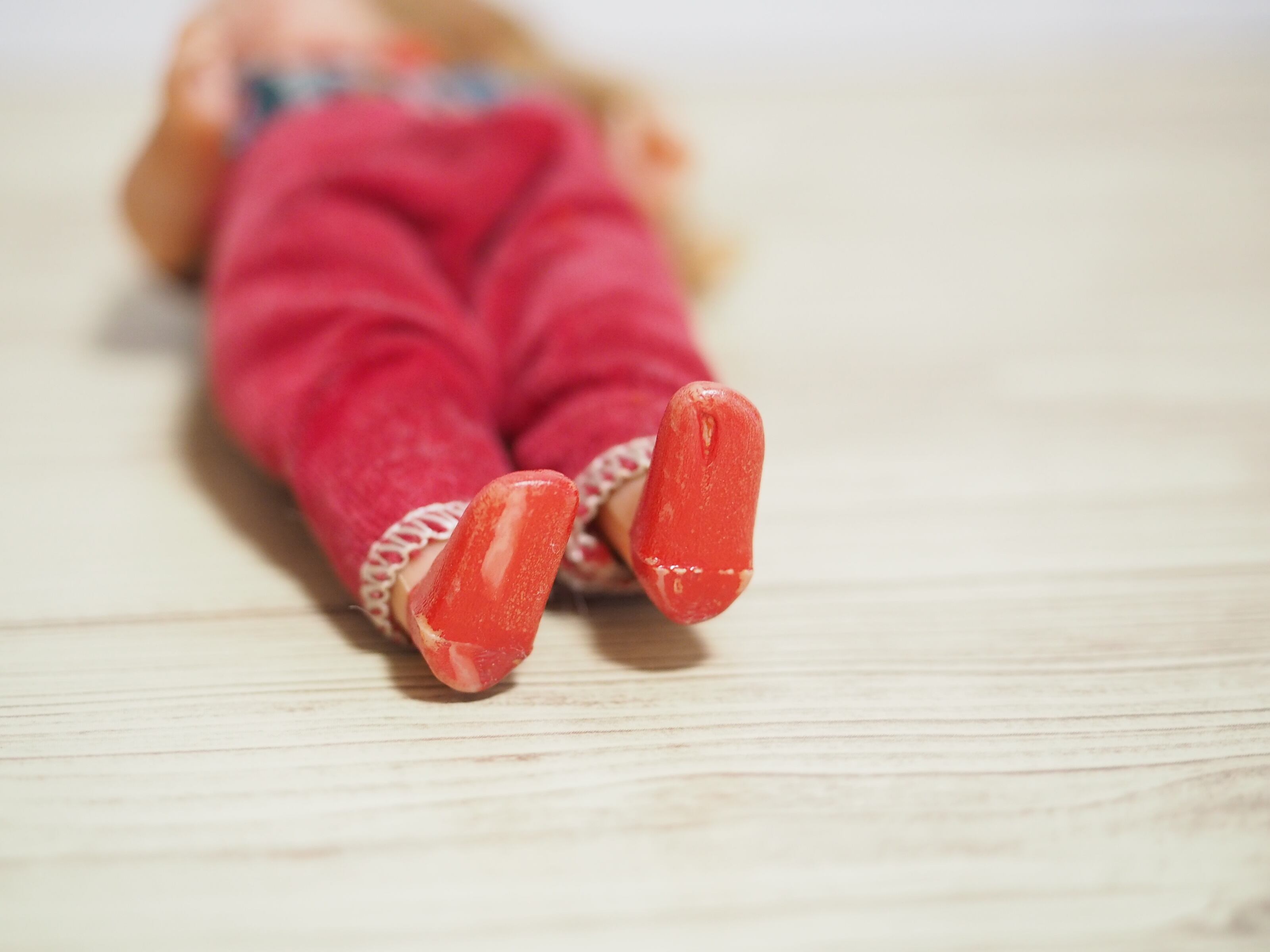 首、腕脚ジョイントで動かせます。脚はズボンですので座る動作は出来ません。首は左右に回せます。