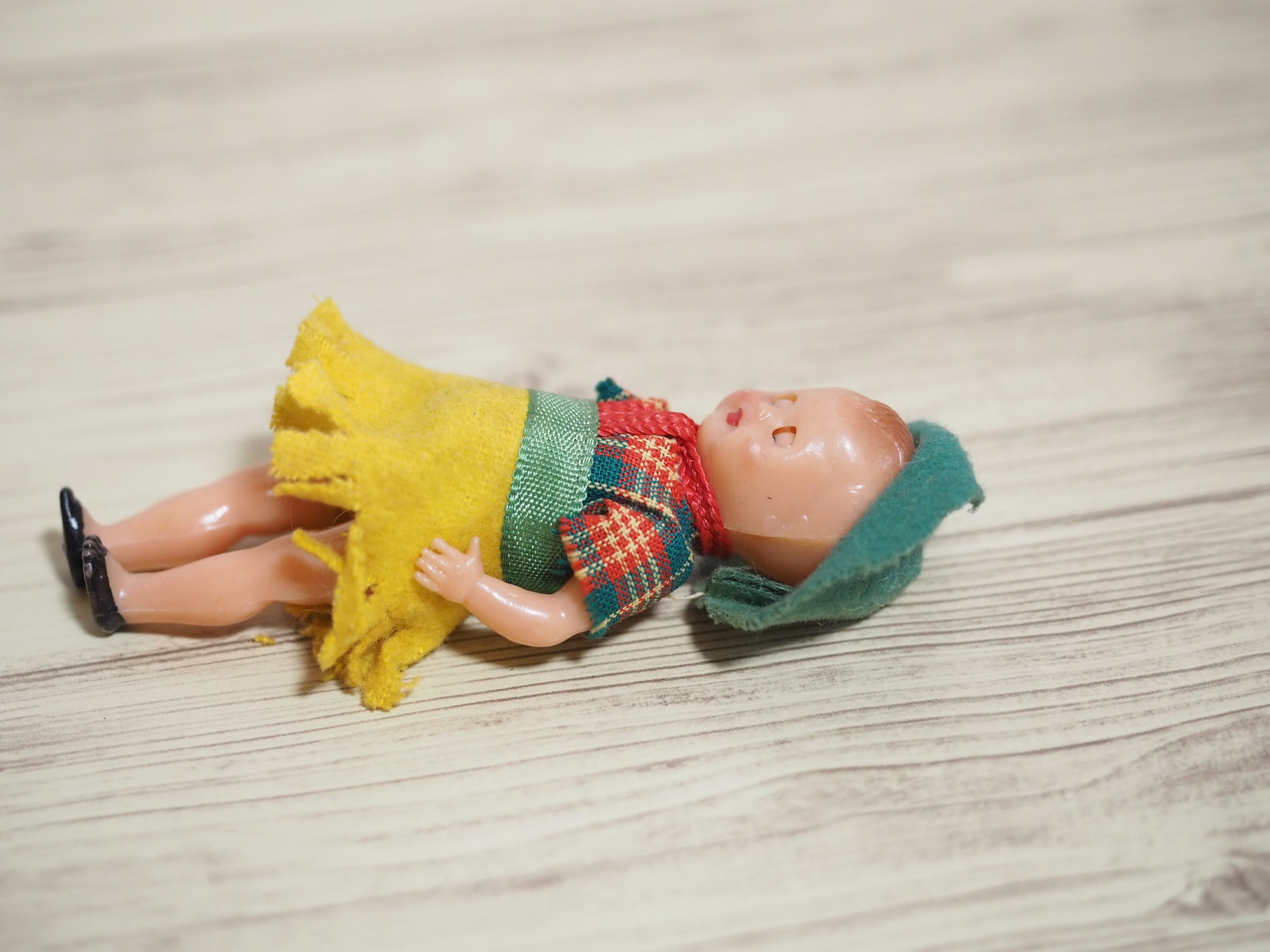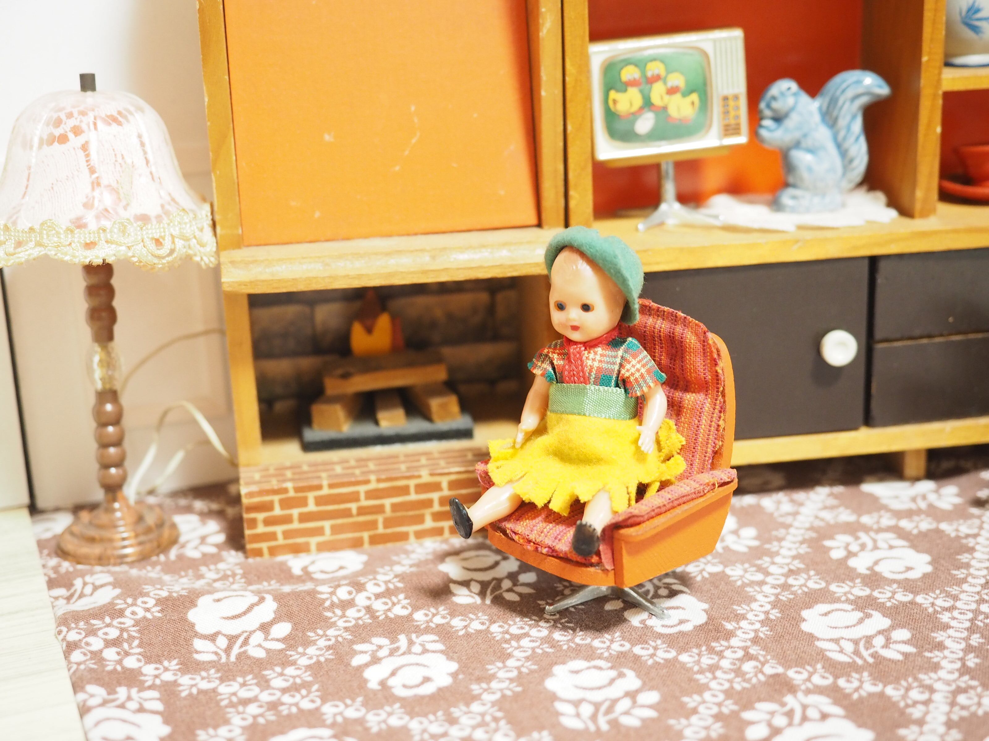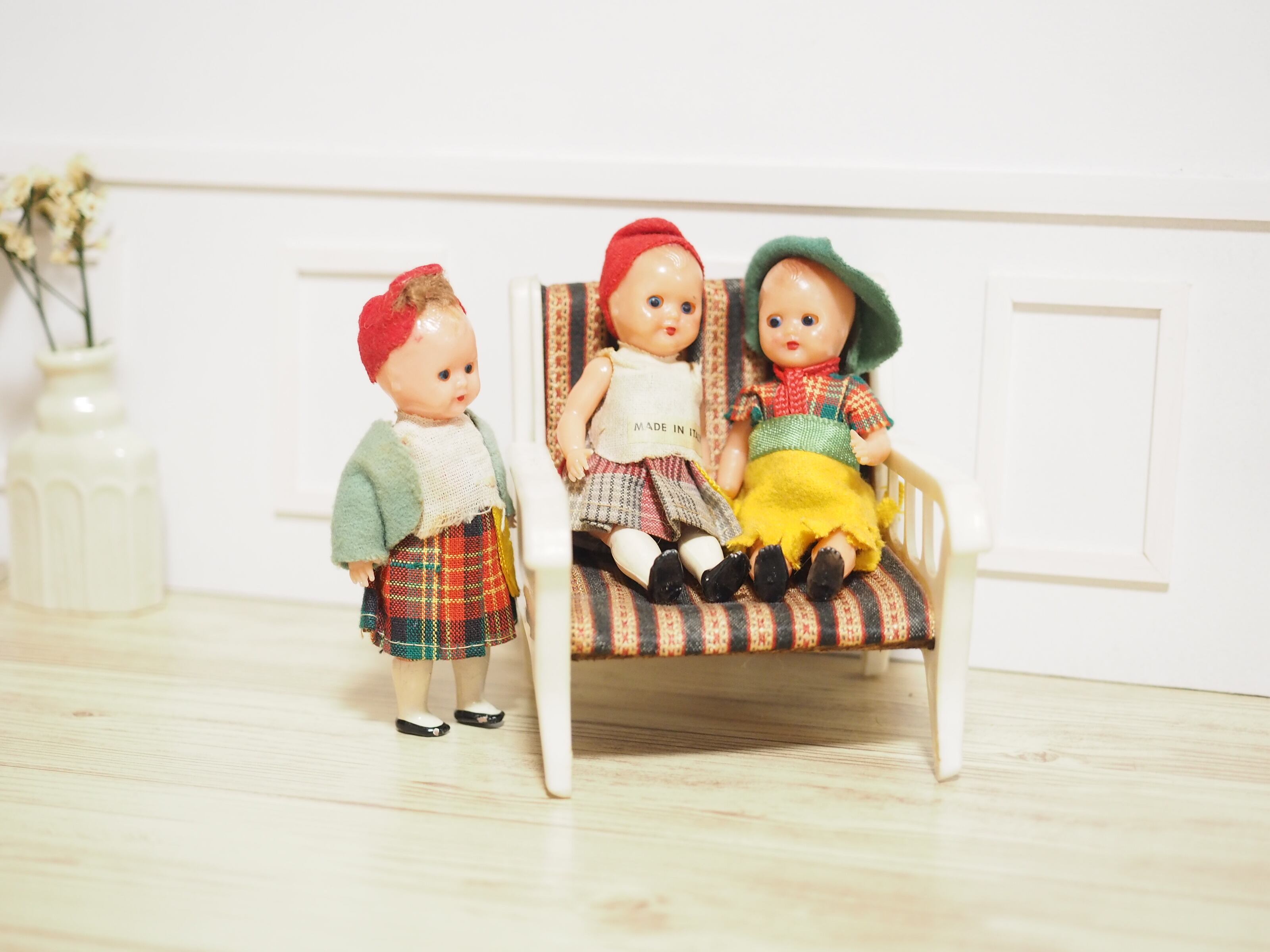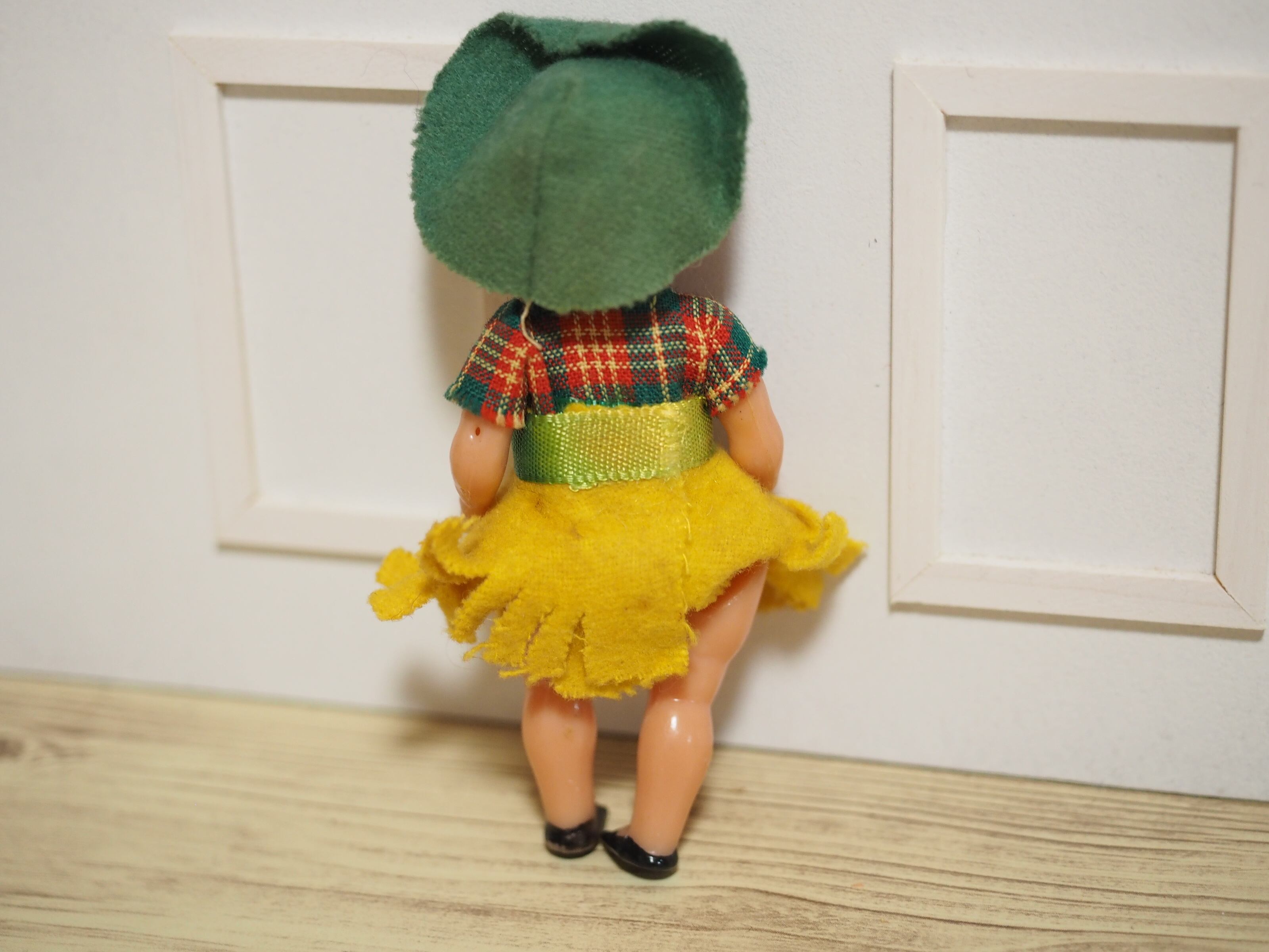 小さなお店で働いている小人のようなかわいらしさ、手に乗せて眺めたくなるお人形です。