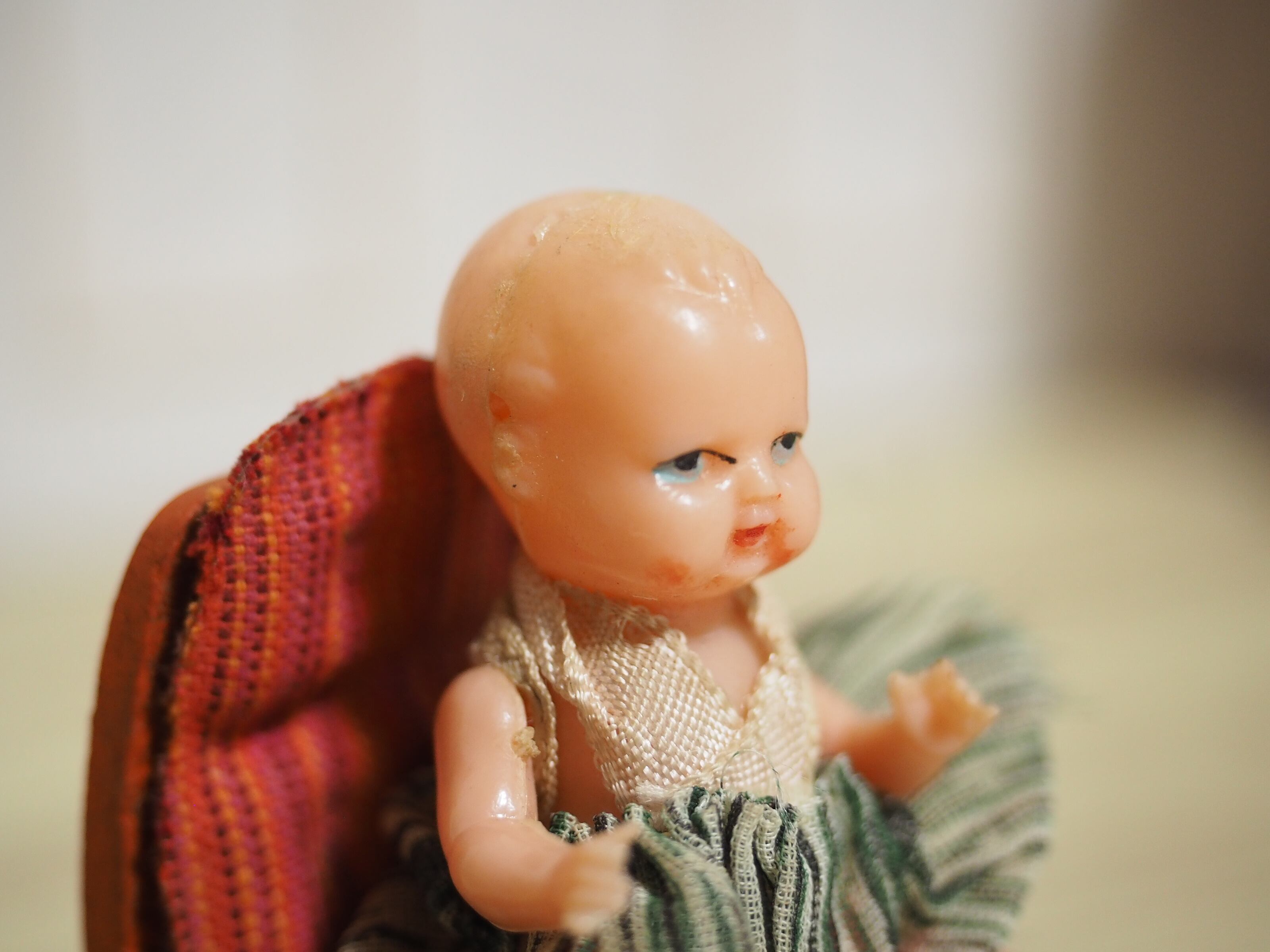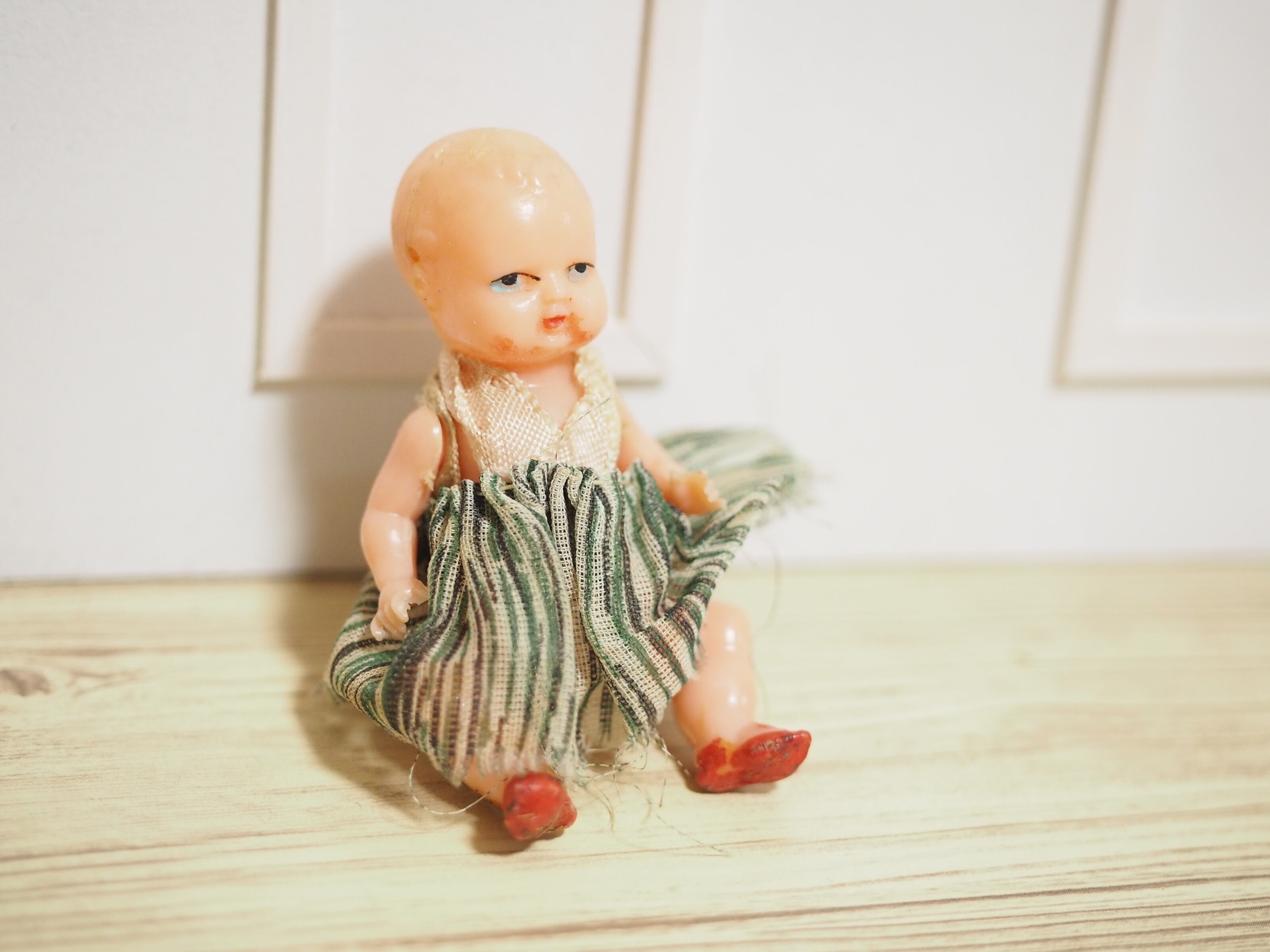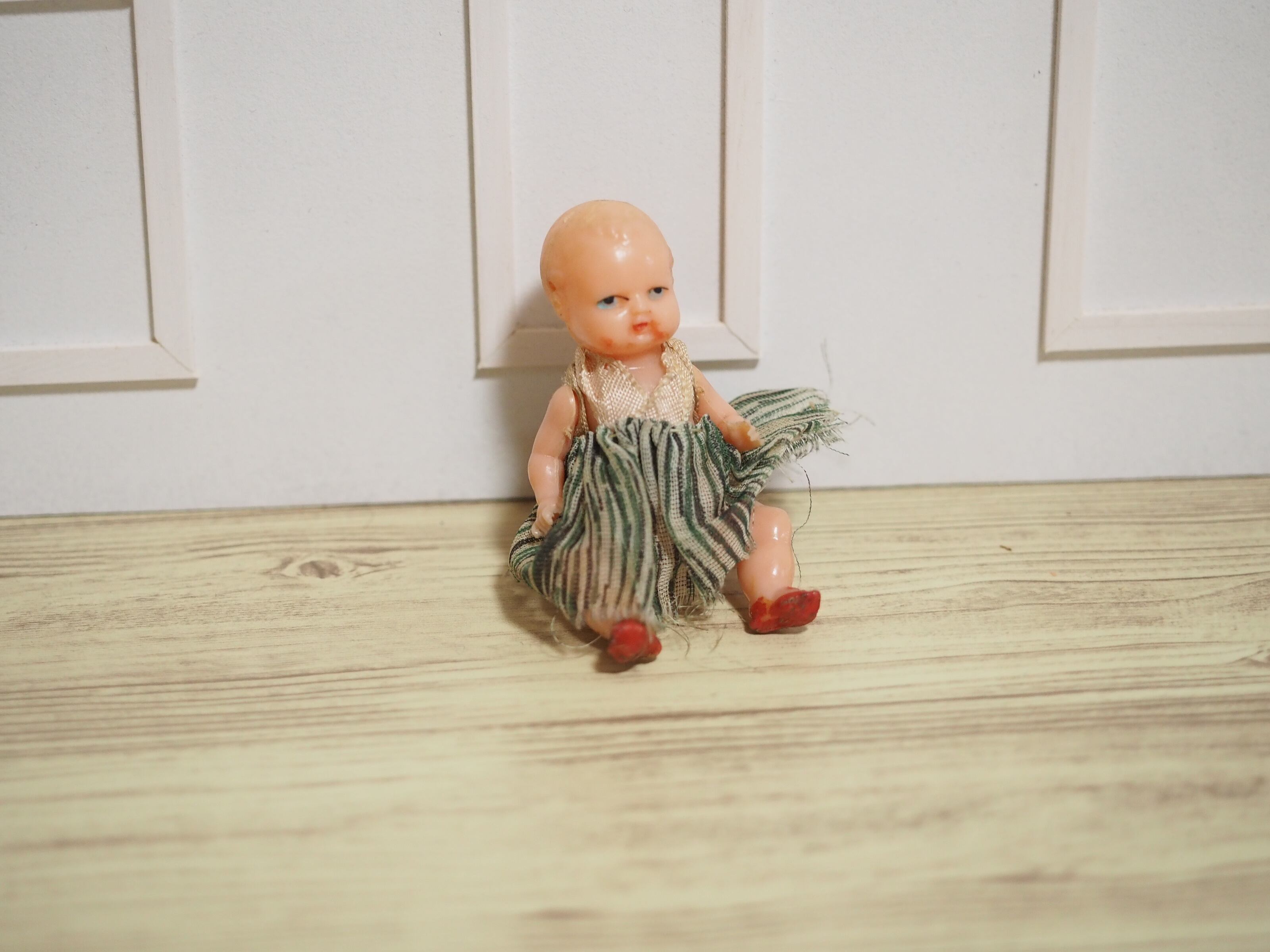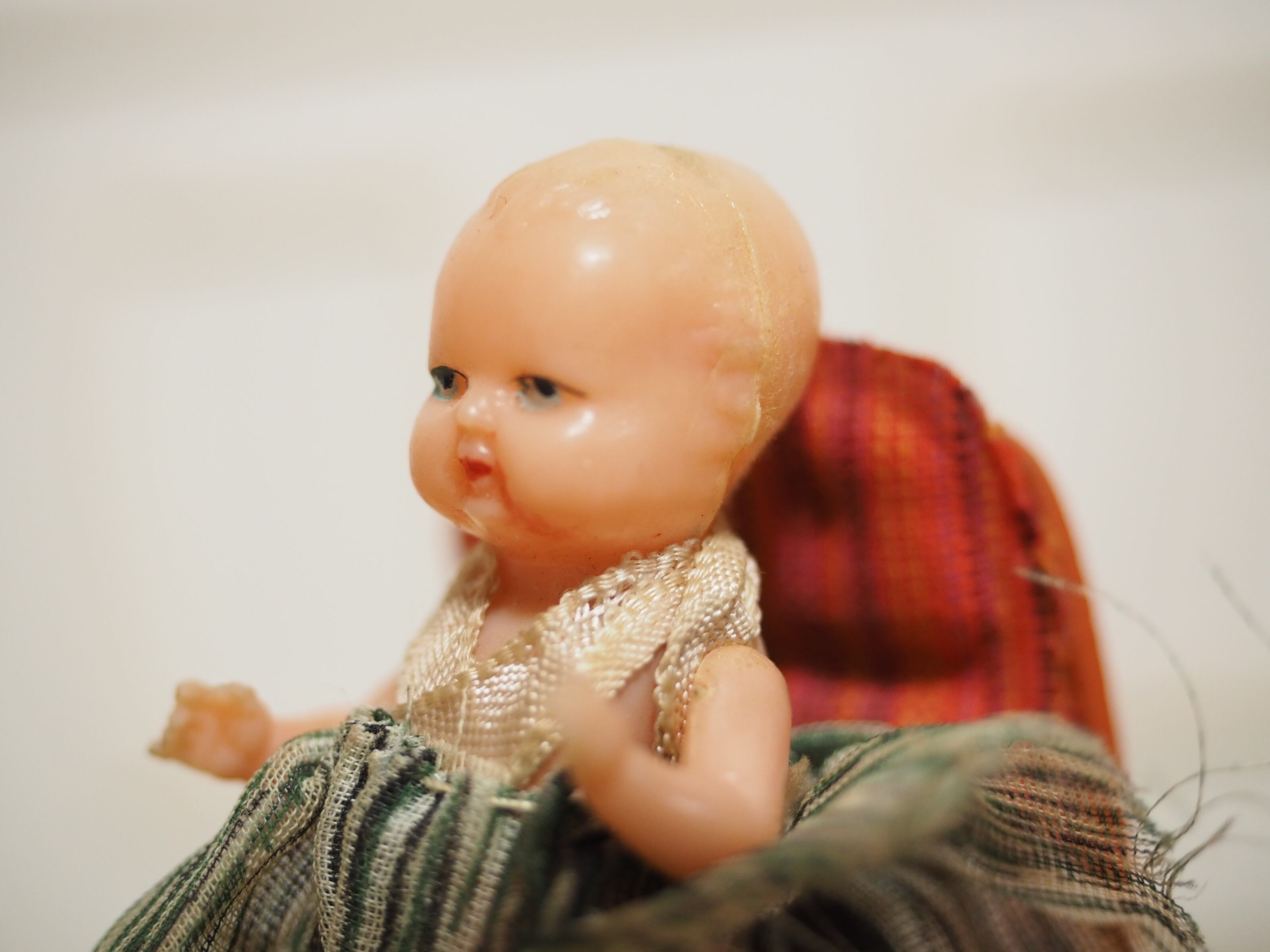 ころんとしたかわいい様子と鋭い目つきのギャップがかわいらしい小さなお人形です。