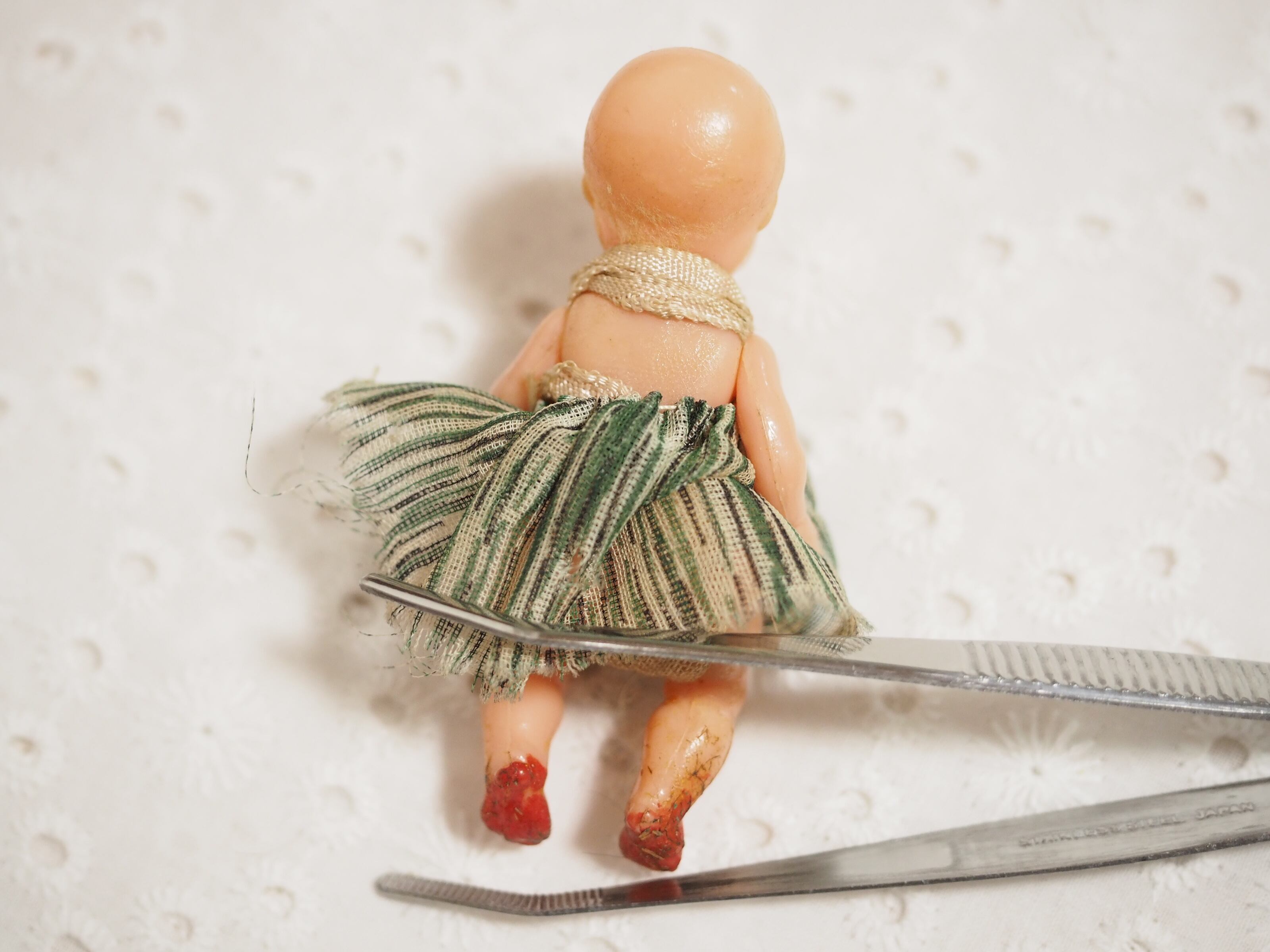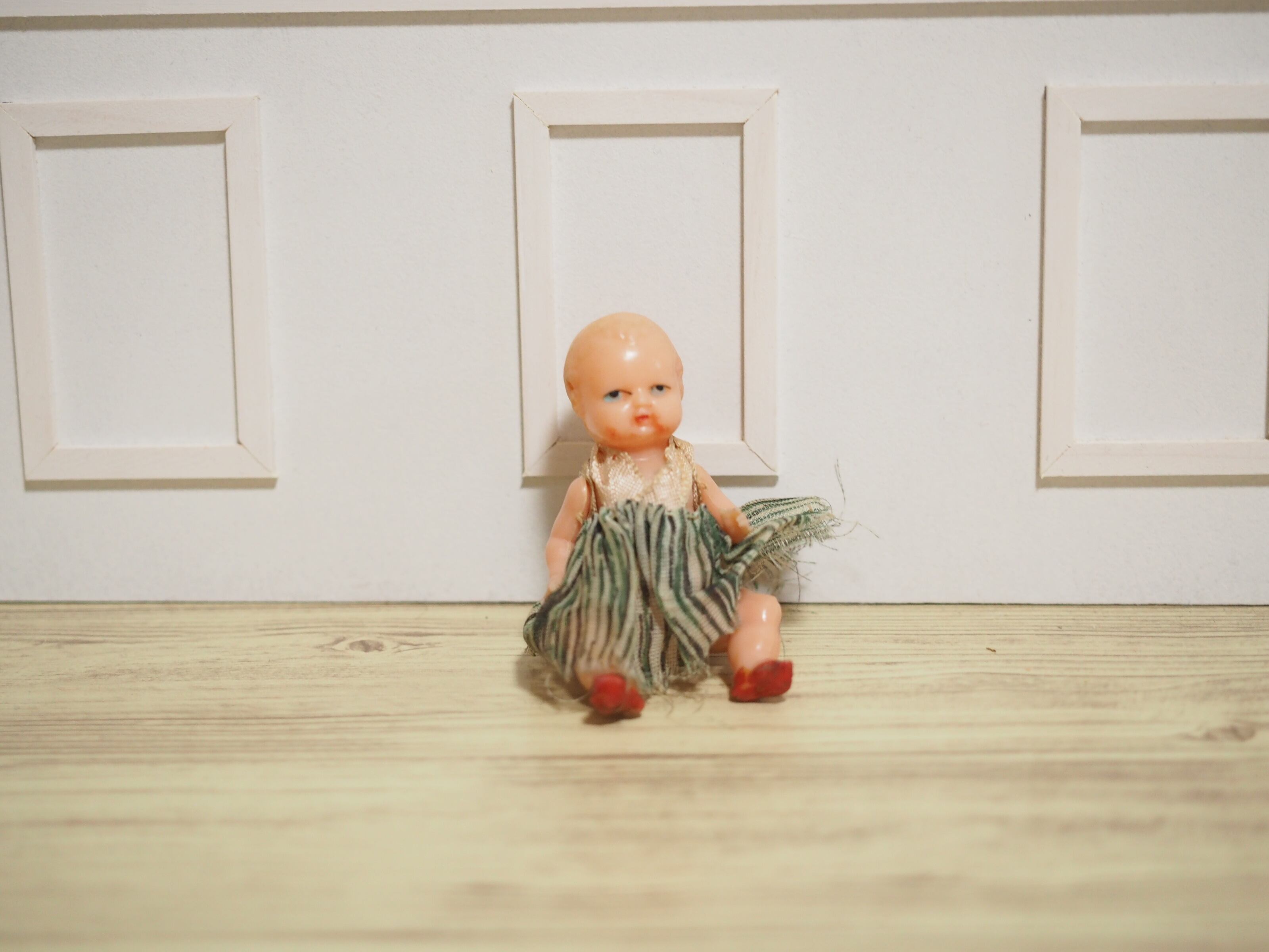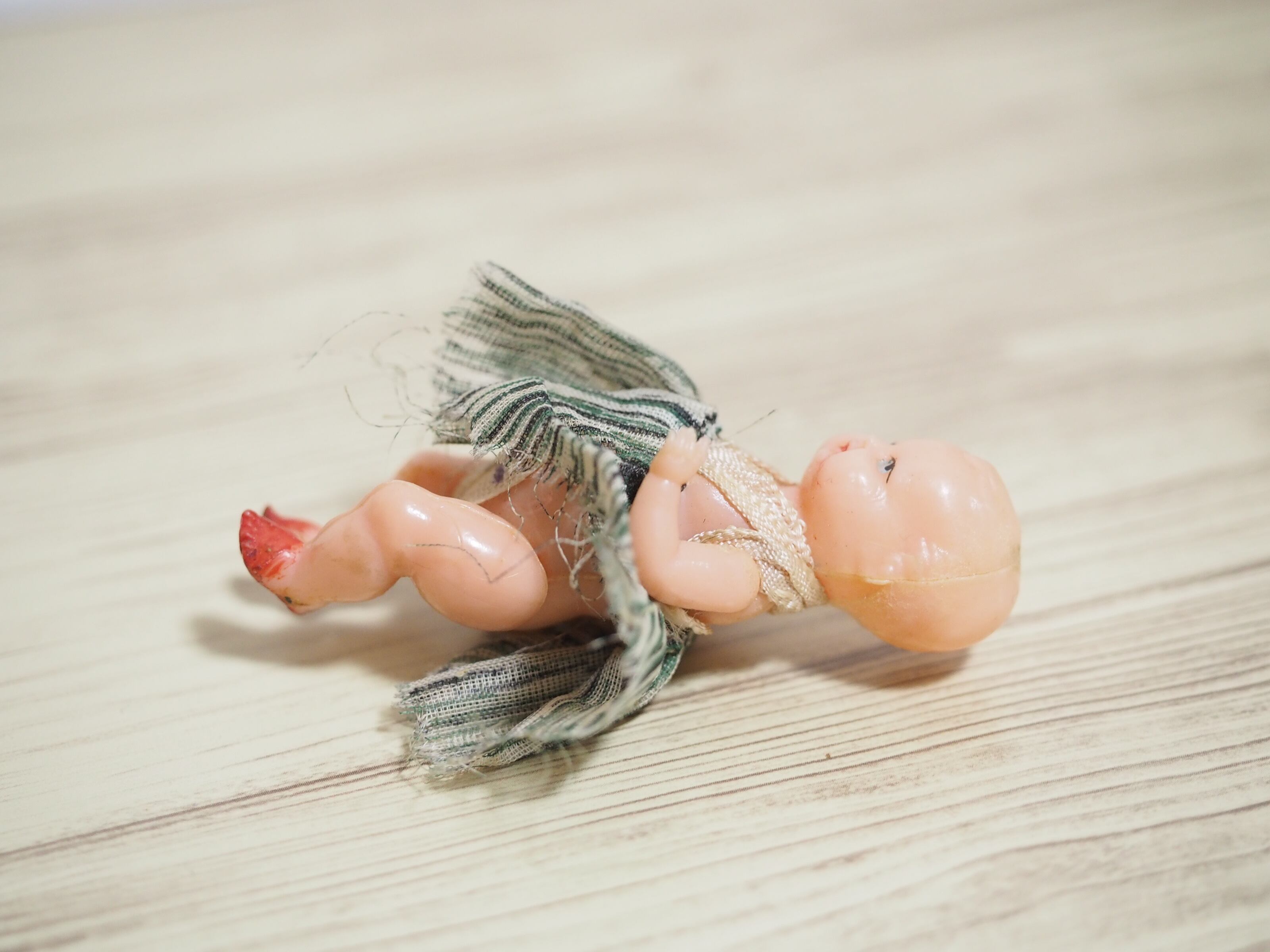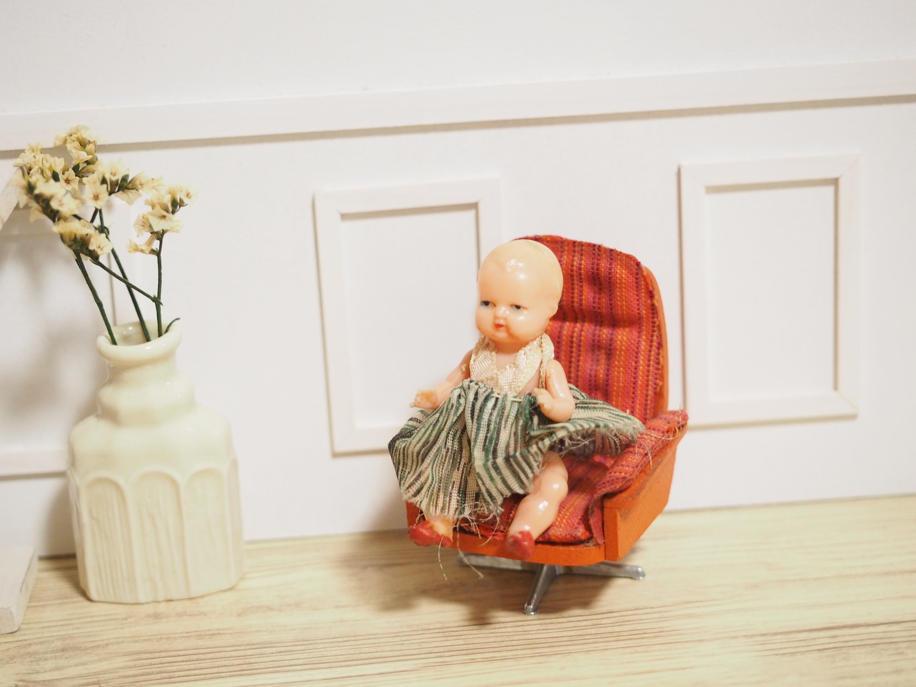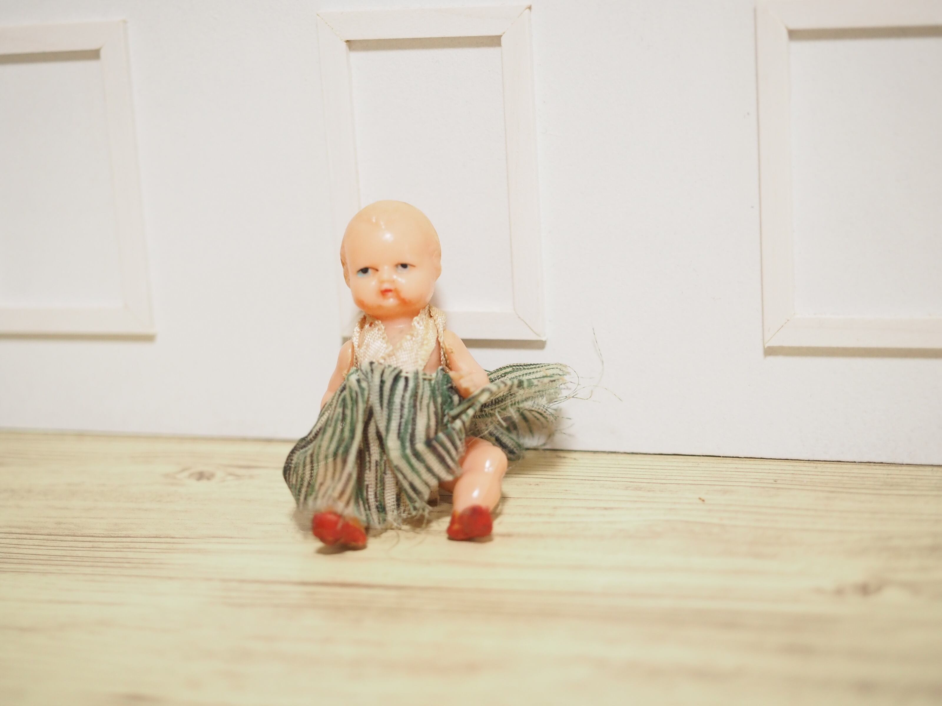ころんとしたかわいい様子と鋭い目つきのギャップがかわいらしい小さなお人形です。