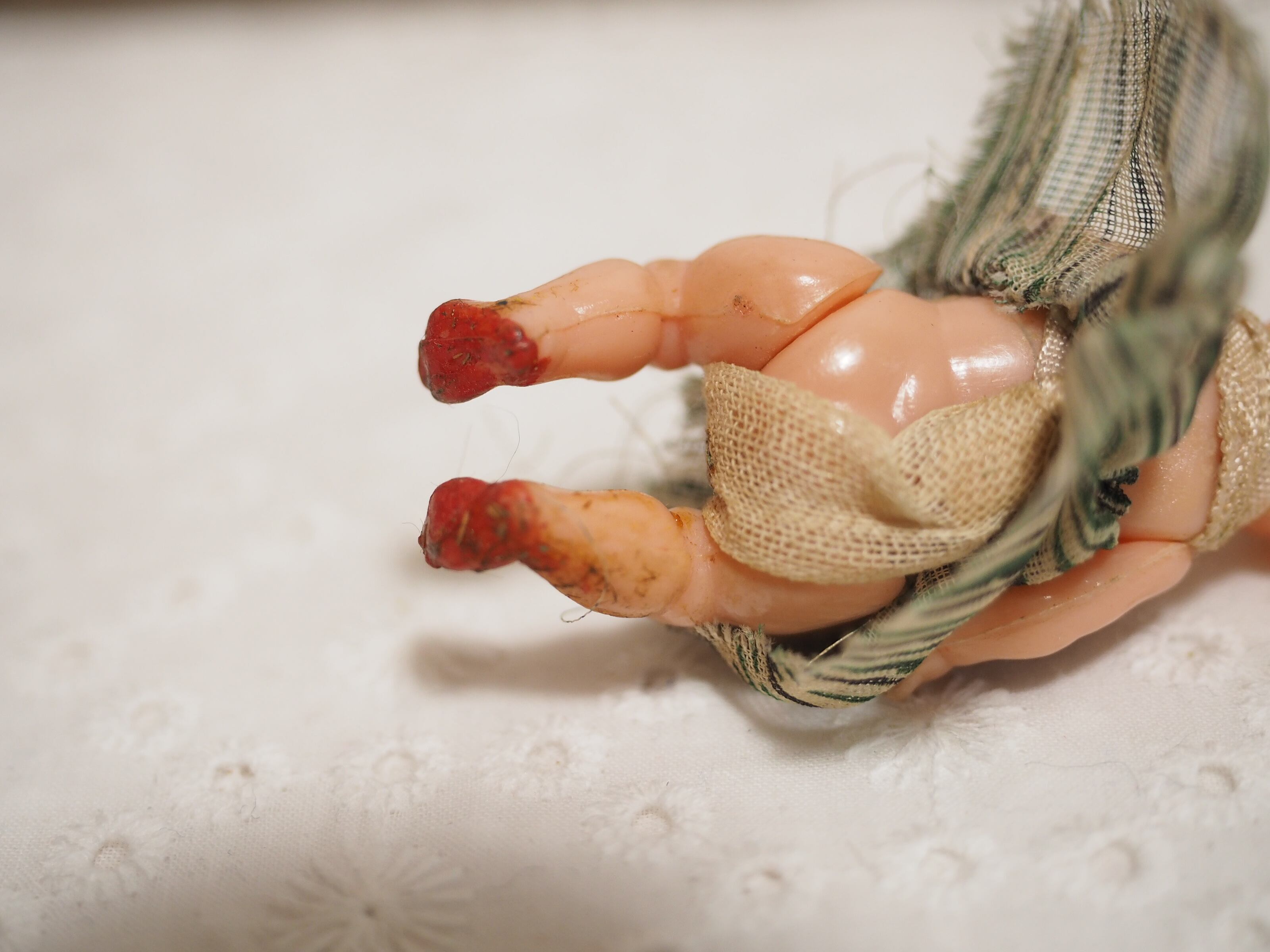 以前ご紹介のカール前髪ドールと同じ作り、1950年代と思われます。