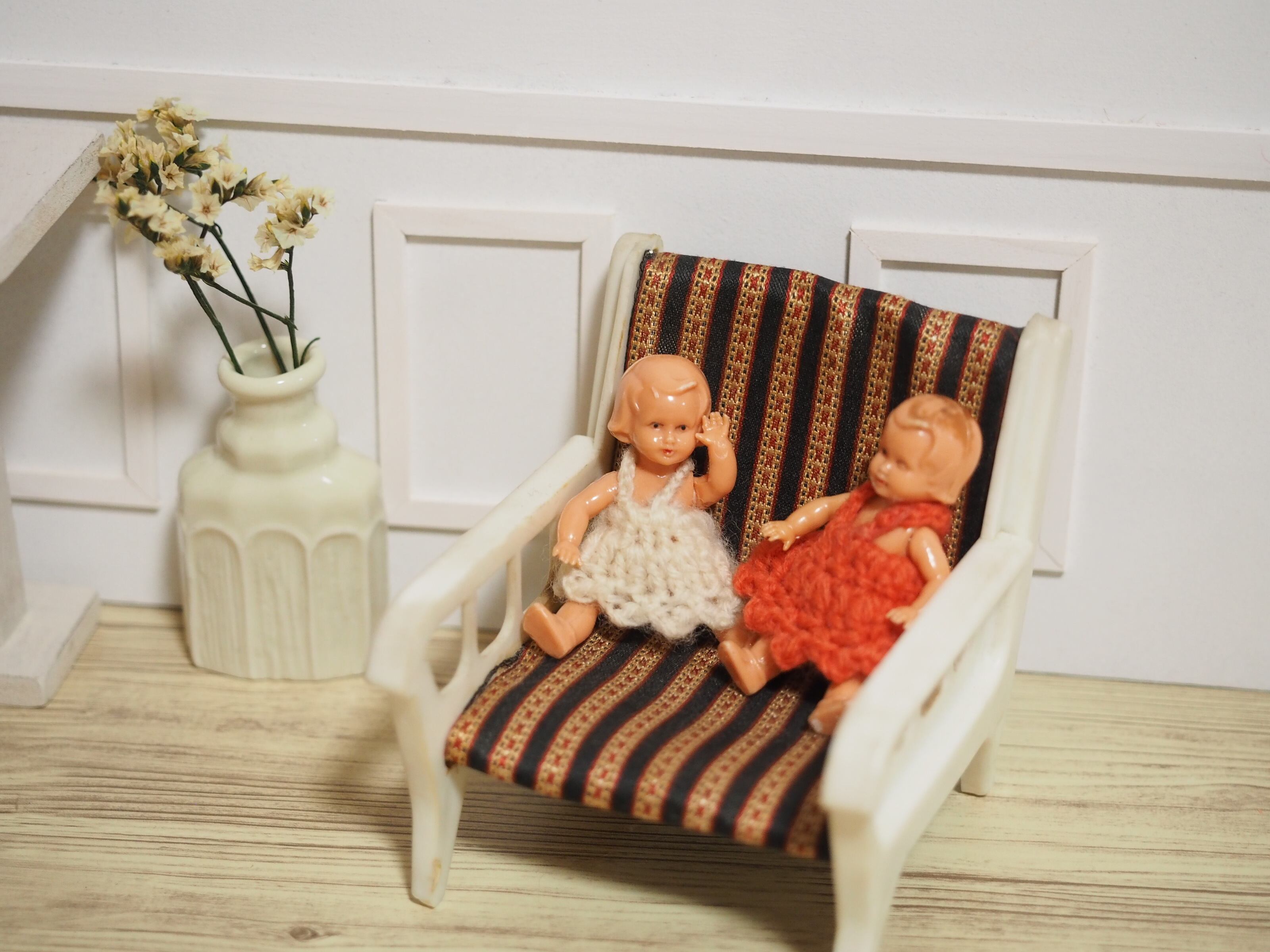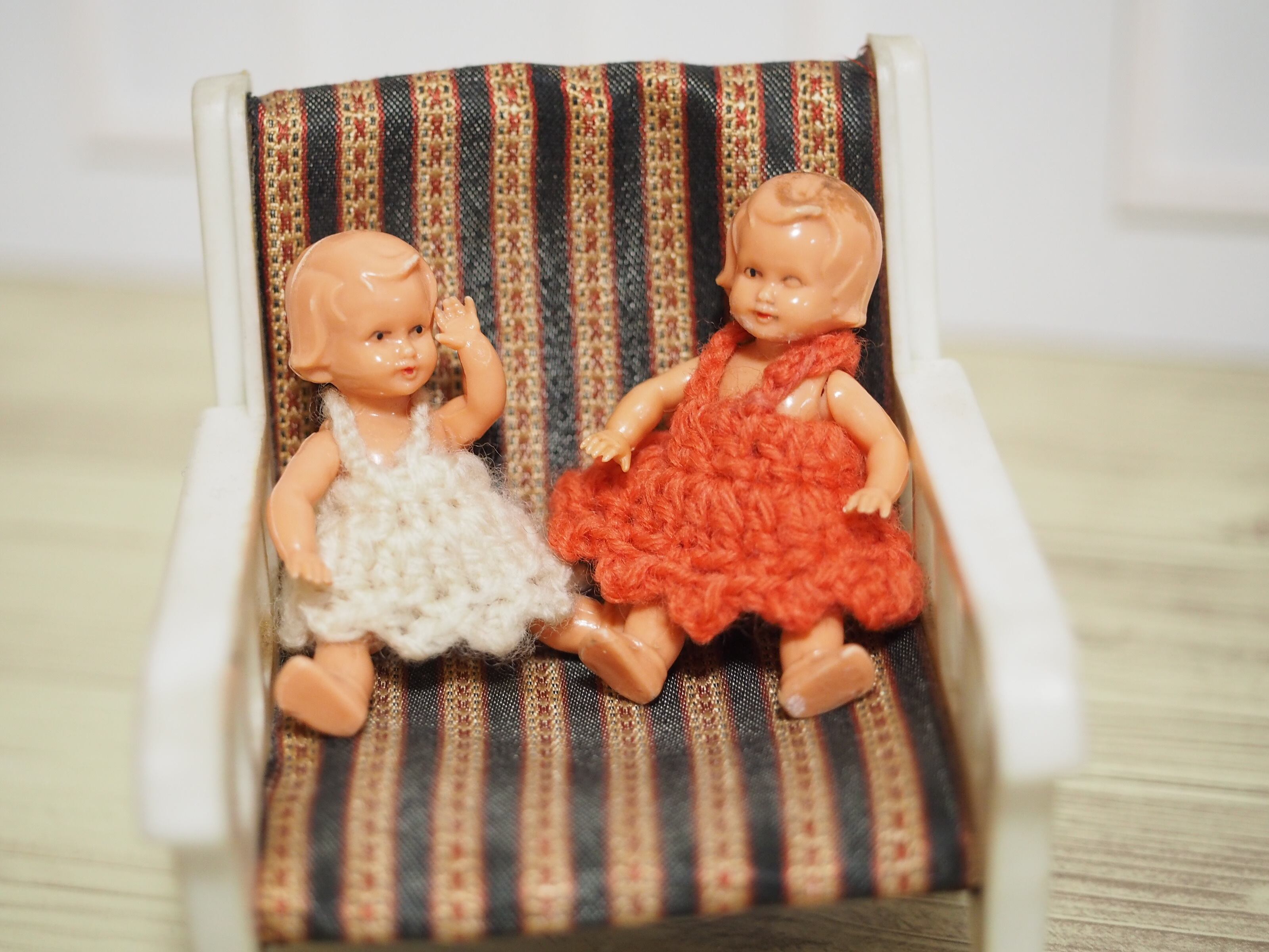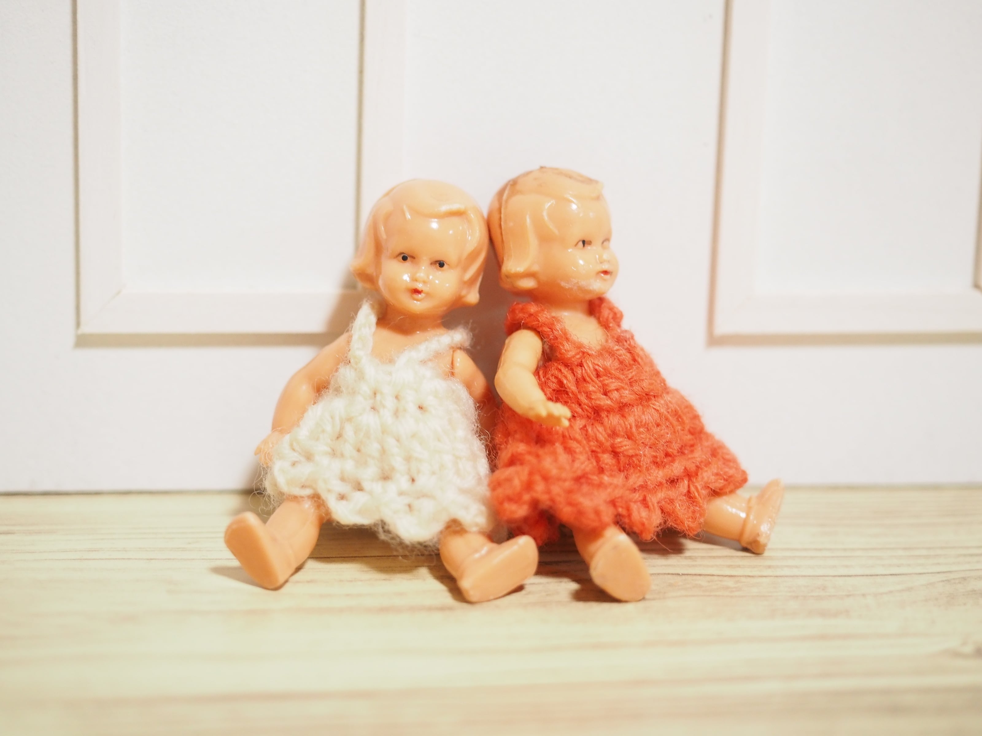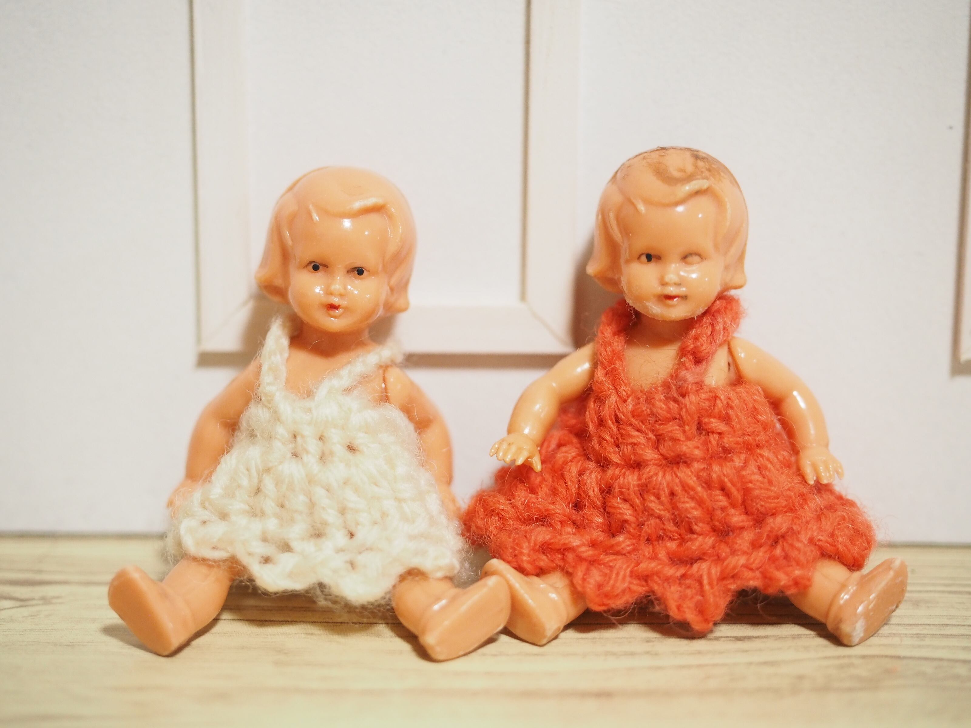 赤白ニットの双子ドール 2体セット(ペイントロスあり)