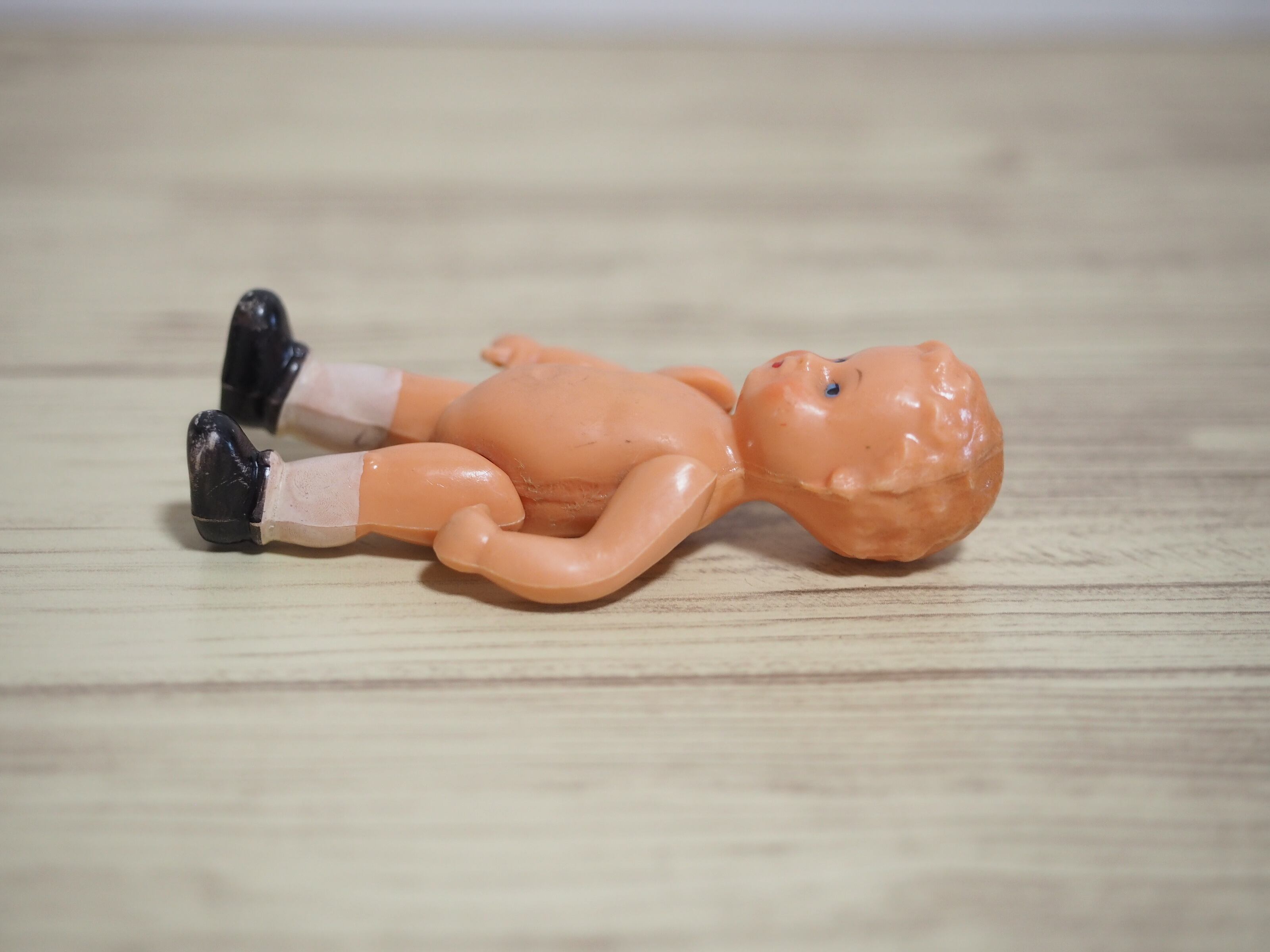 手のポーズとしっかりしたお腹や脚の様子がかわいらしいです。