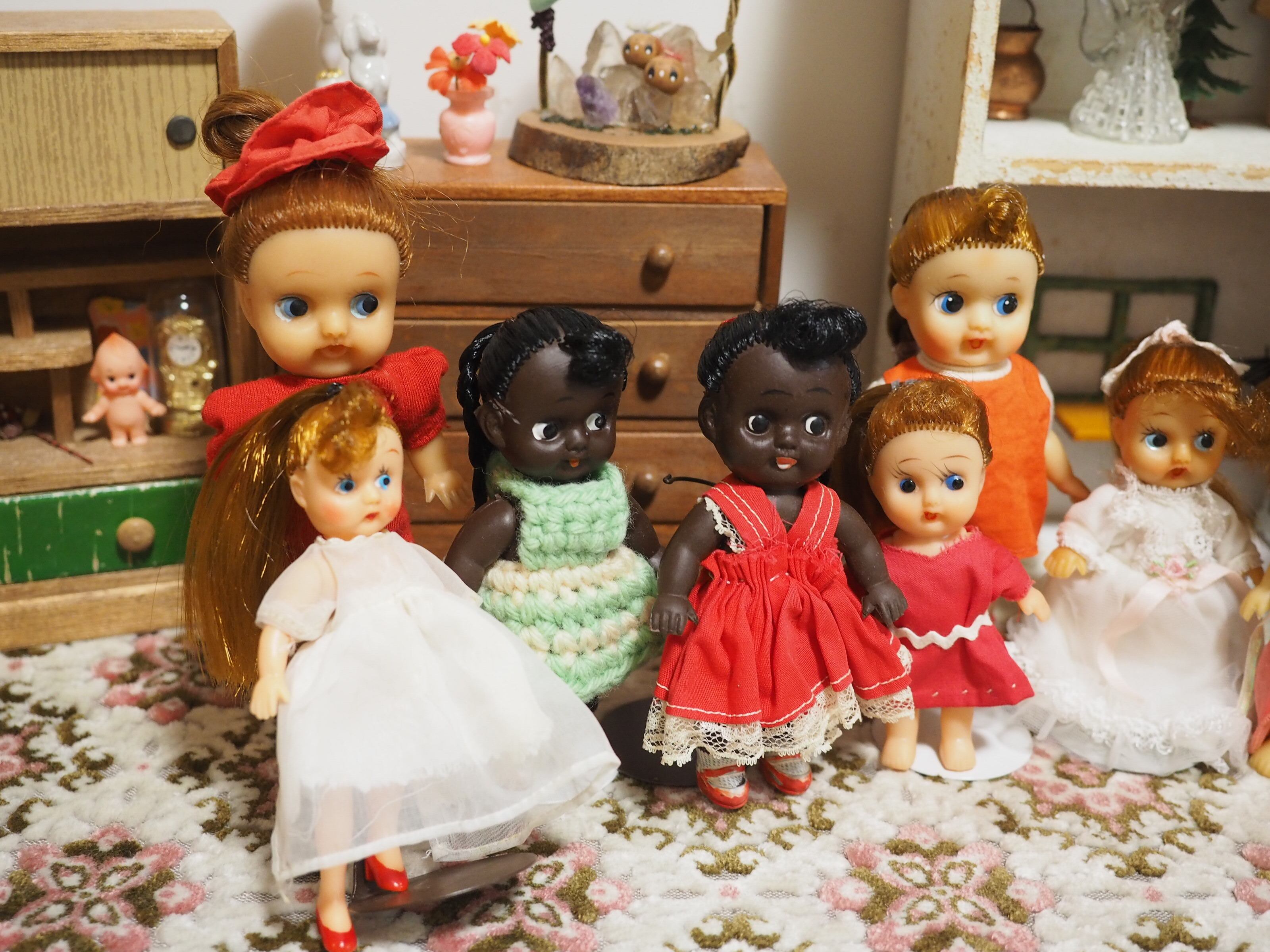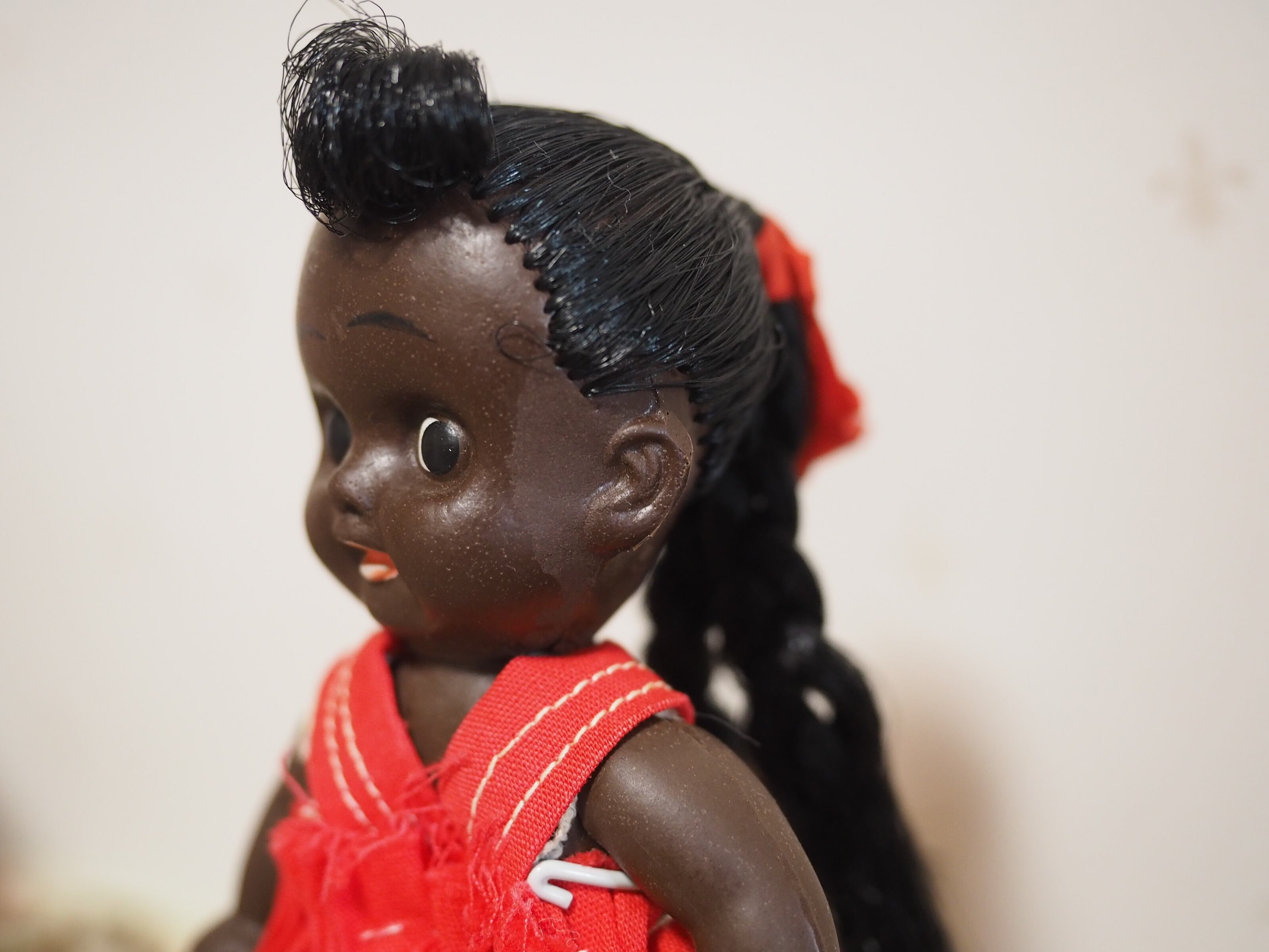 小さ目カール人形 クロンボ 赤ワンピース(剥がれあり)