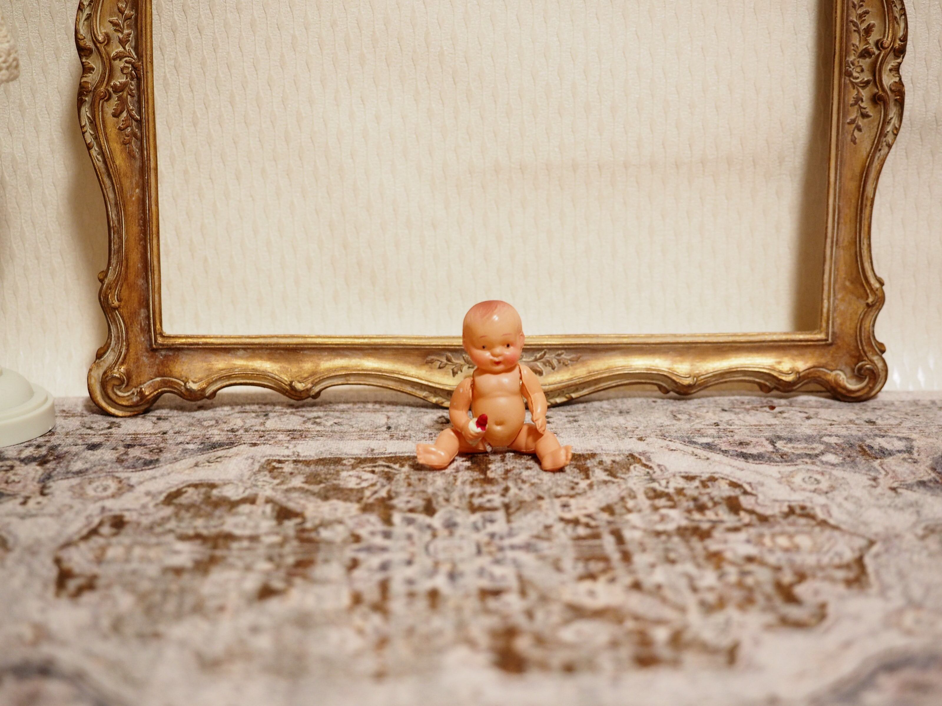 腕に白いペイント飛びがありますが、哺乳瓶は濃くペイントされています。