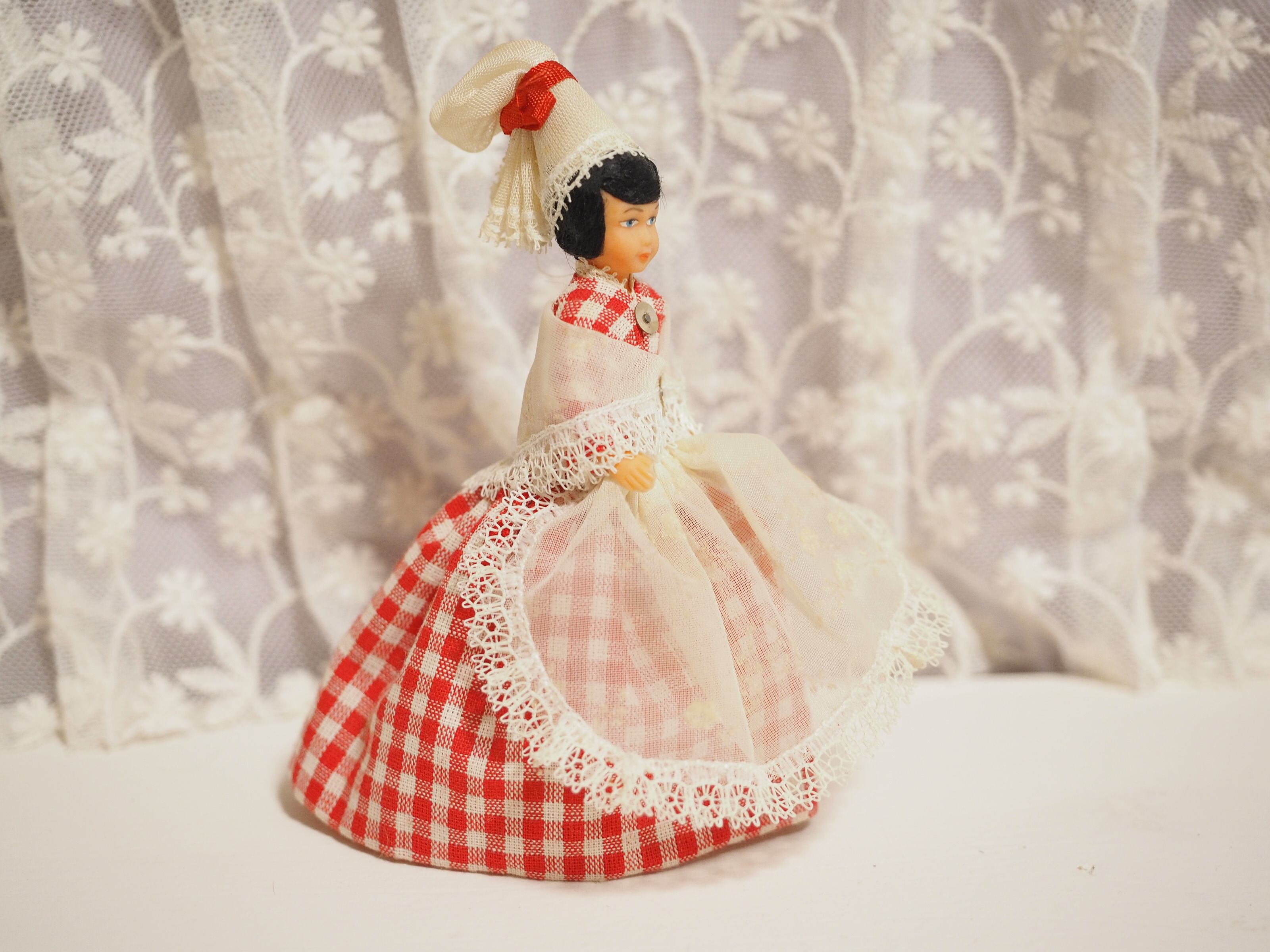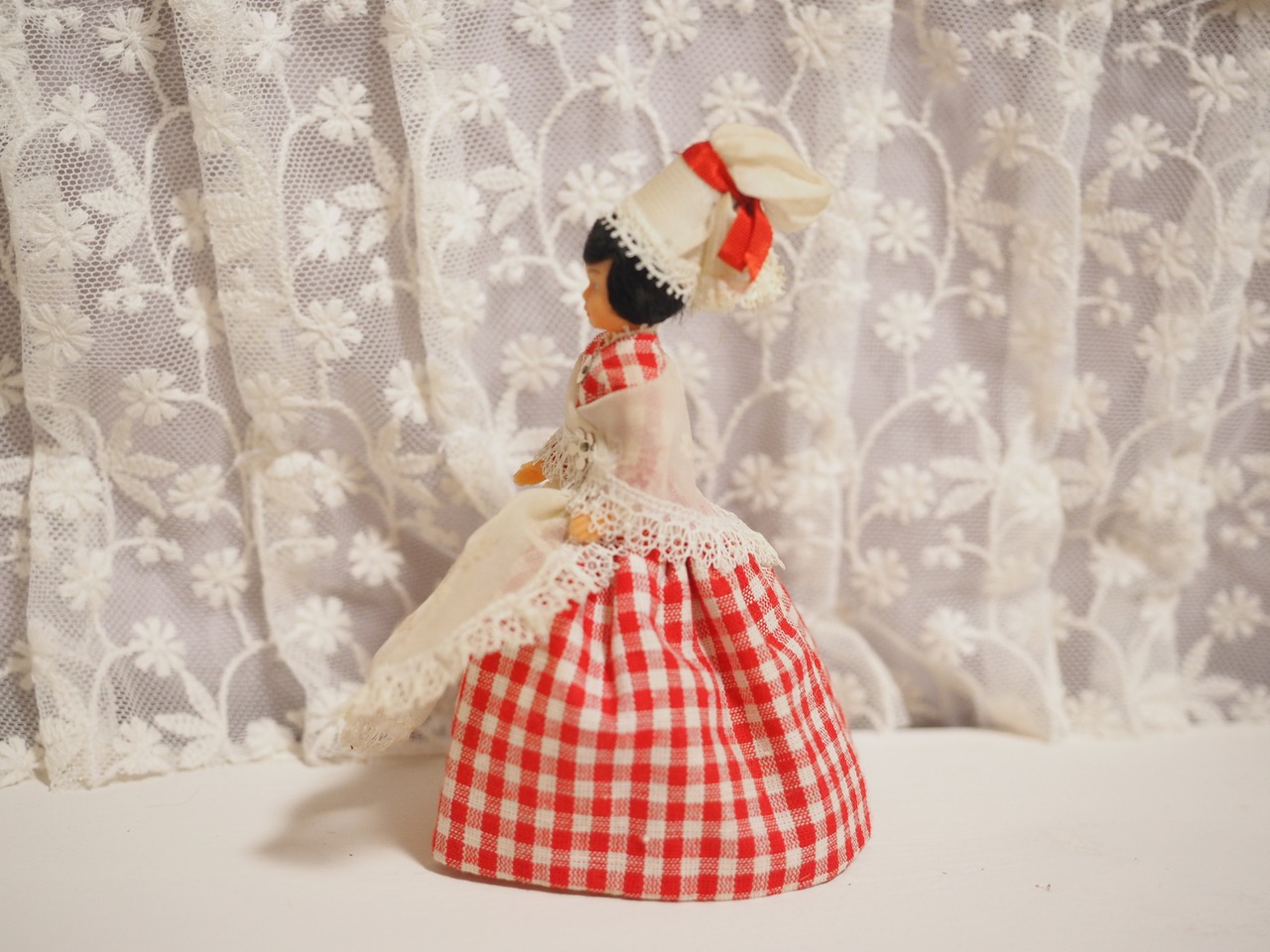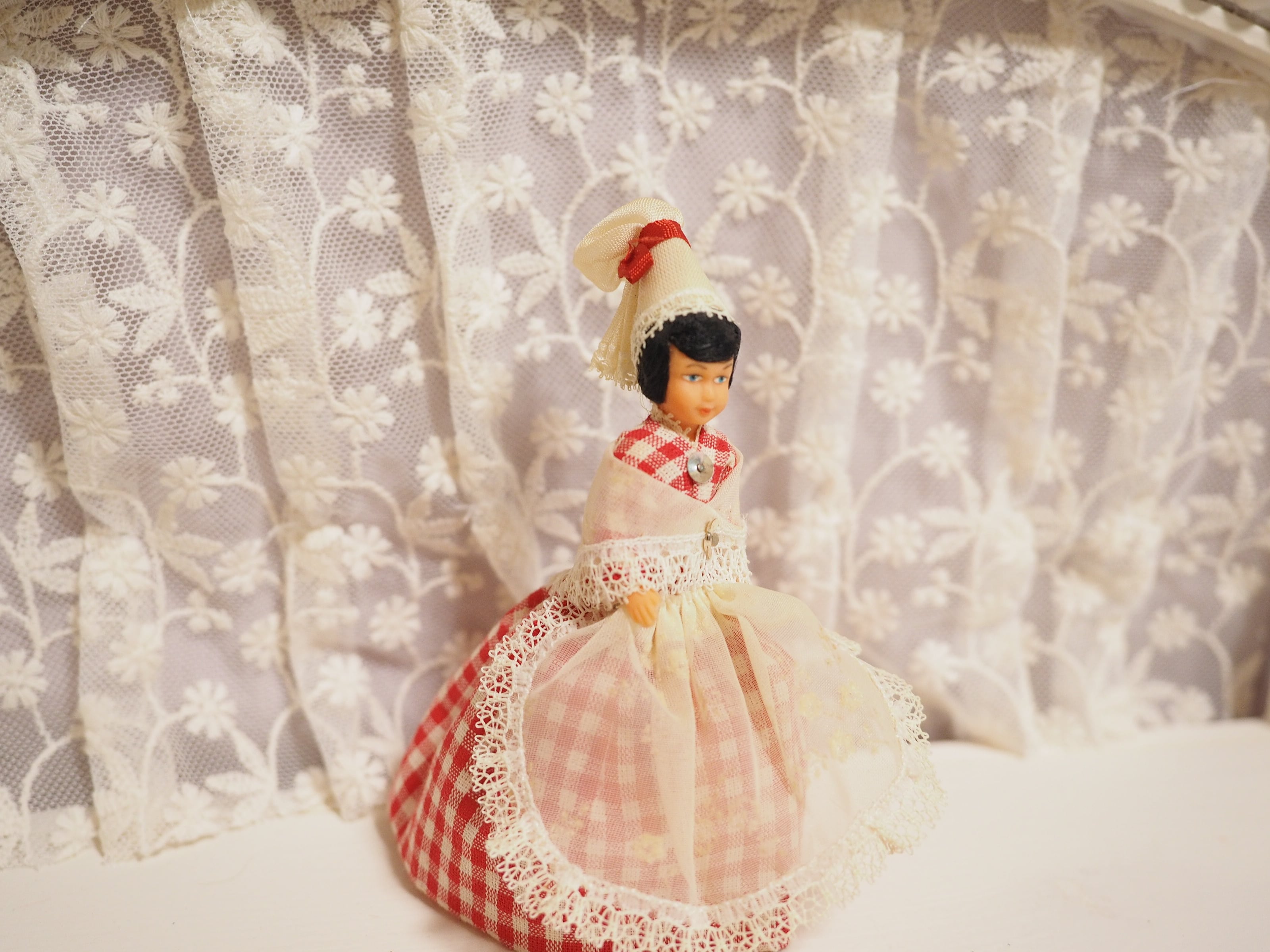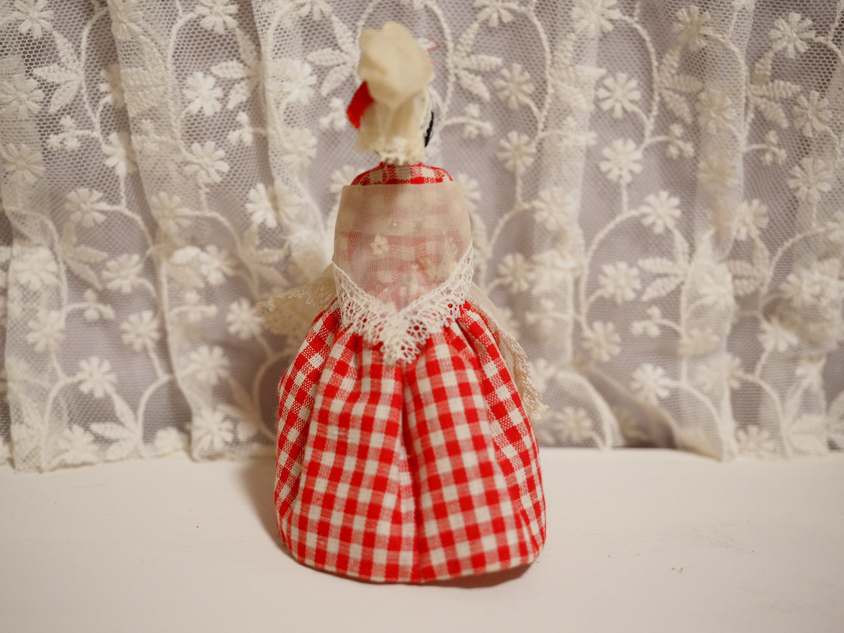 ギンガムチェックにレースのストールやエプロンが素敵なドール