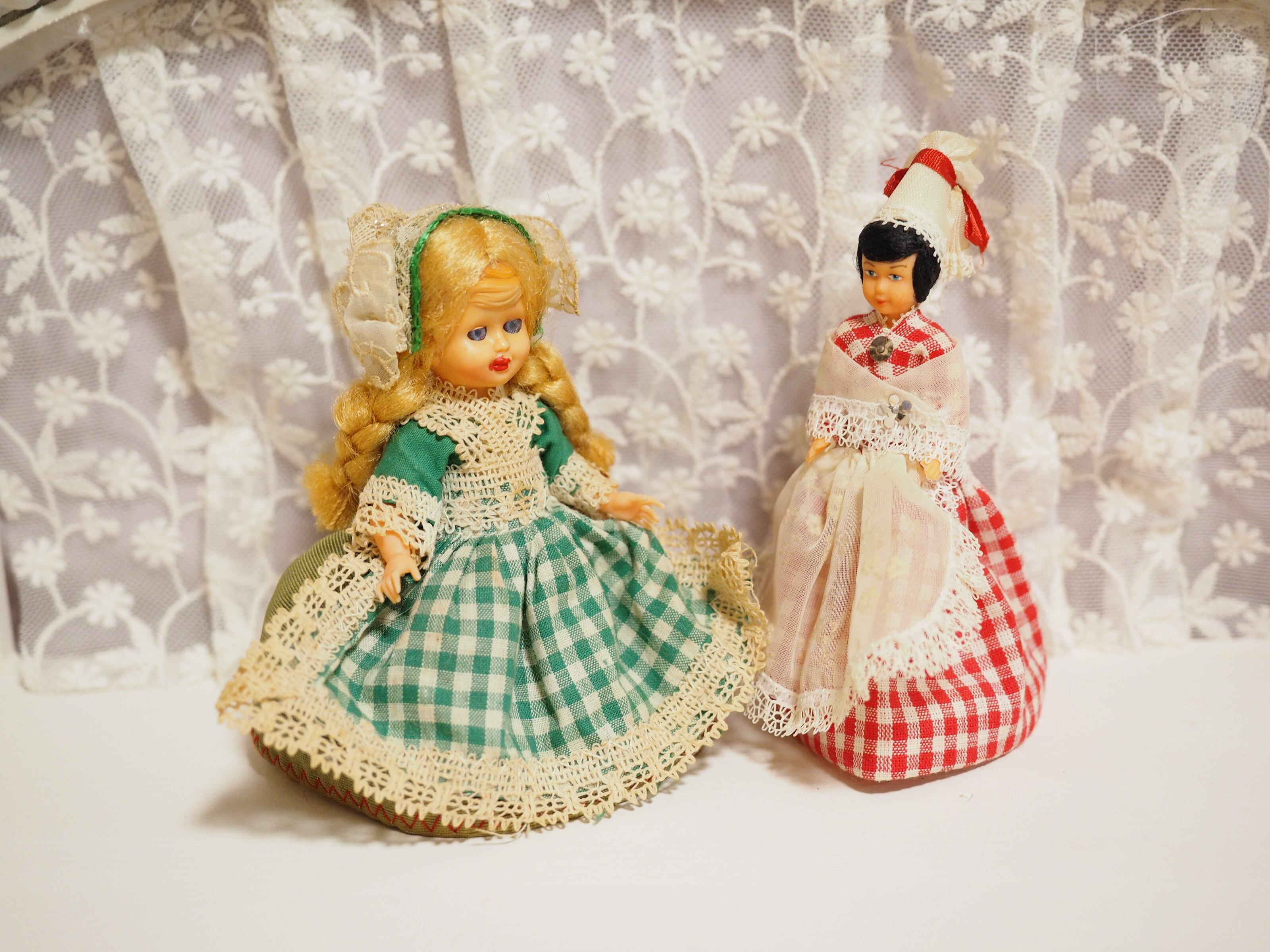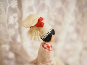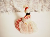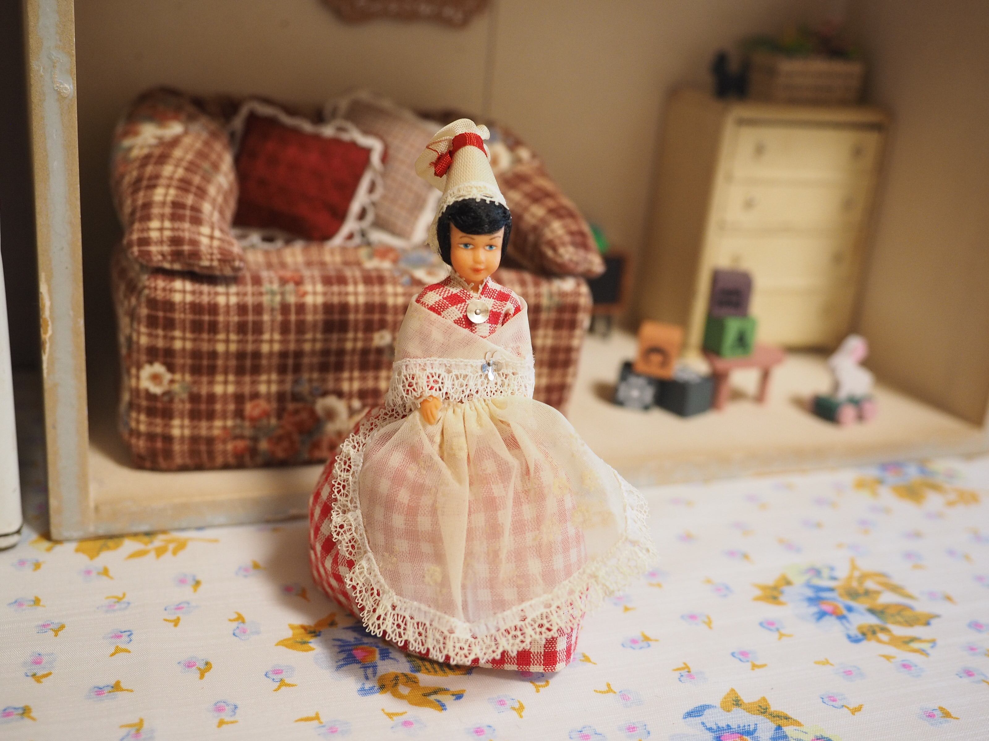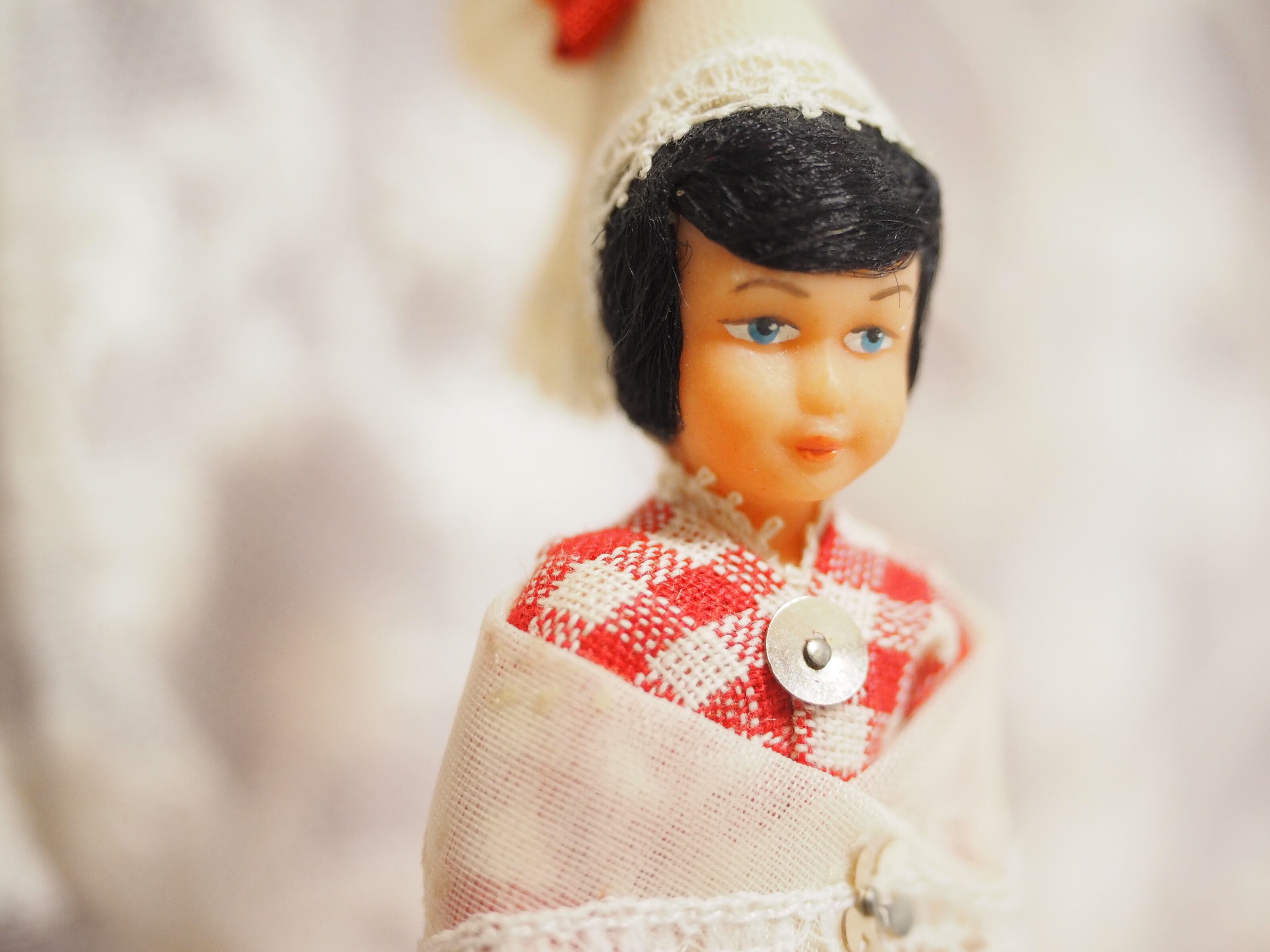 ギンガムチェックにレースのストールやエプロンが素敵なドール