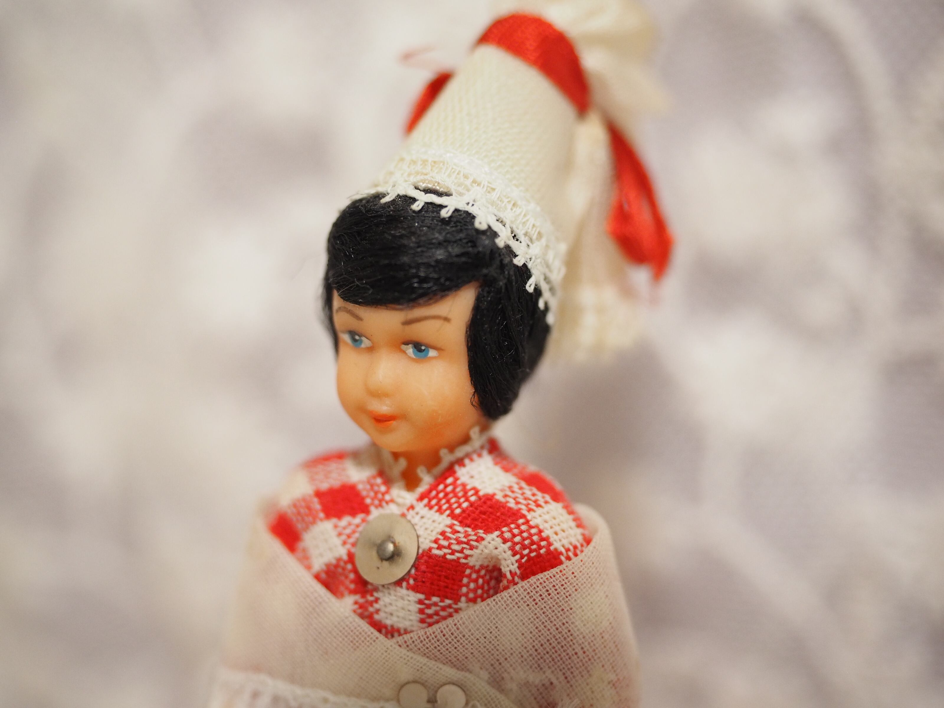 お顔は幅約1㎝ほどの小さなドールですが、とても美しいペイントと細やかな作りです。