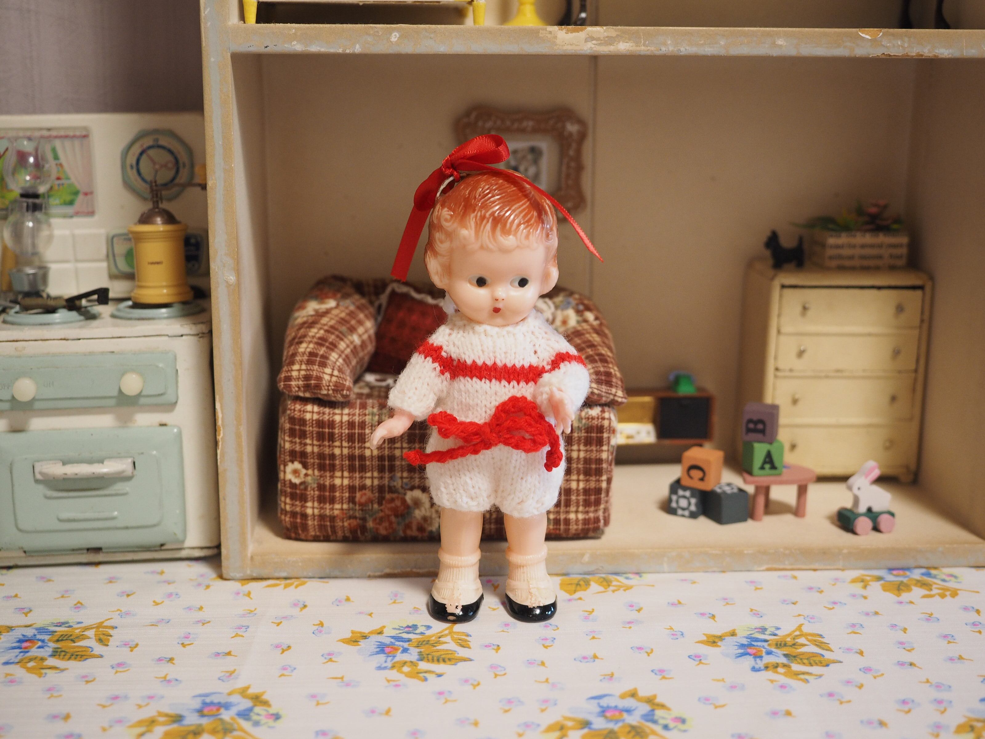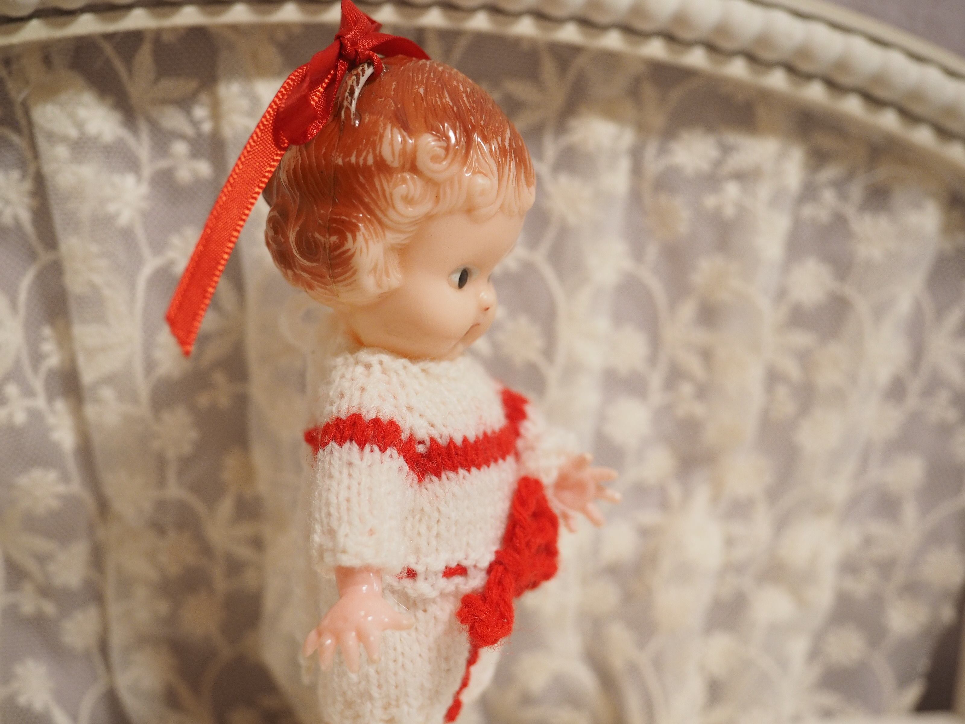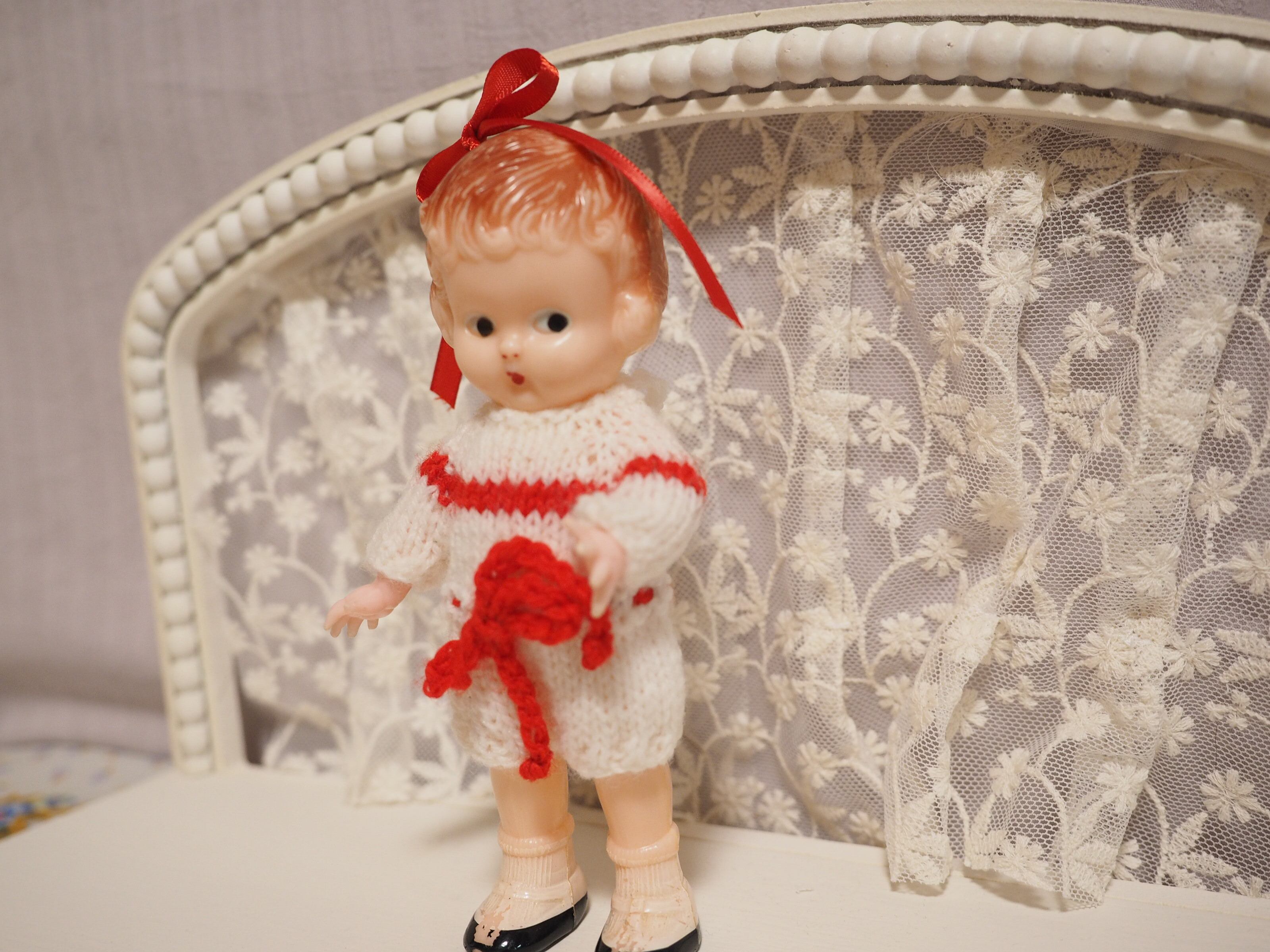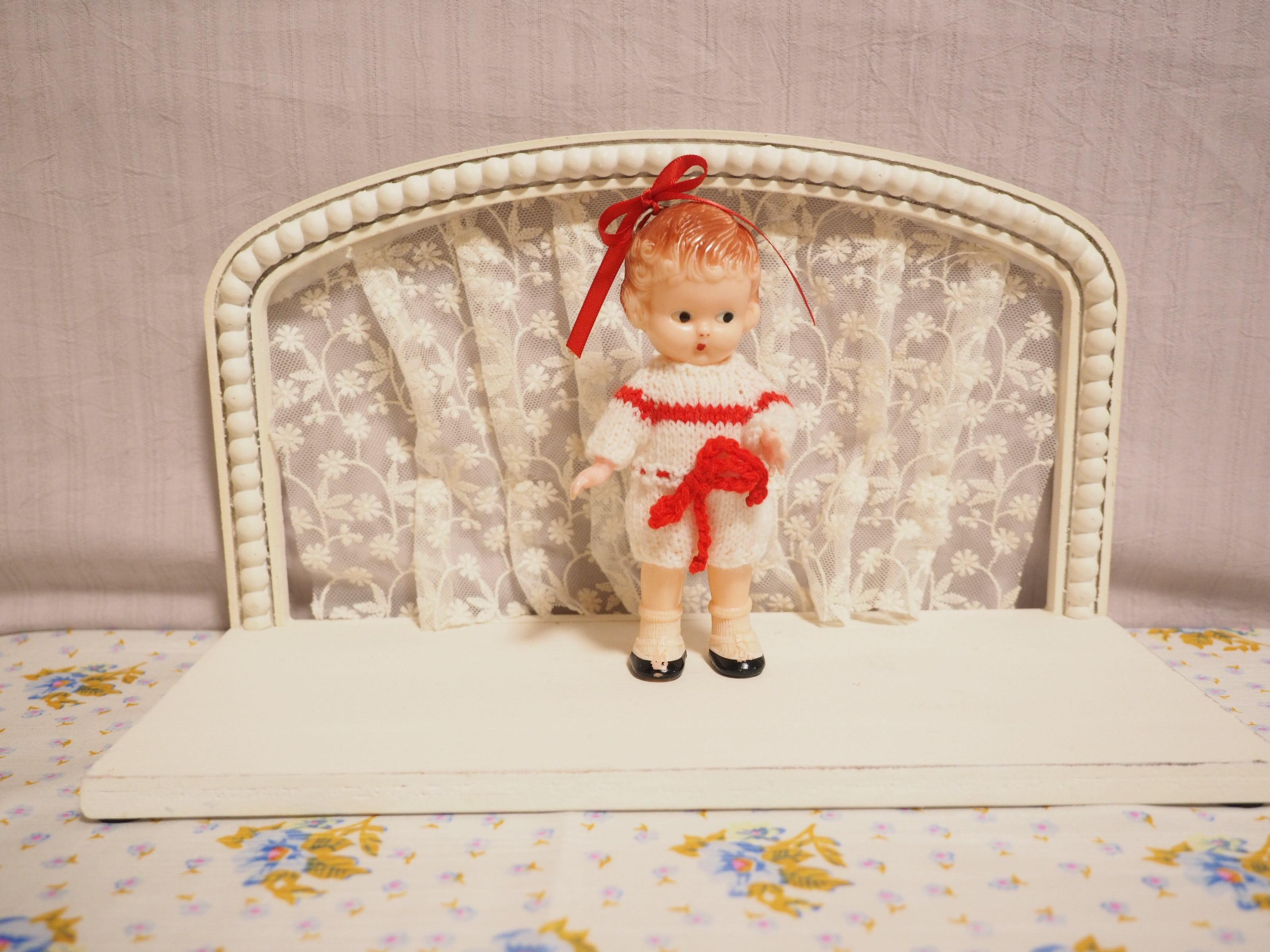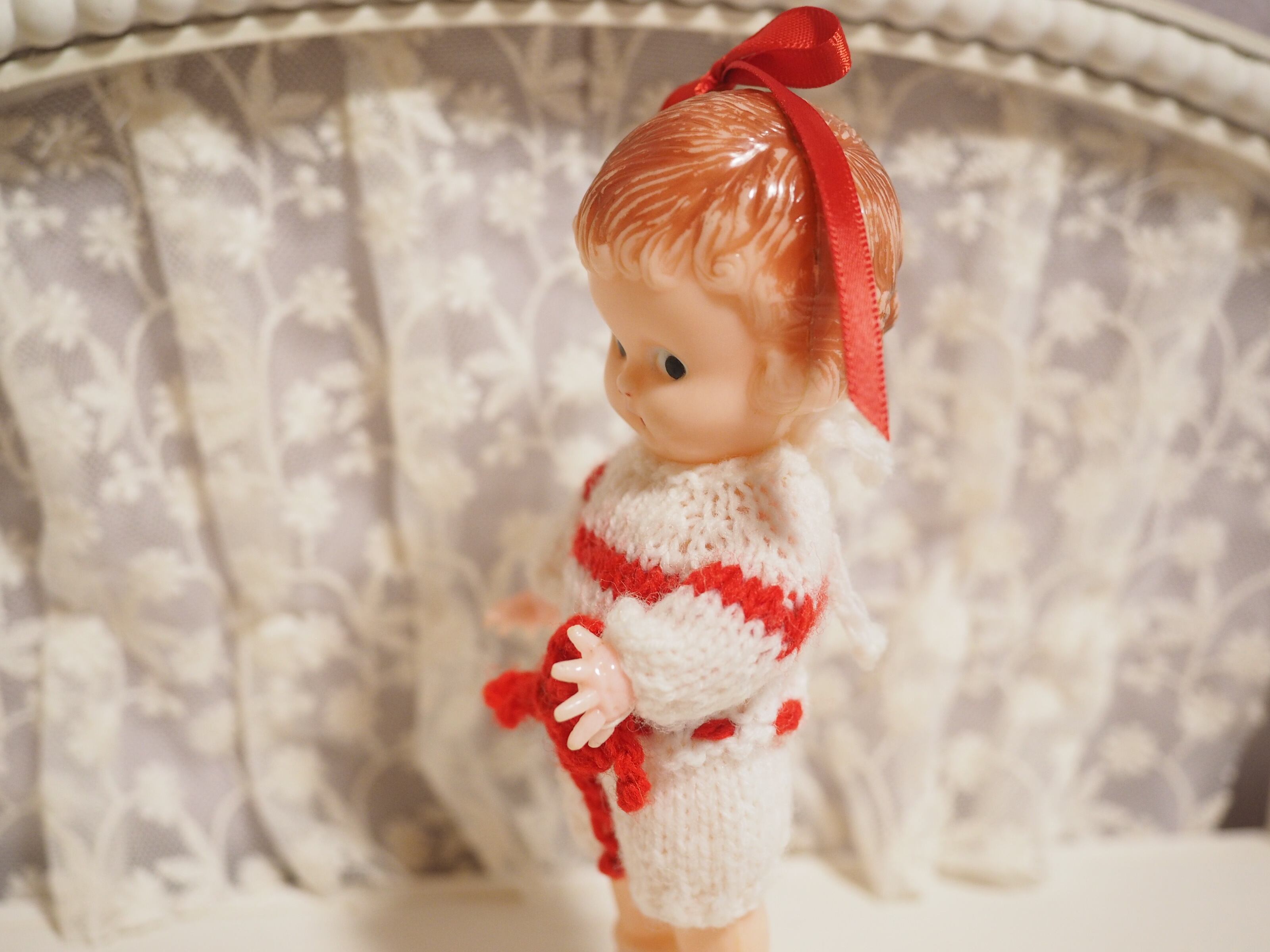 「KNICKERBOCKER」ホワイト×赤ニットのキュートなお人形(筋あり)