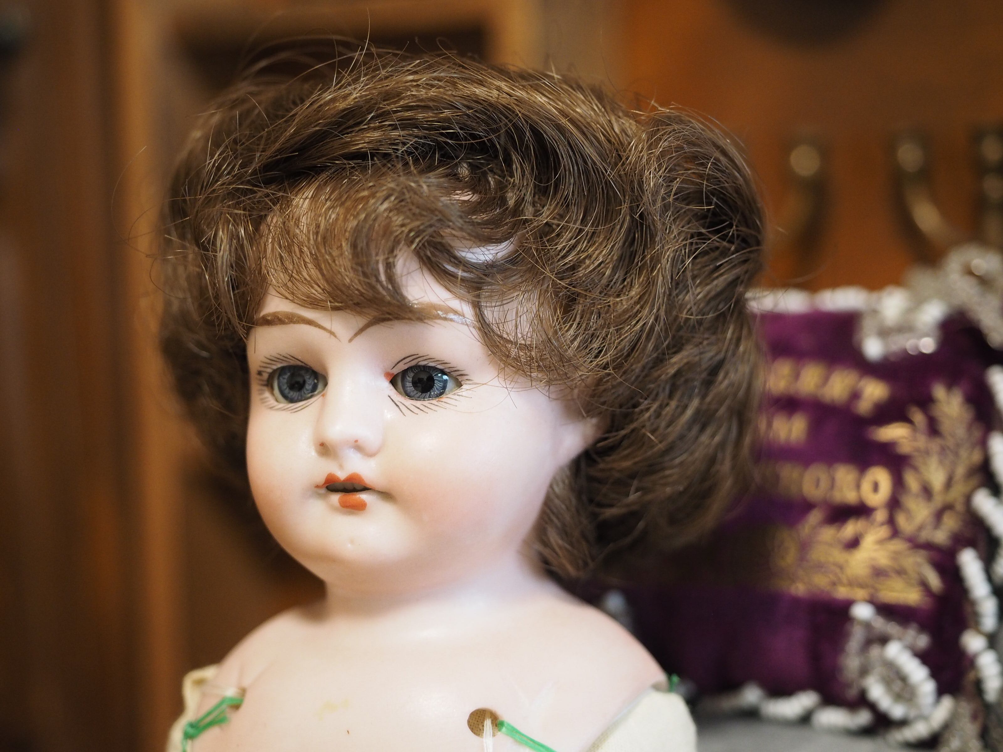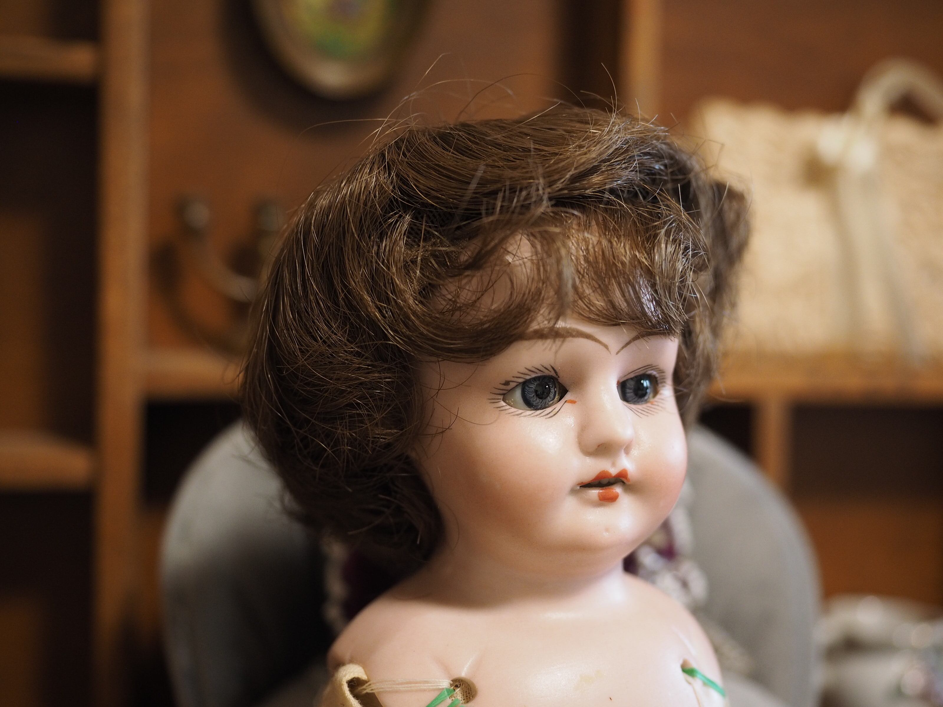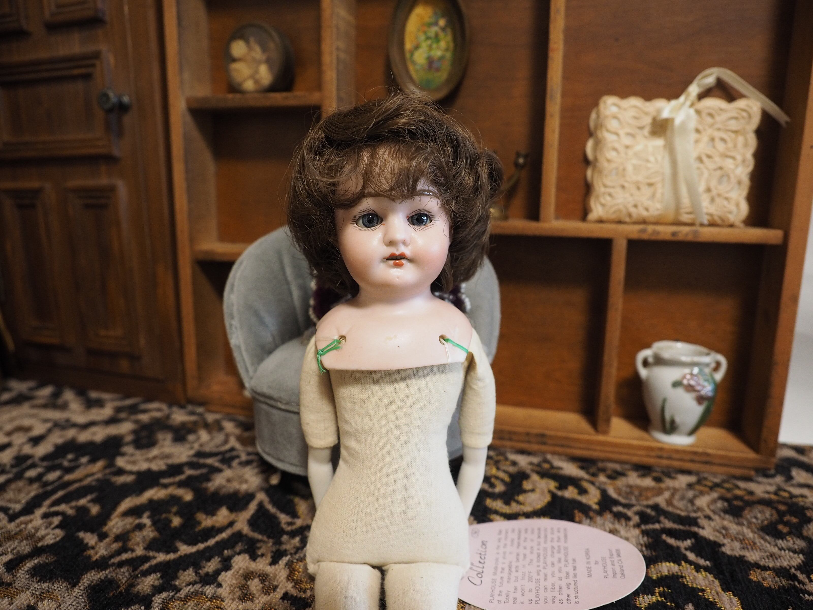 ビスクのショルダーヘッドにボディは新しいクロスボディを付けられています。