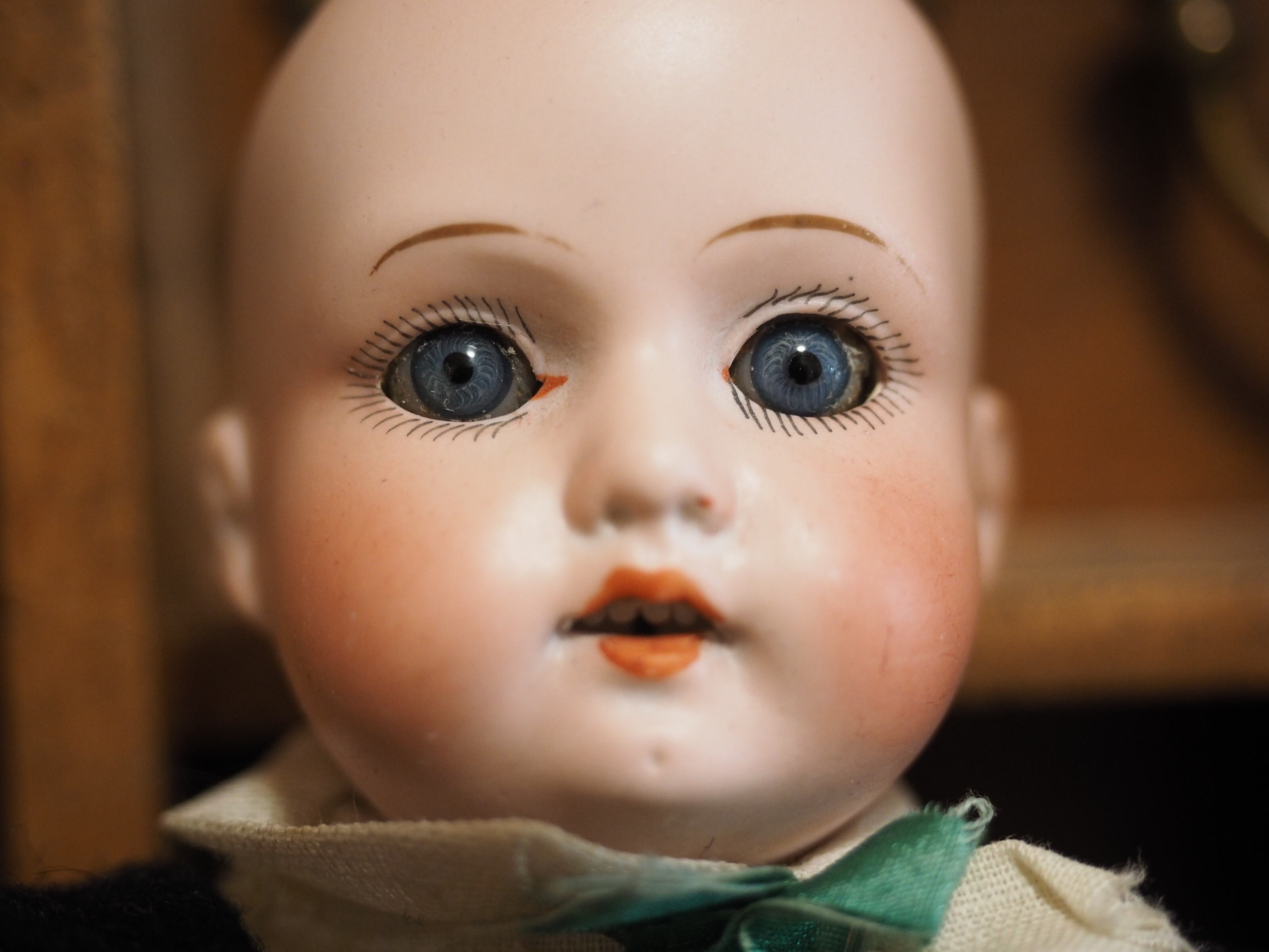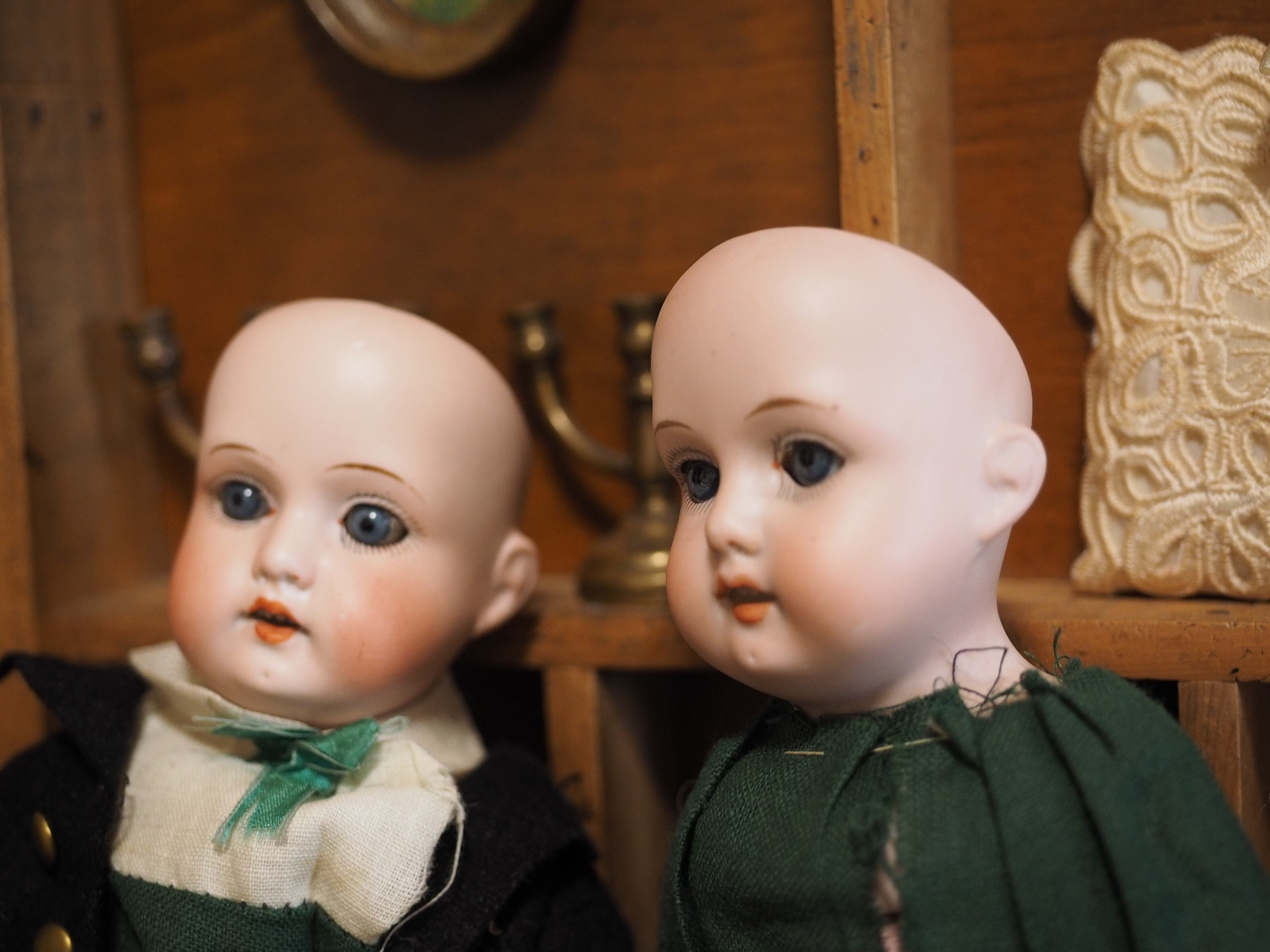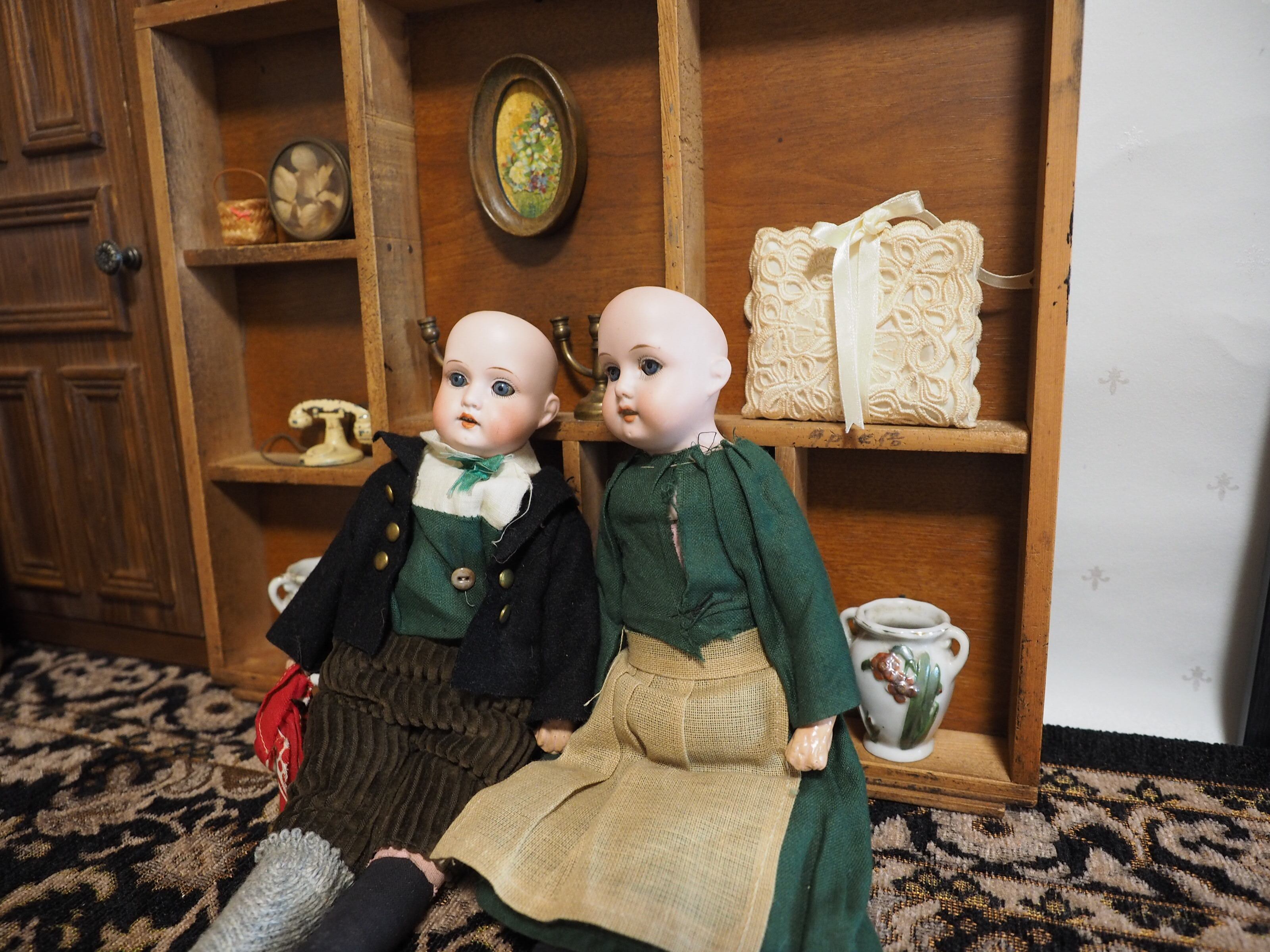 ビスクとグラスアイの美しさ、親しみある装いがなんともかわいらしいペアドールです。