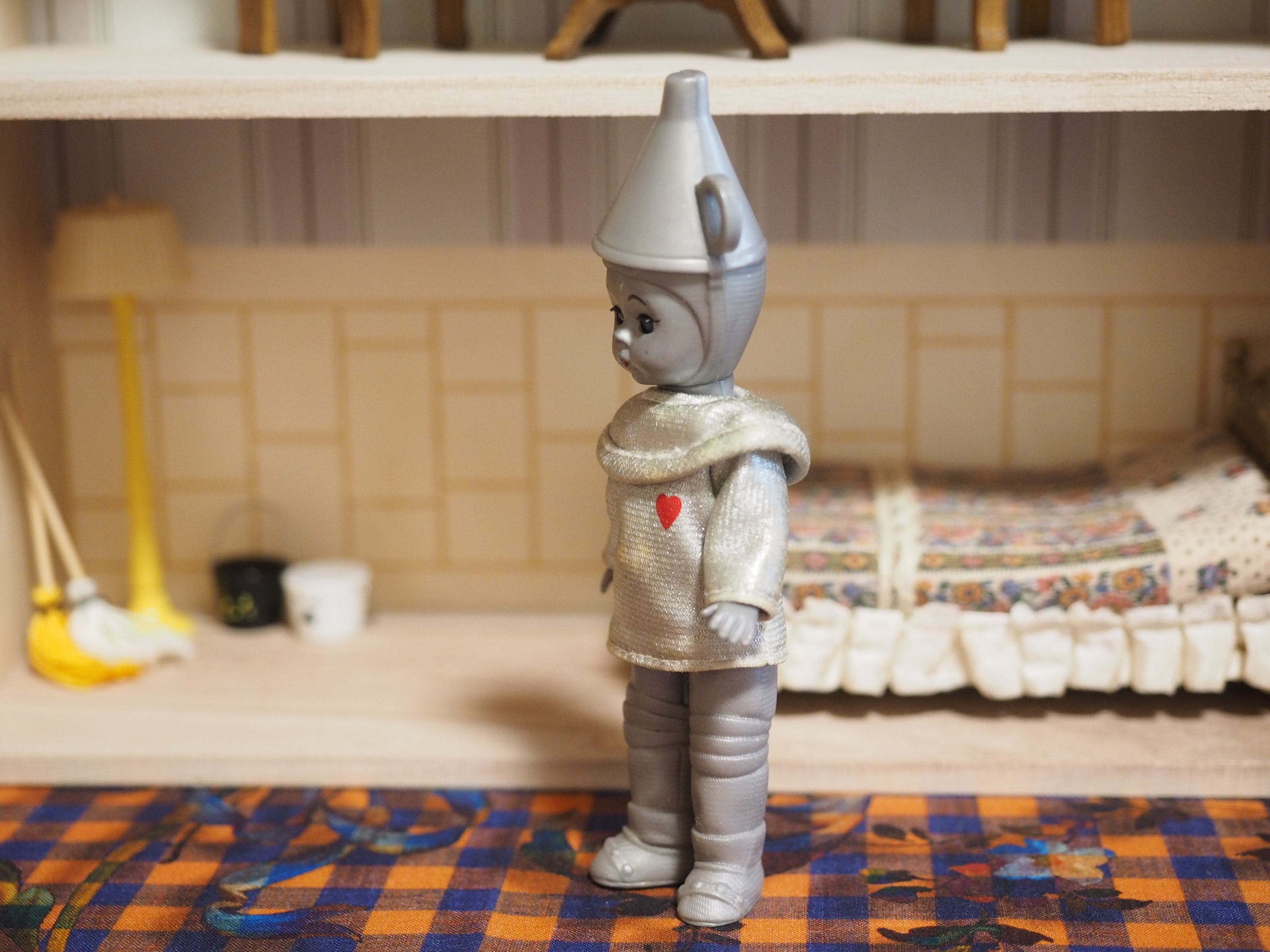 全身が金属風のデザイン、頭は油さしでしょうか?銀色のトップスにはブリキが求めていたハートがワンポイントになっています。