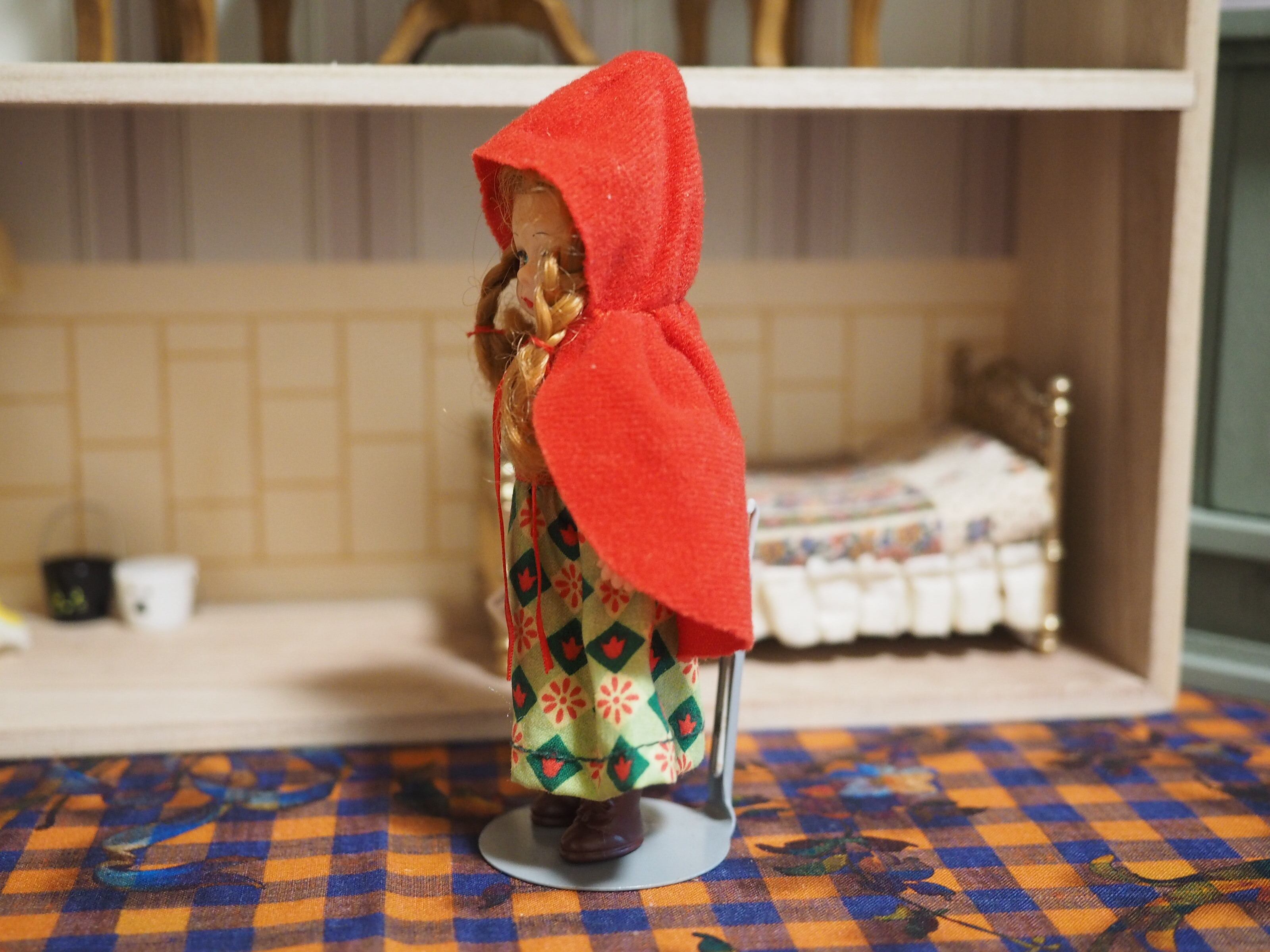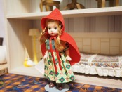 赤い頭巾とワンピース、茶色のブーツがおしゃれな赤ずきんちゃんです。