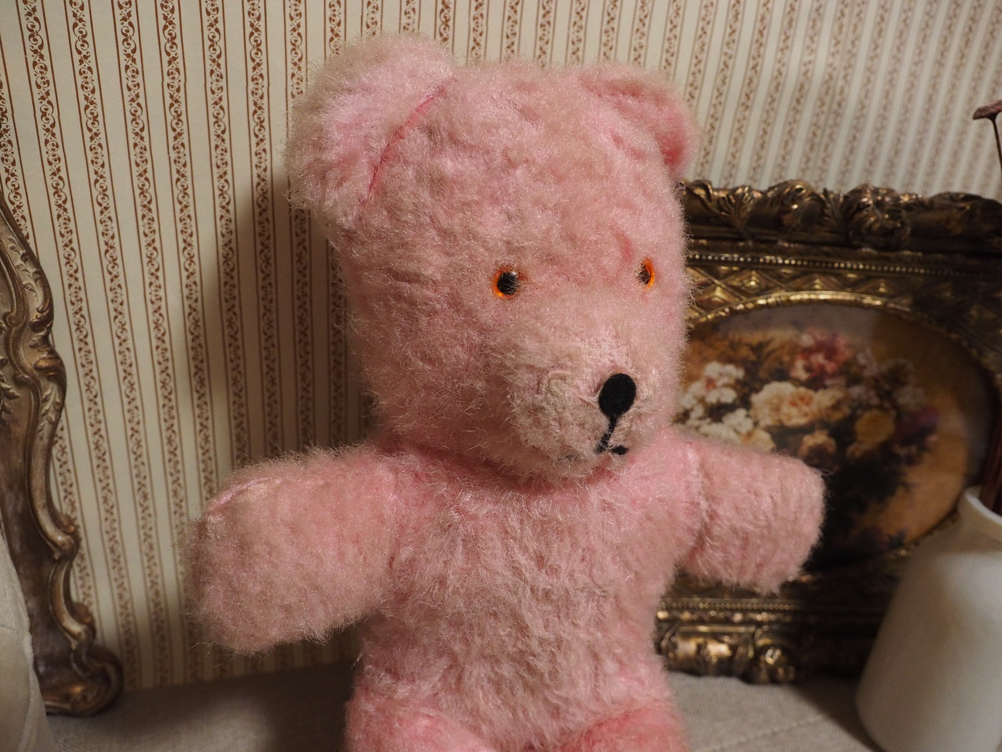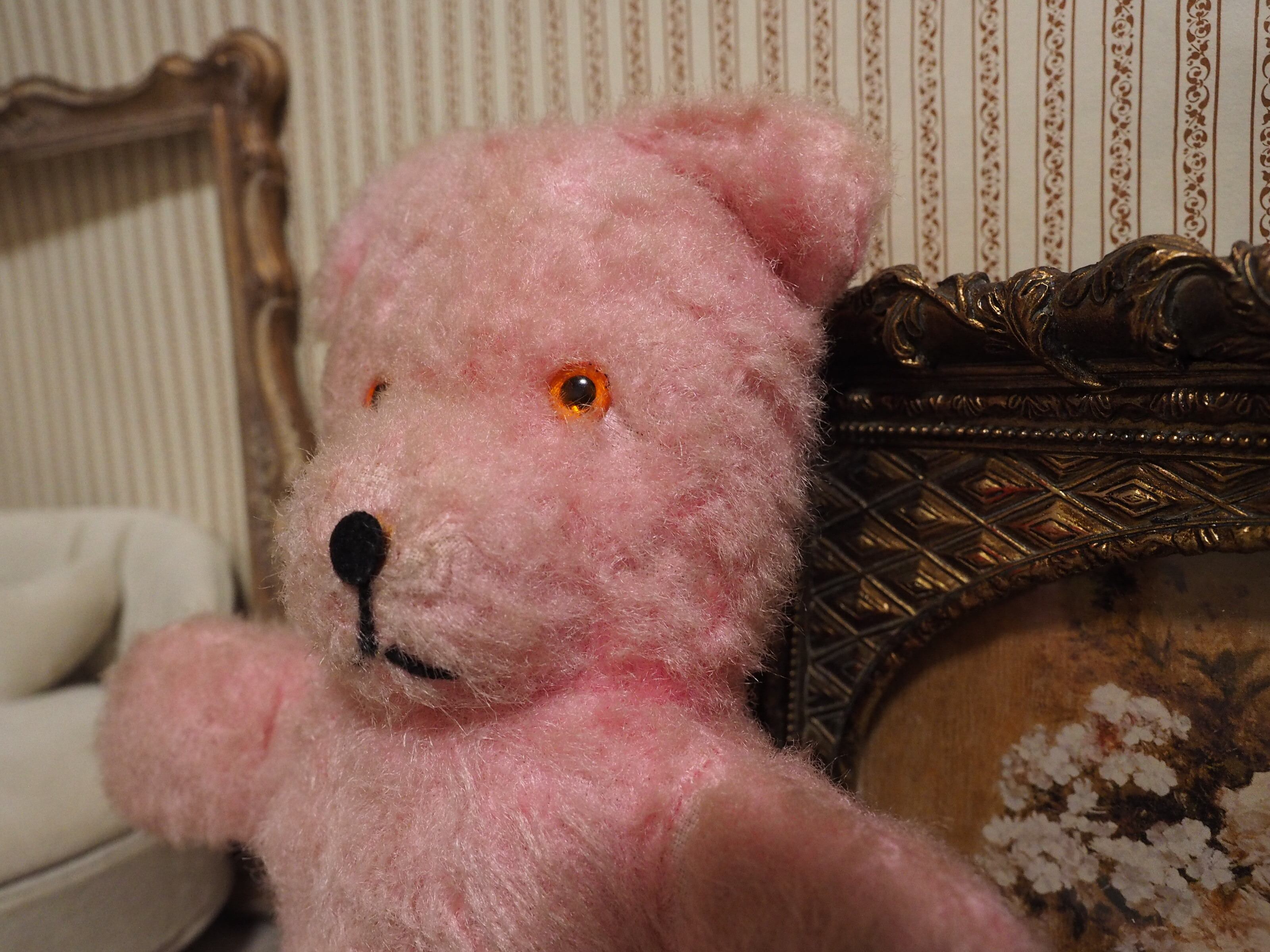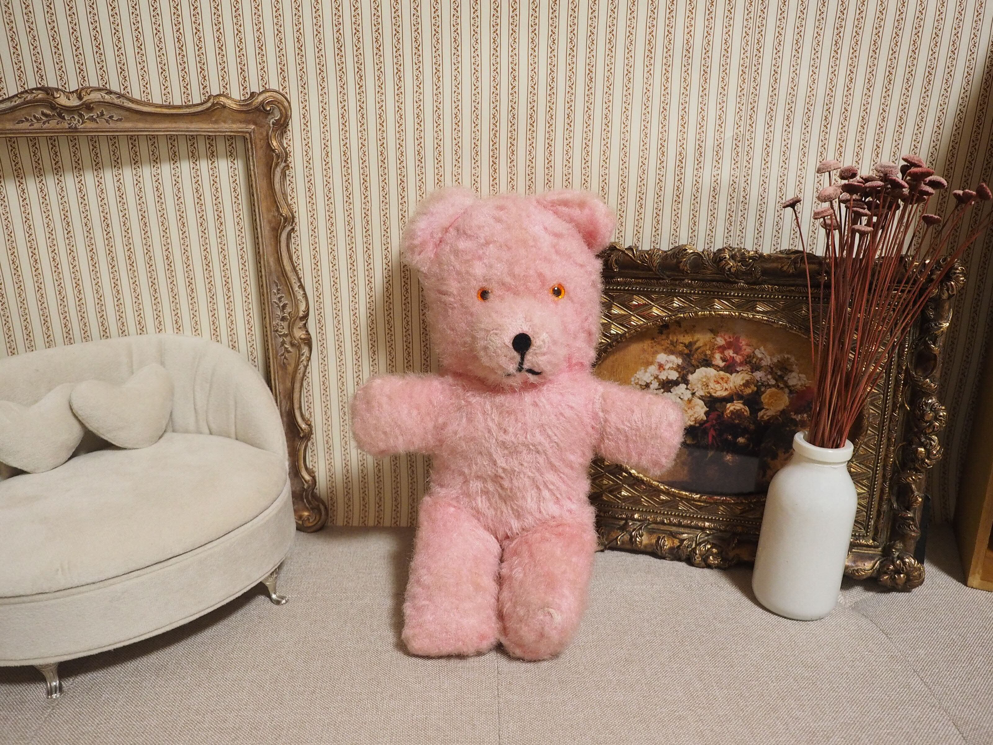 きょとんとしたような表情や立ち姿が可愛らしく、お人形と一緒も素敵なベアです。