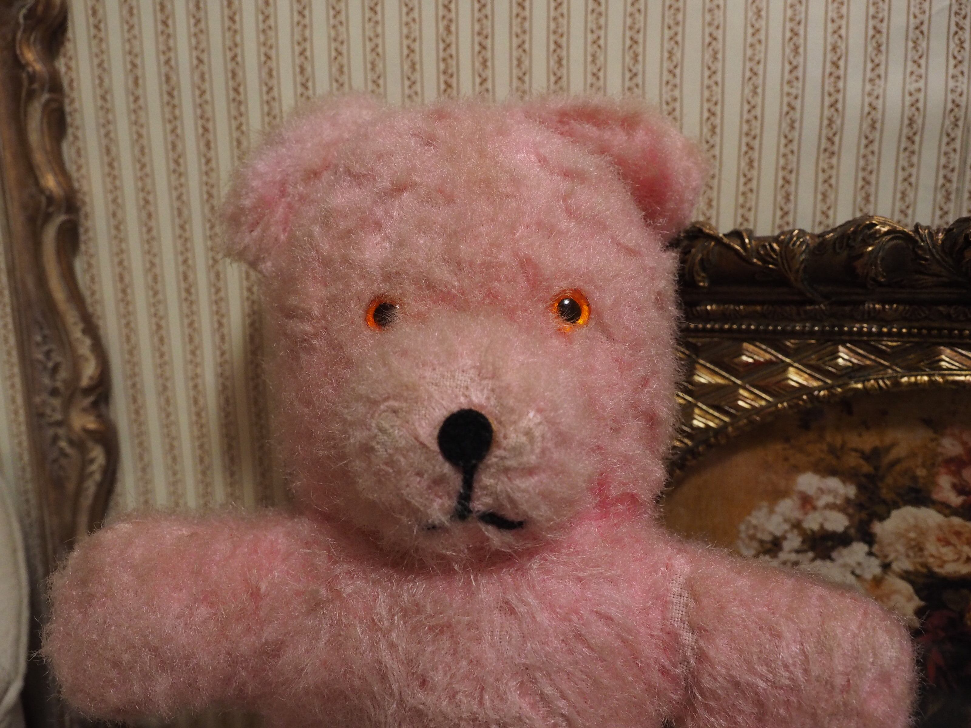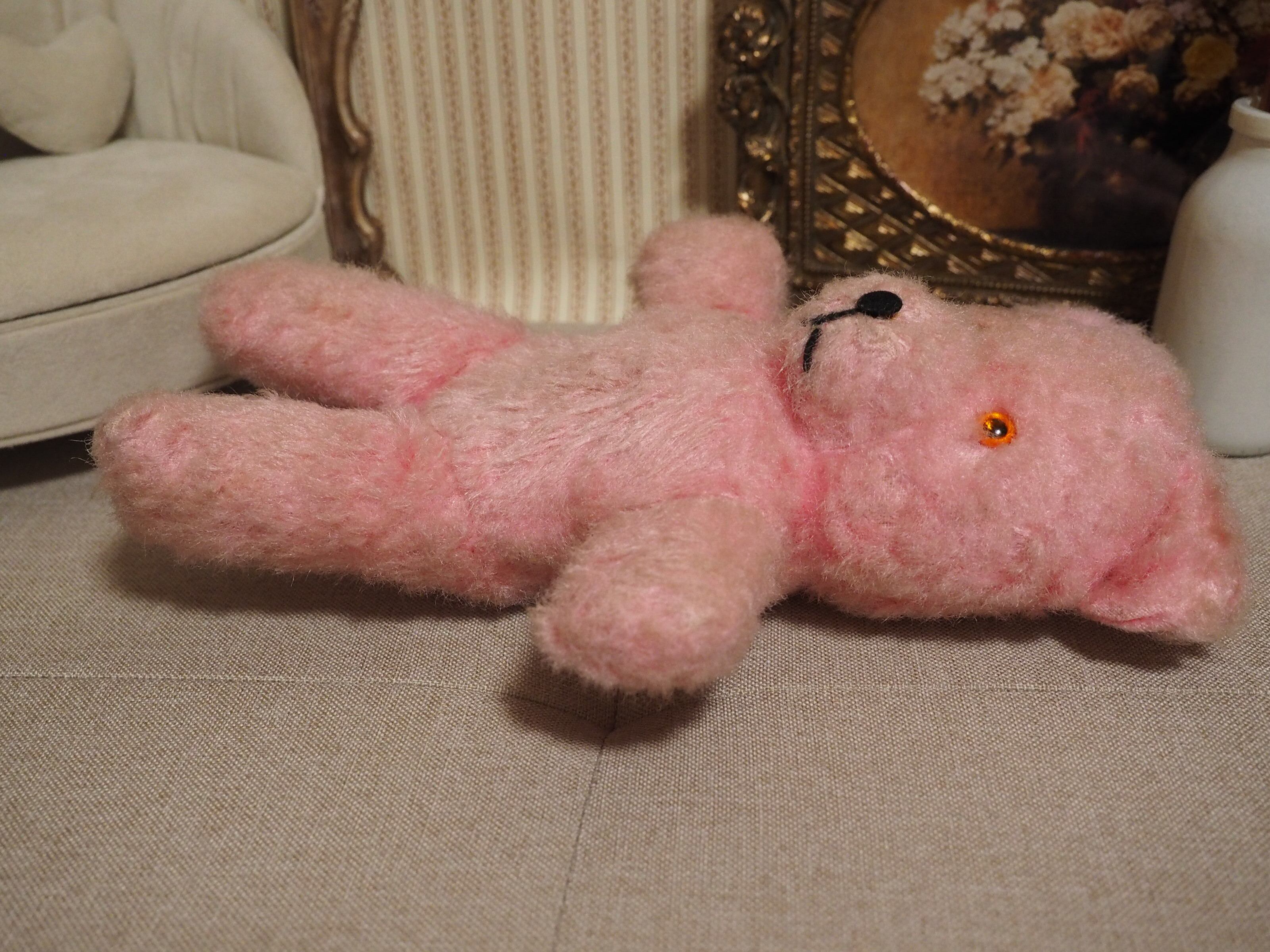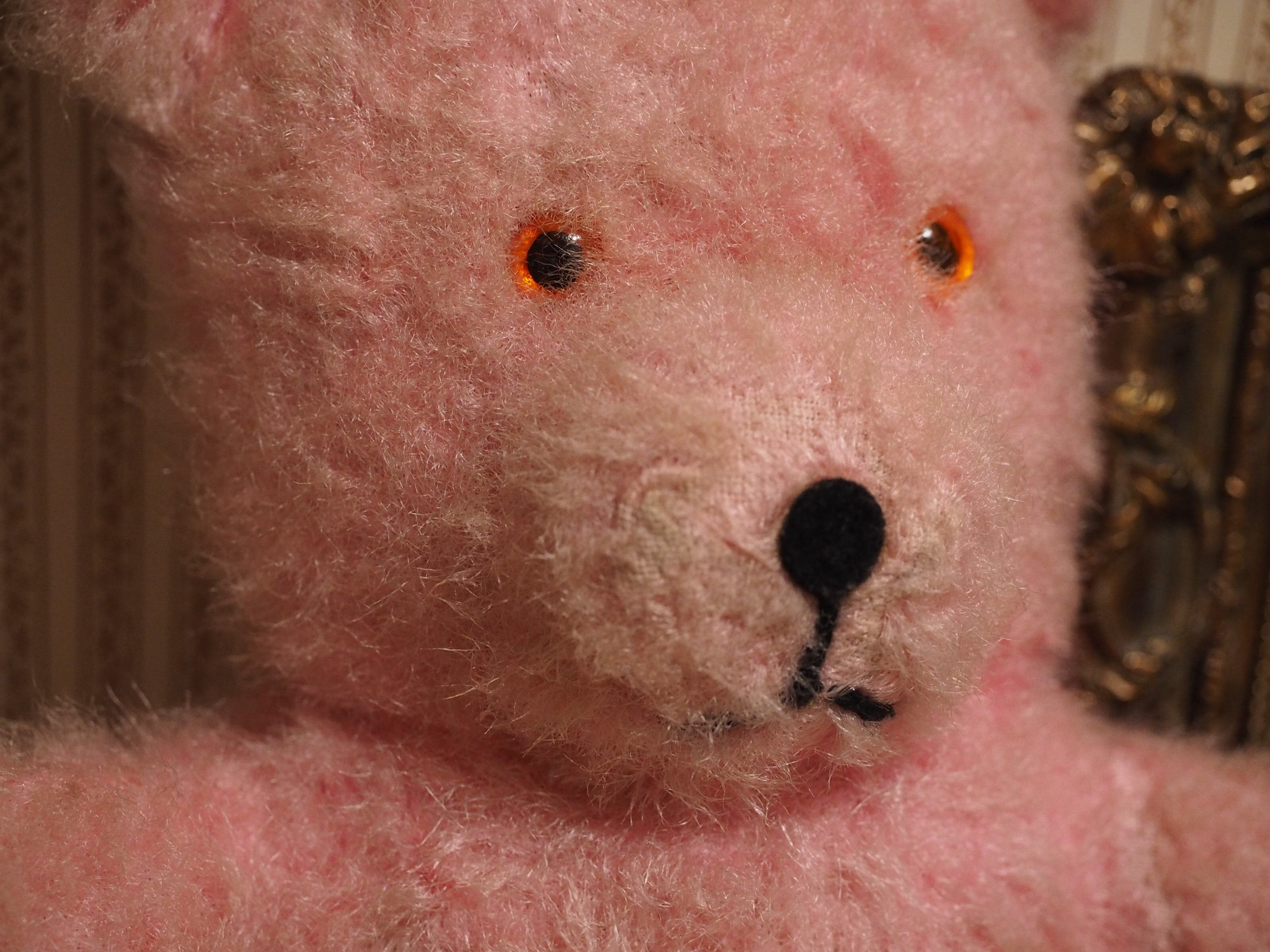 きょとんとしたような表情や立ち姿が可愛らしく、お人形と一緒も素敵なベアです。
