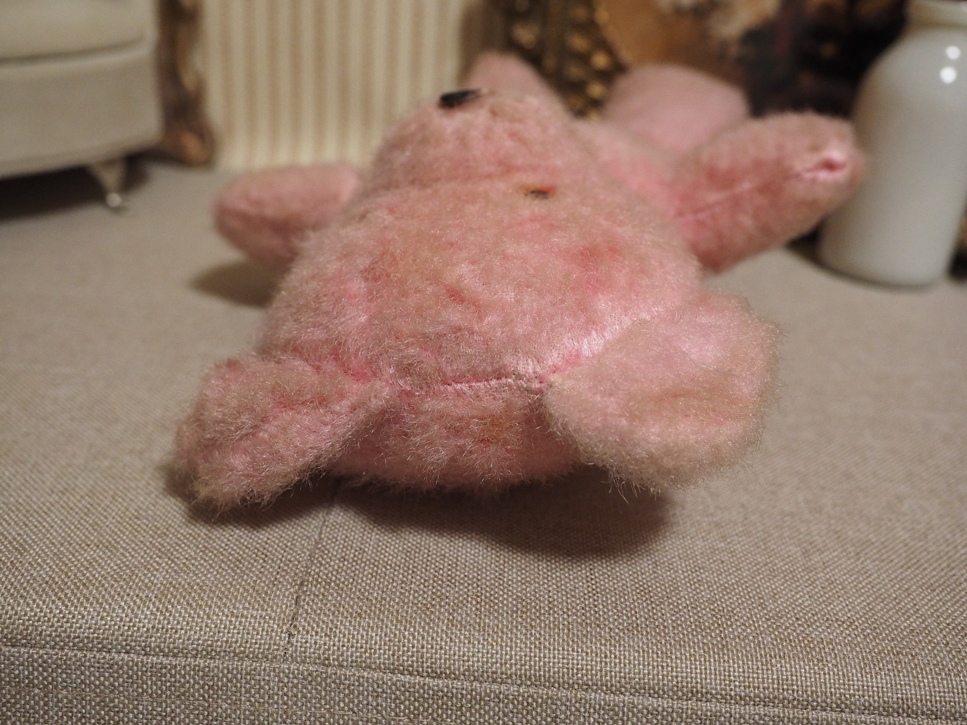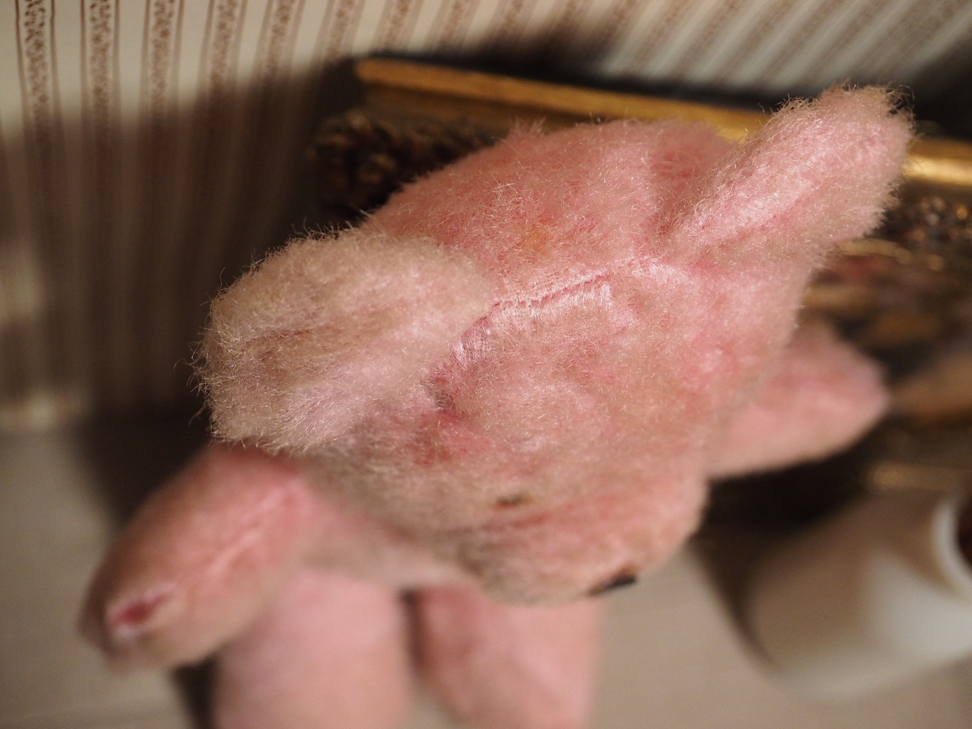 たくさん遊んで連れていってもらったのでしょうか、鼻のまわりや足先、つなぎ目の毛が薄くなって地肌が見えています。