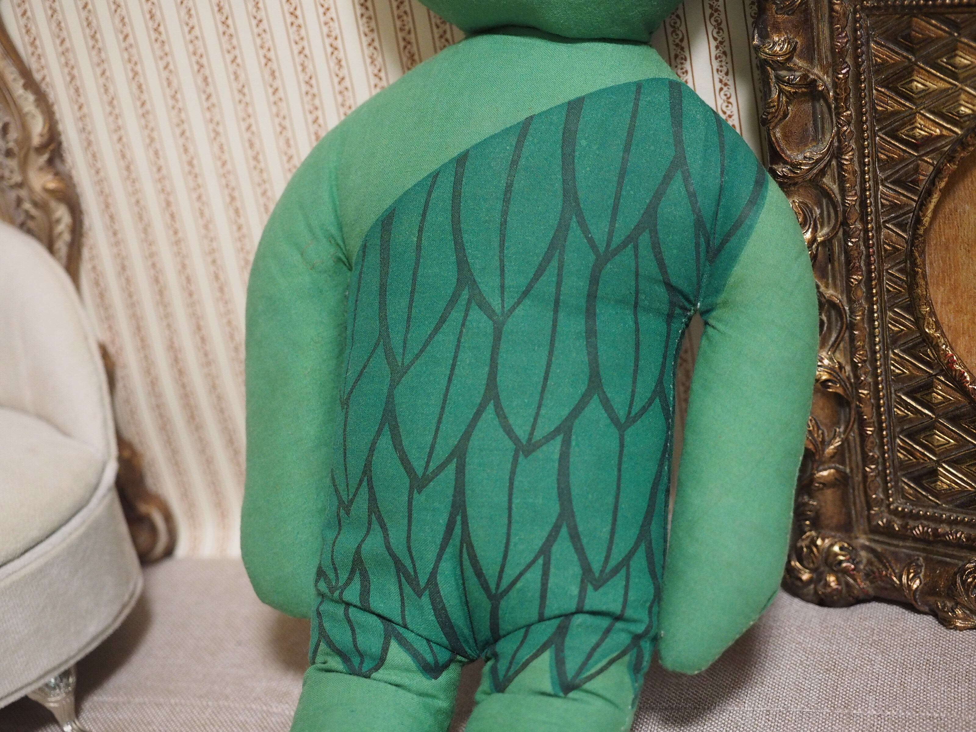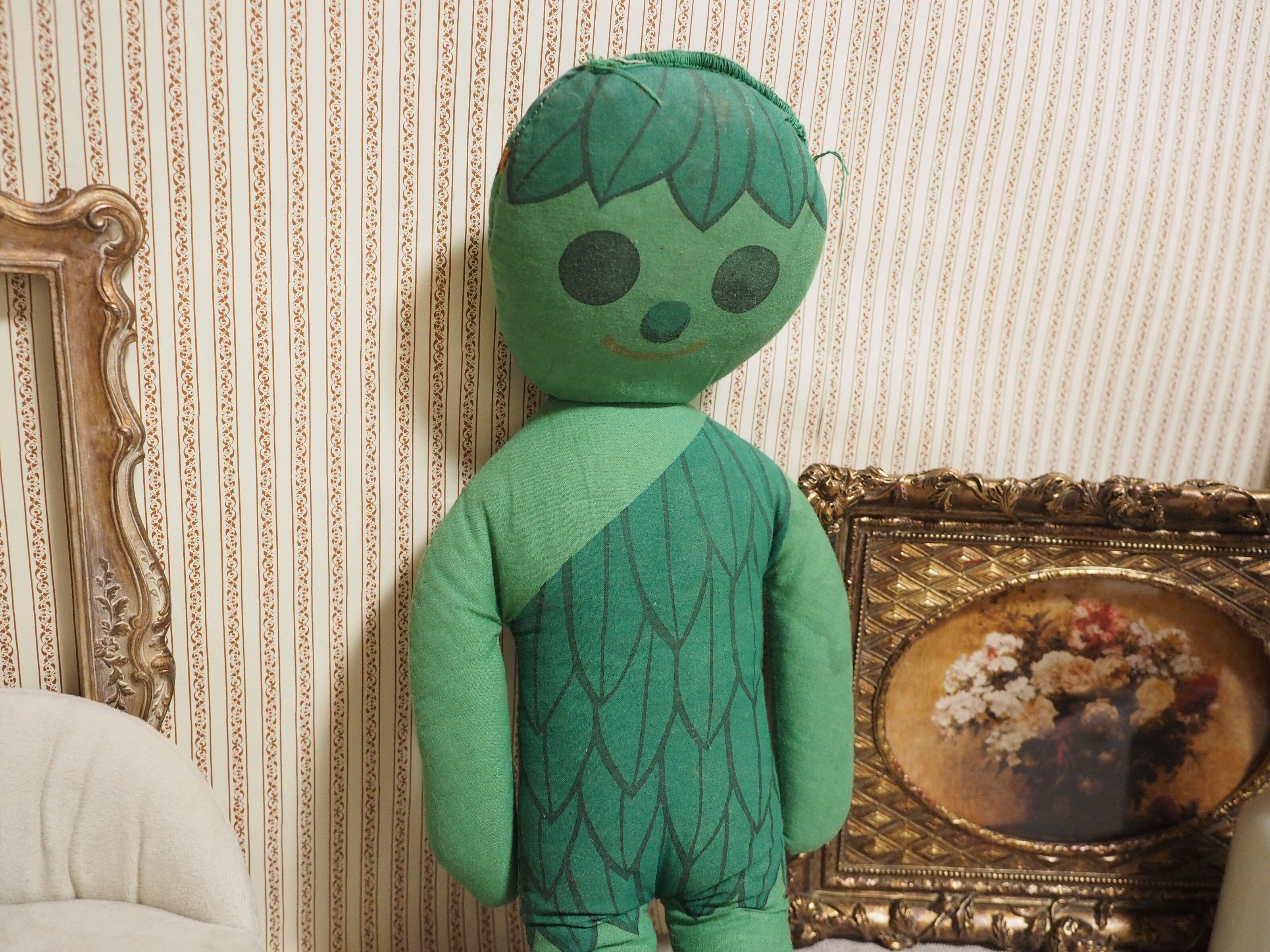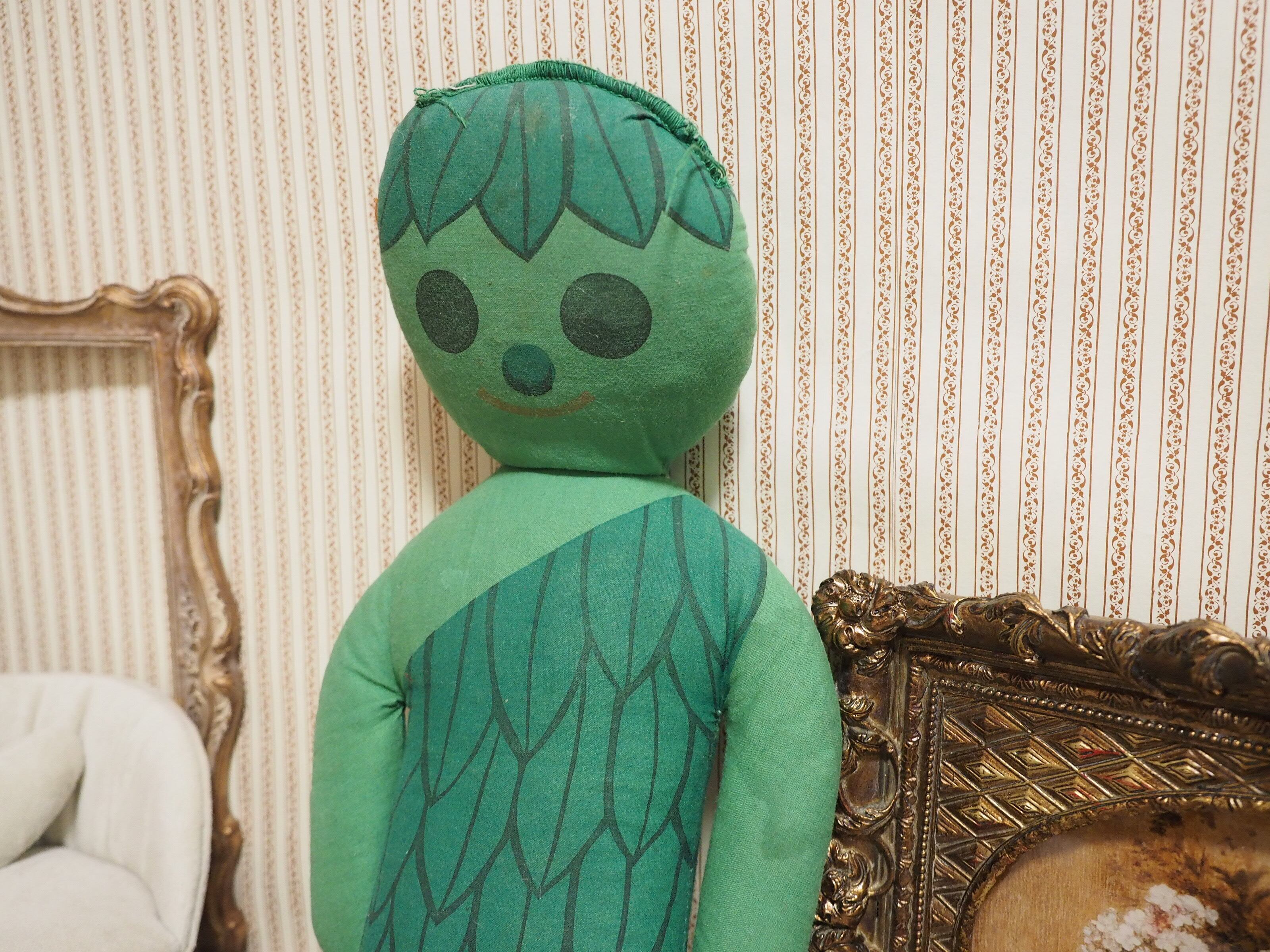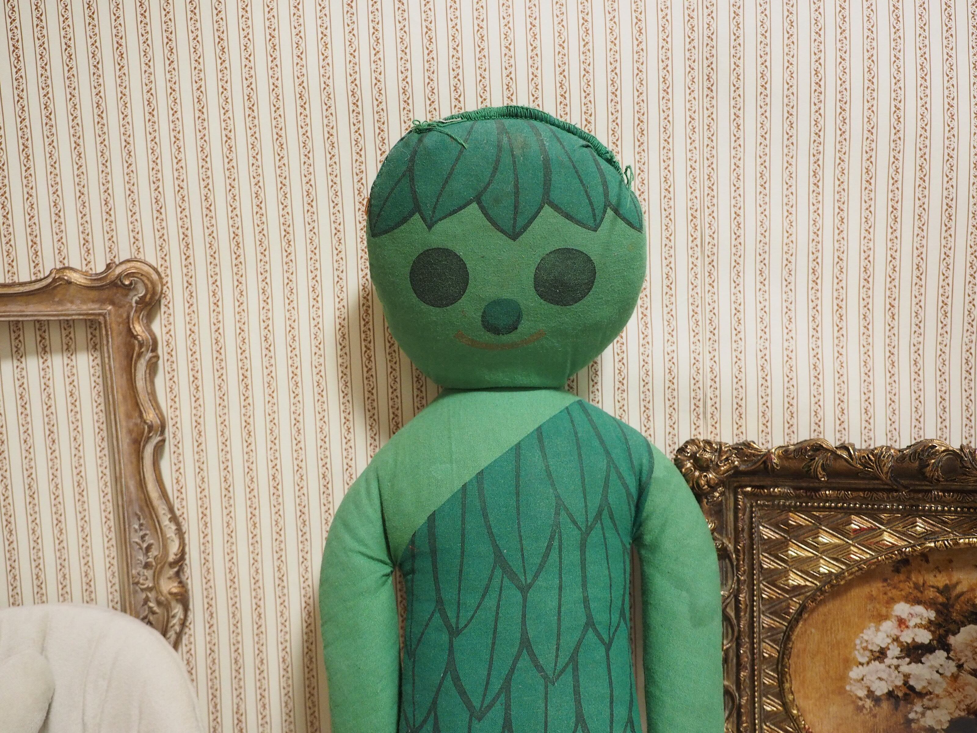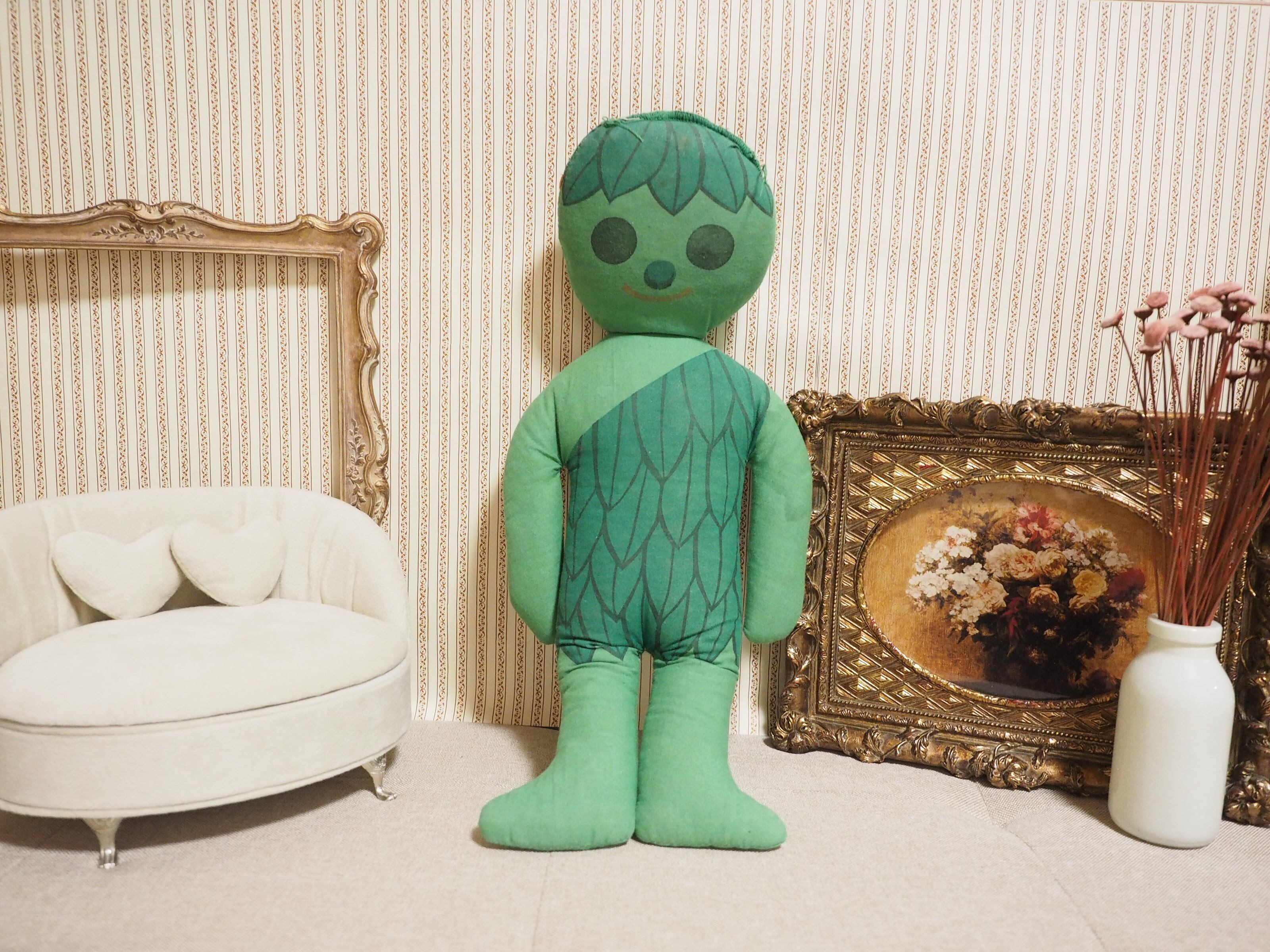 グリーンの体に葉っぱのヘアと洋服、くったりした様子と丸い瞳が優しそうなジャイアント。