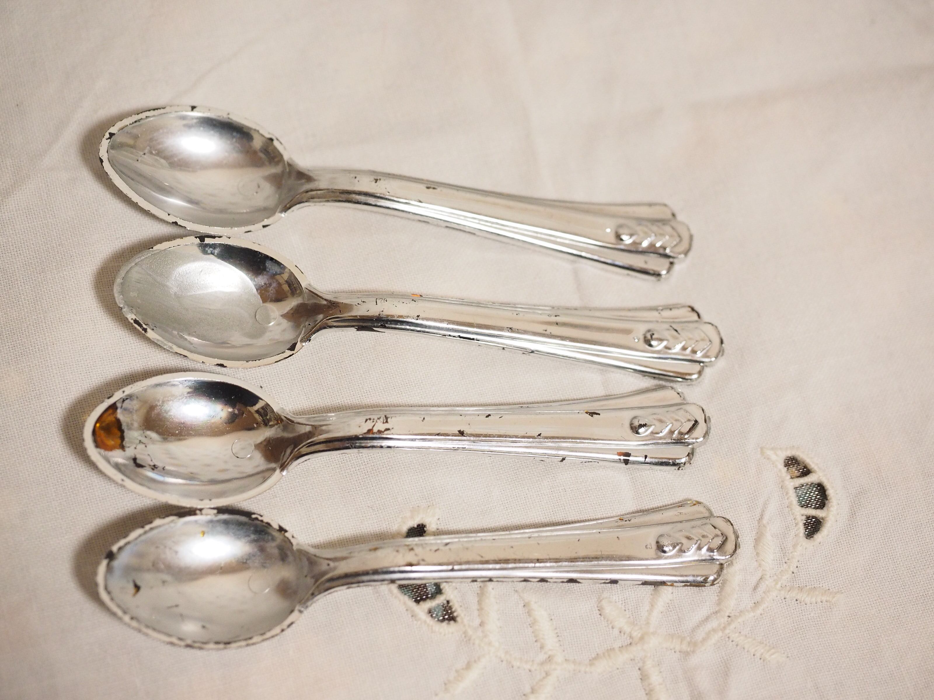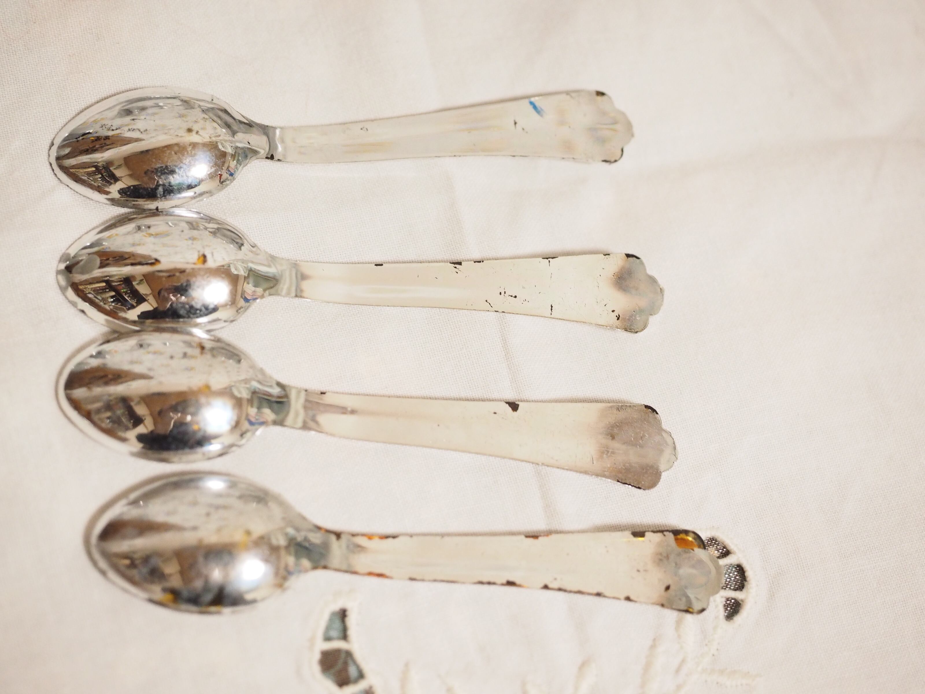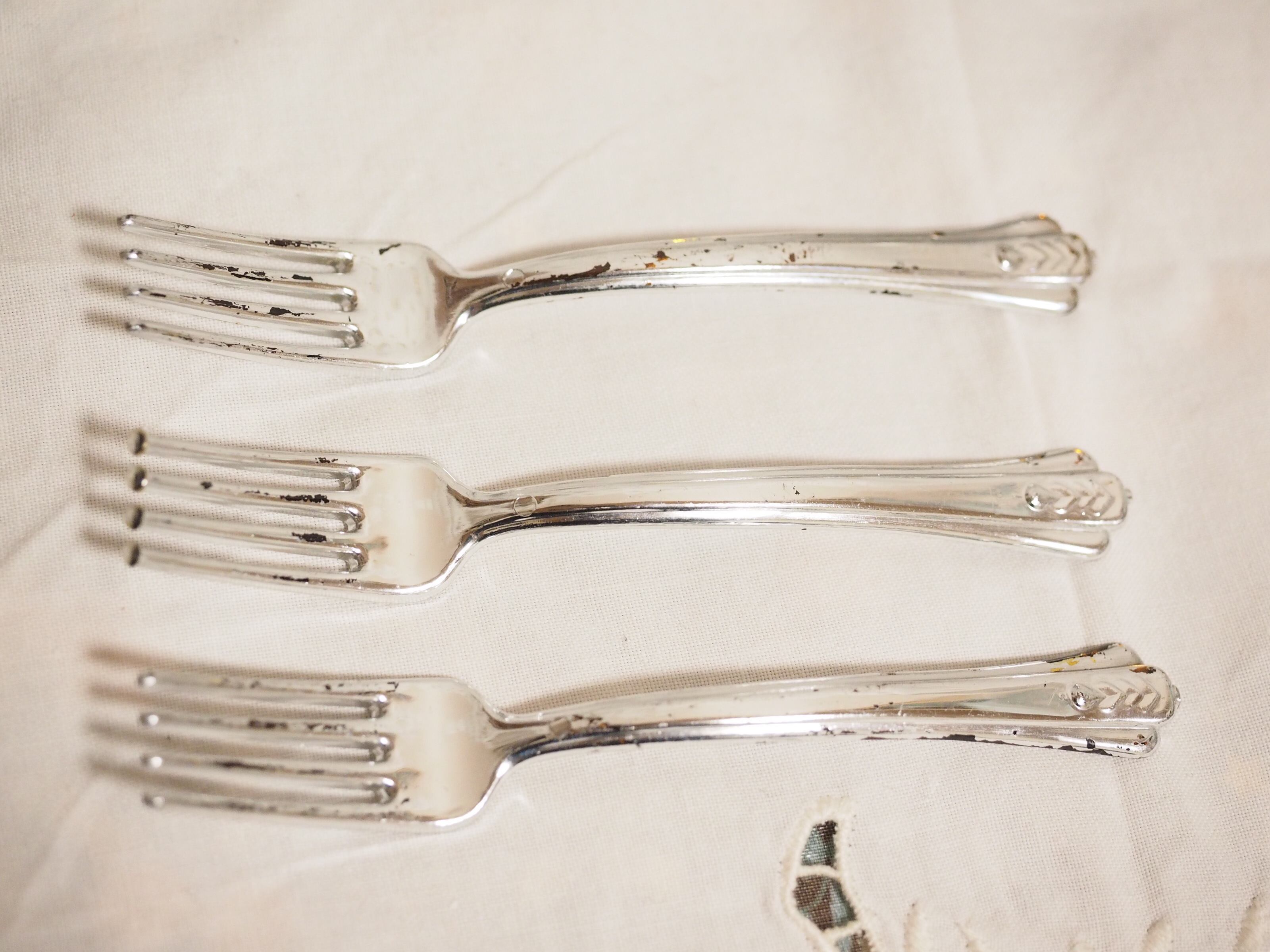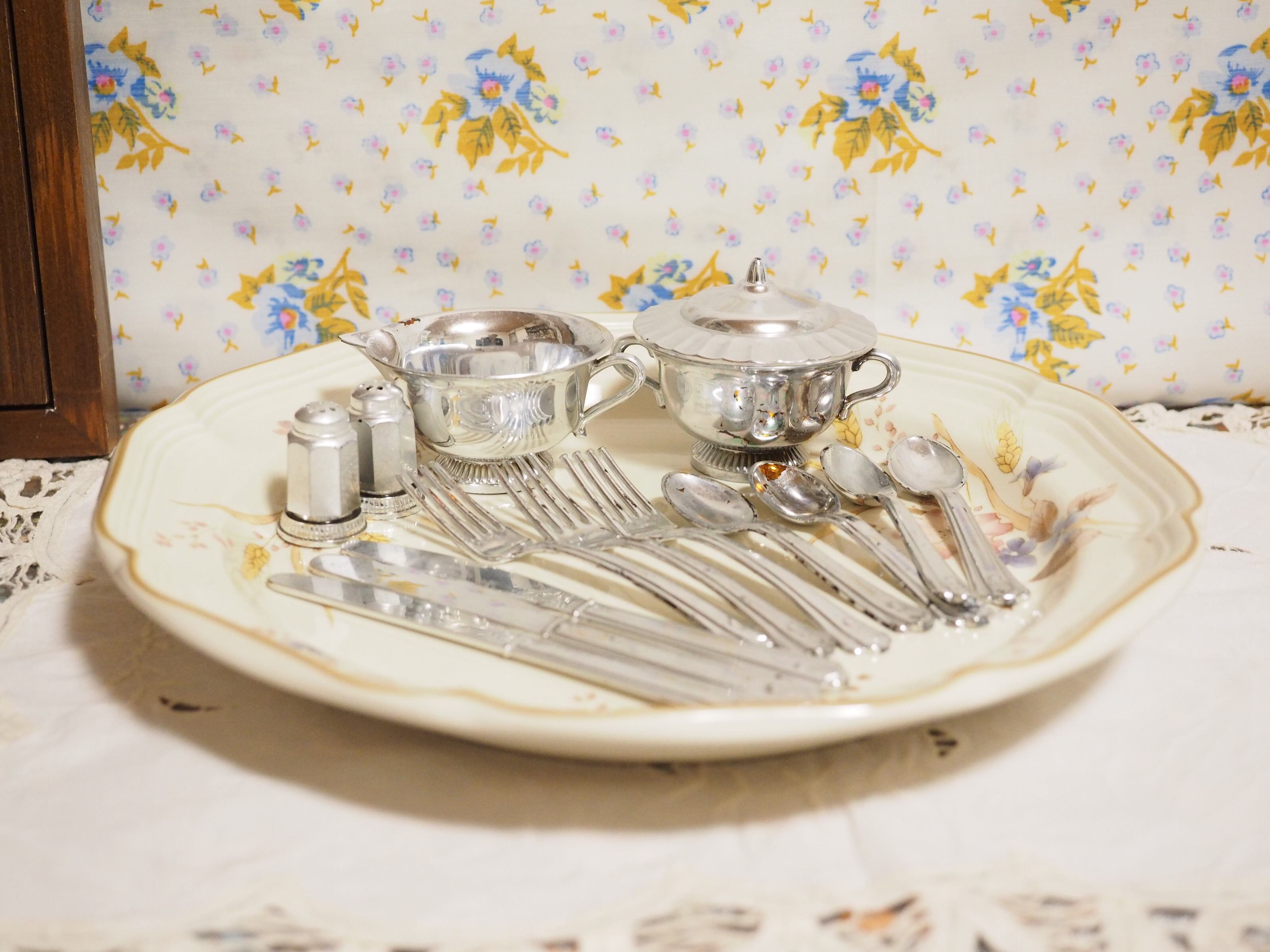 銀色カトラリー、食器 13点セット(剥がれ、欠けあり)