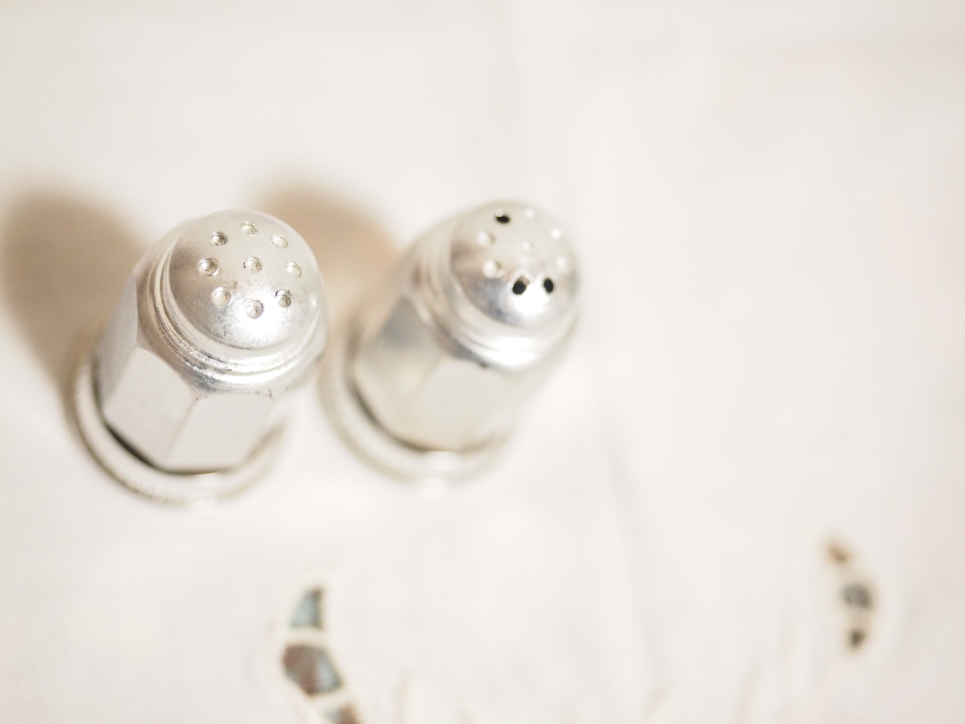 カトラリーの柄尻模様や、ソルト&ペッパーの角っとしたデザイン、カップのクラシカルな形が素敵なセットです。