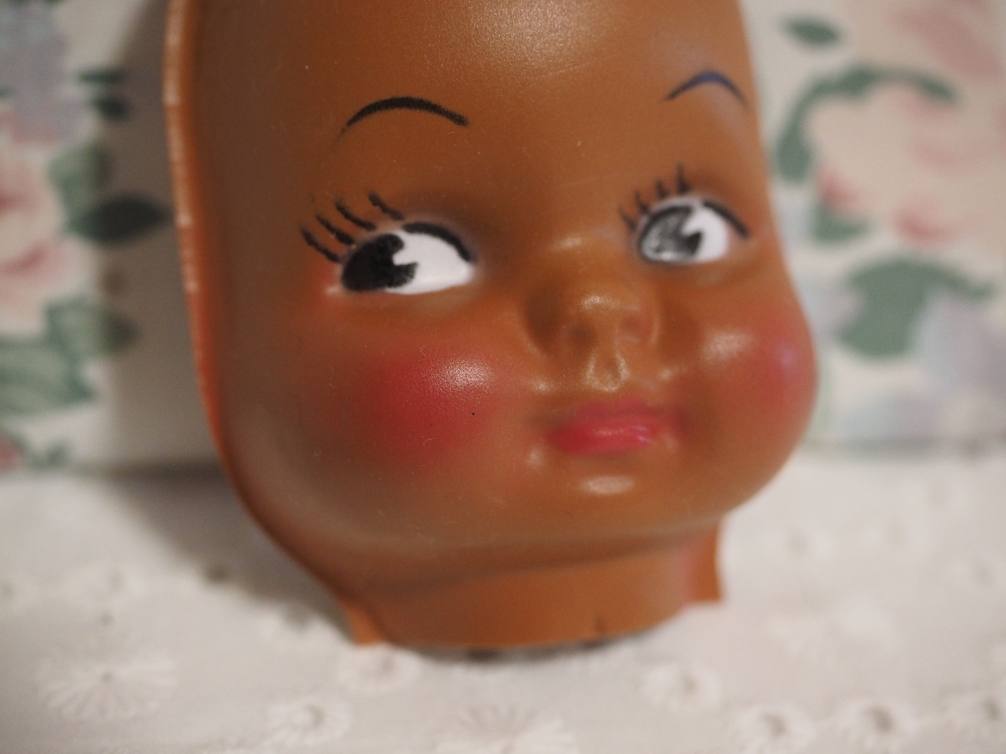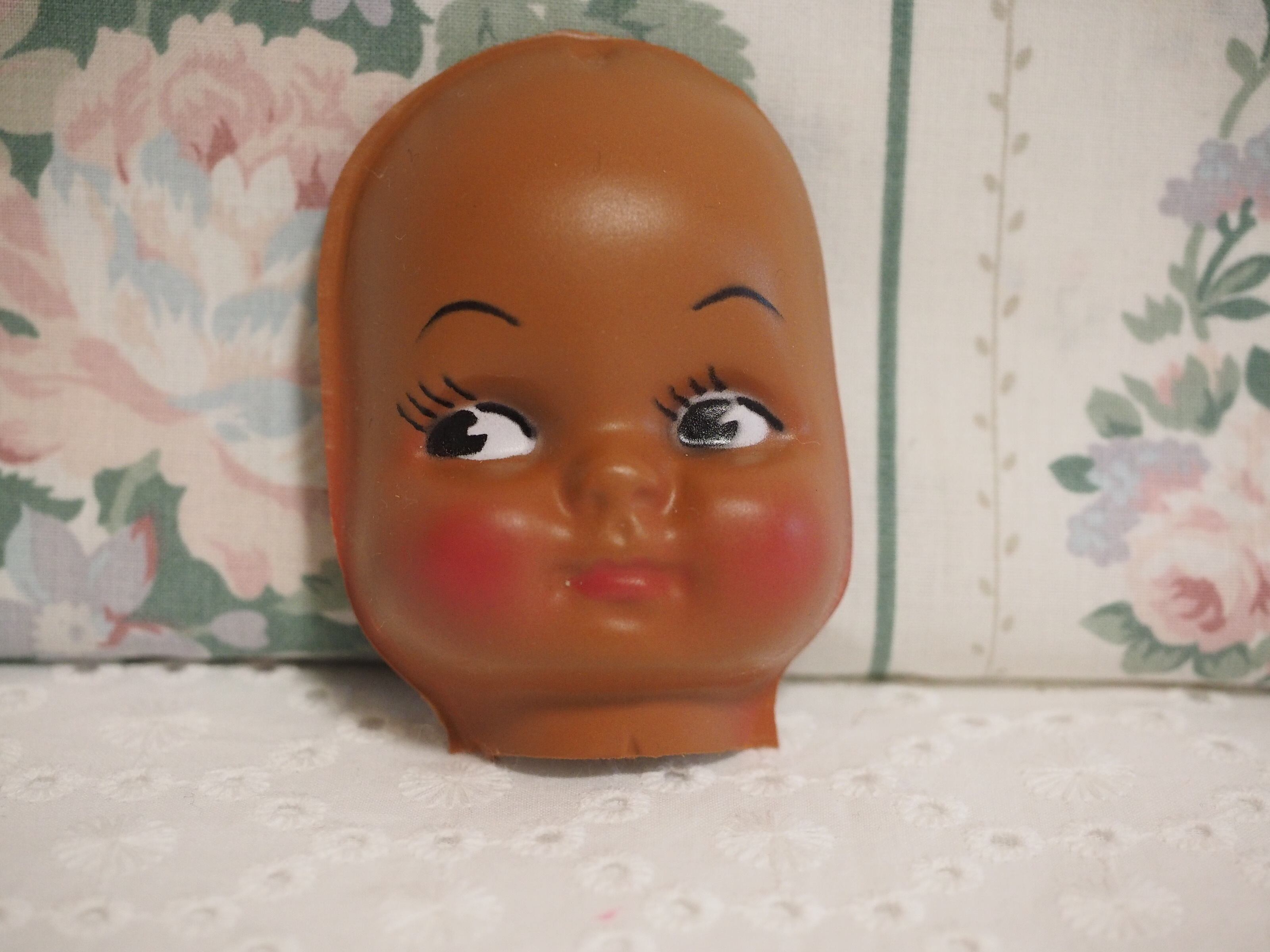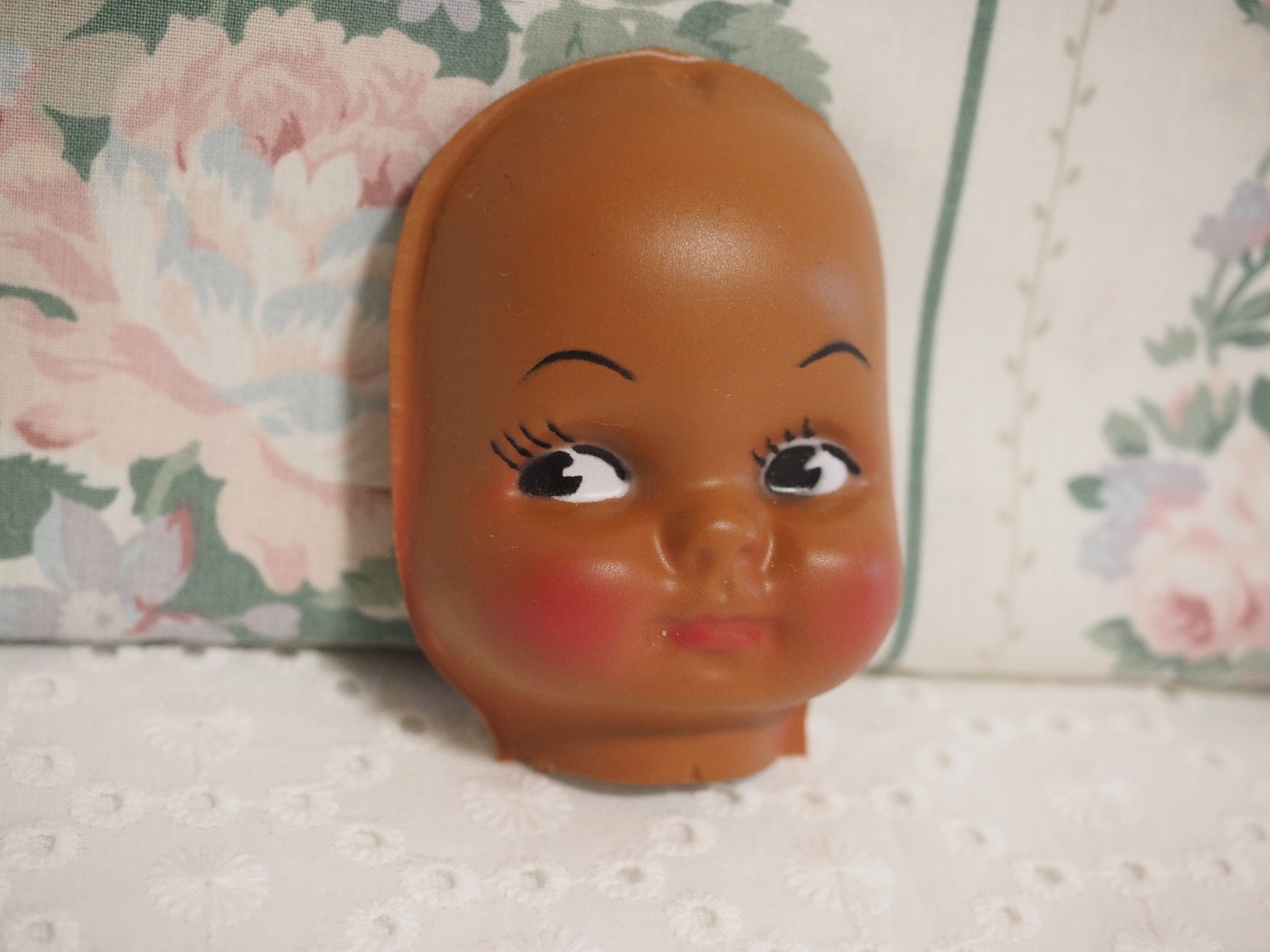 こんがり焼けた肌にばら色の頬、キュートなビンテージフェイスパーツです。