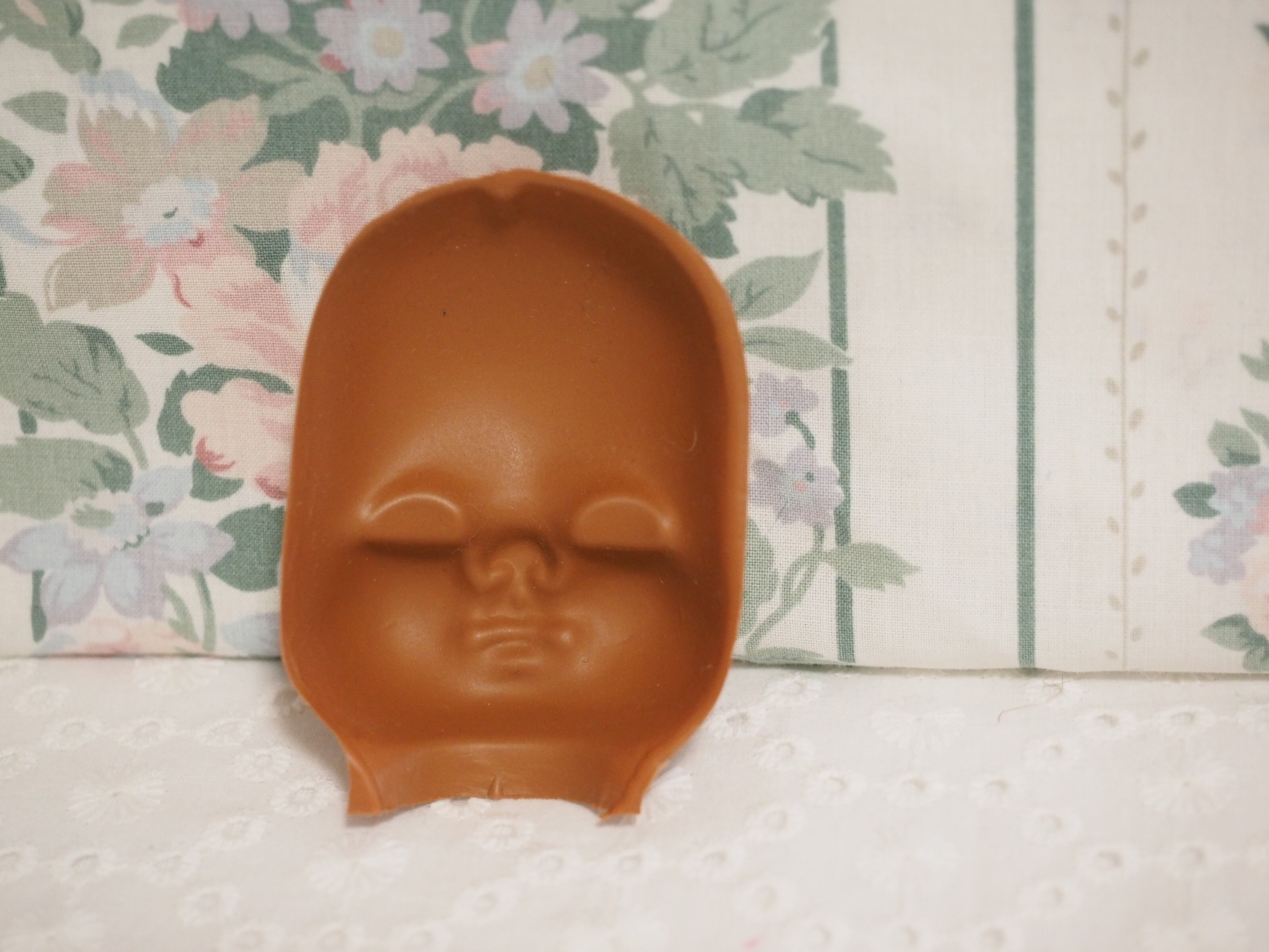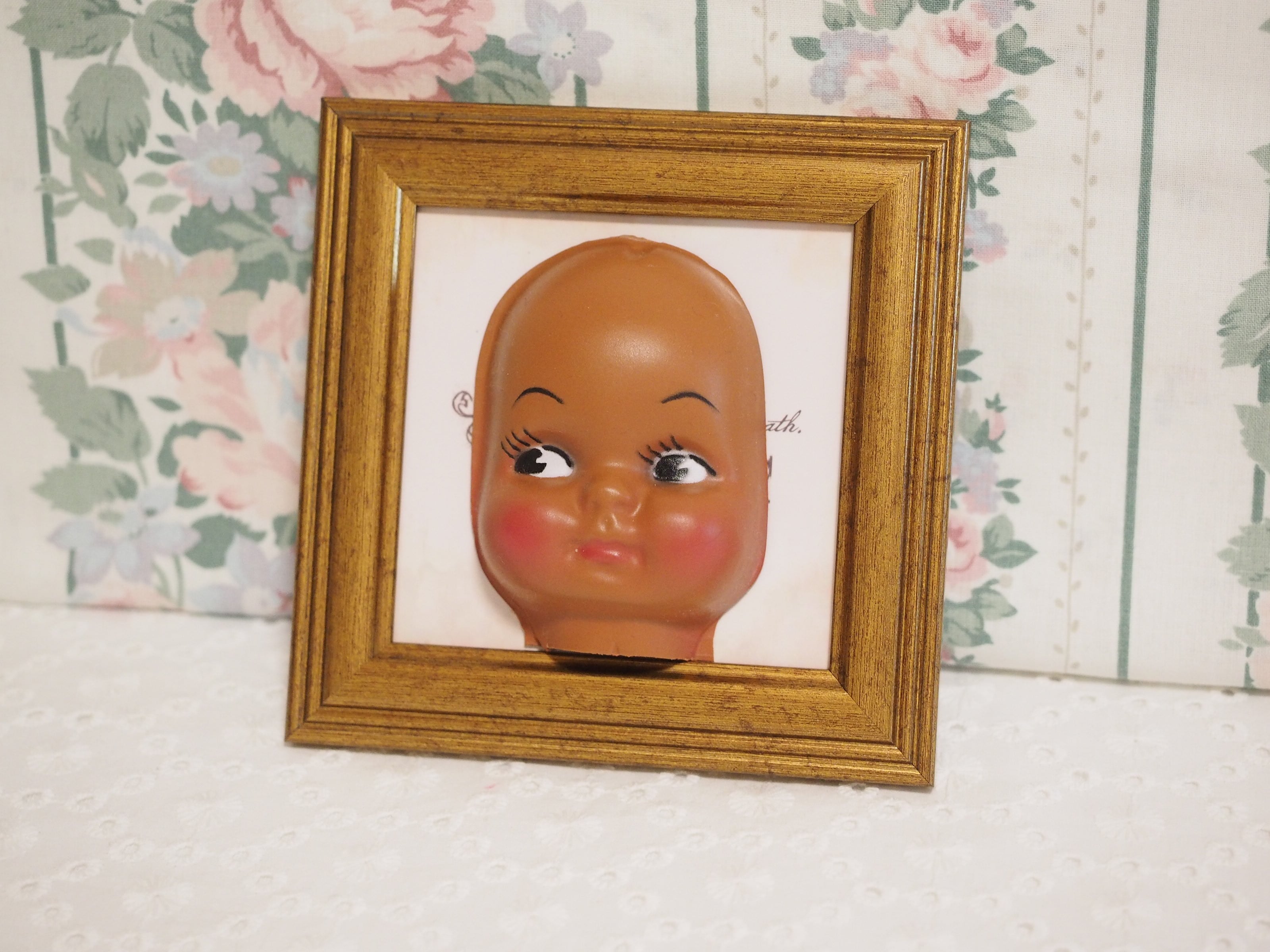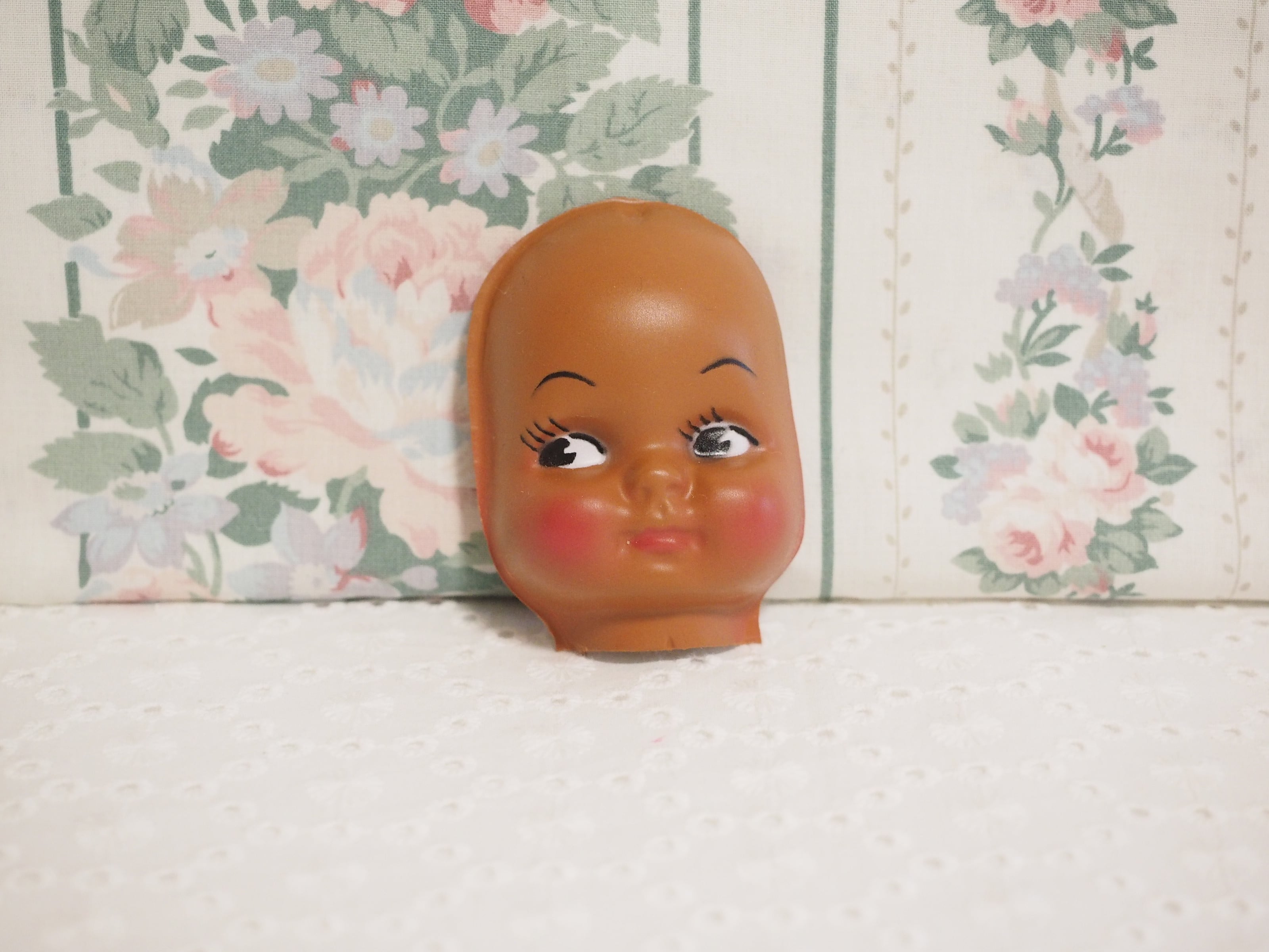 こんがり焼けた肌にばら色の頬、キュートなビンテージフェイスパーツです。