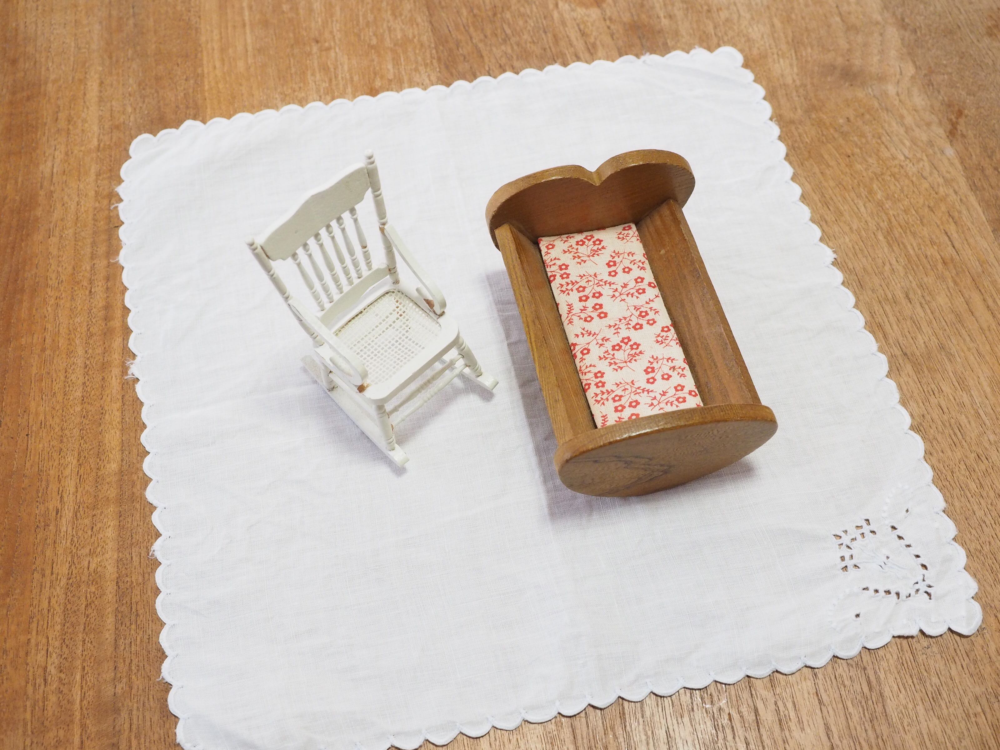 (家具・ぬいぐるみは大きさ等の比較用です。ぬいぐるみは高さ約13㎝、木のベッドは長さ約11.5㎝)