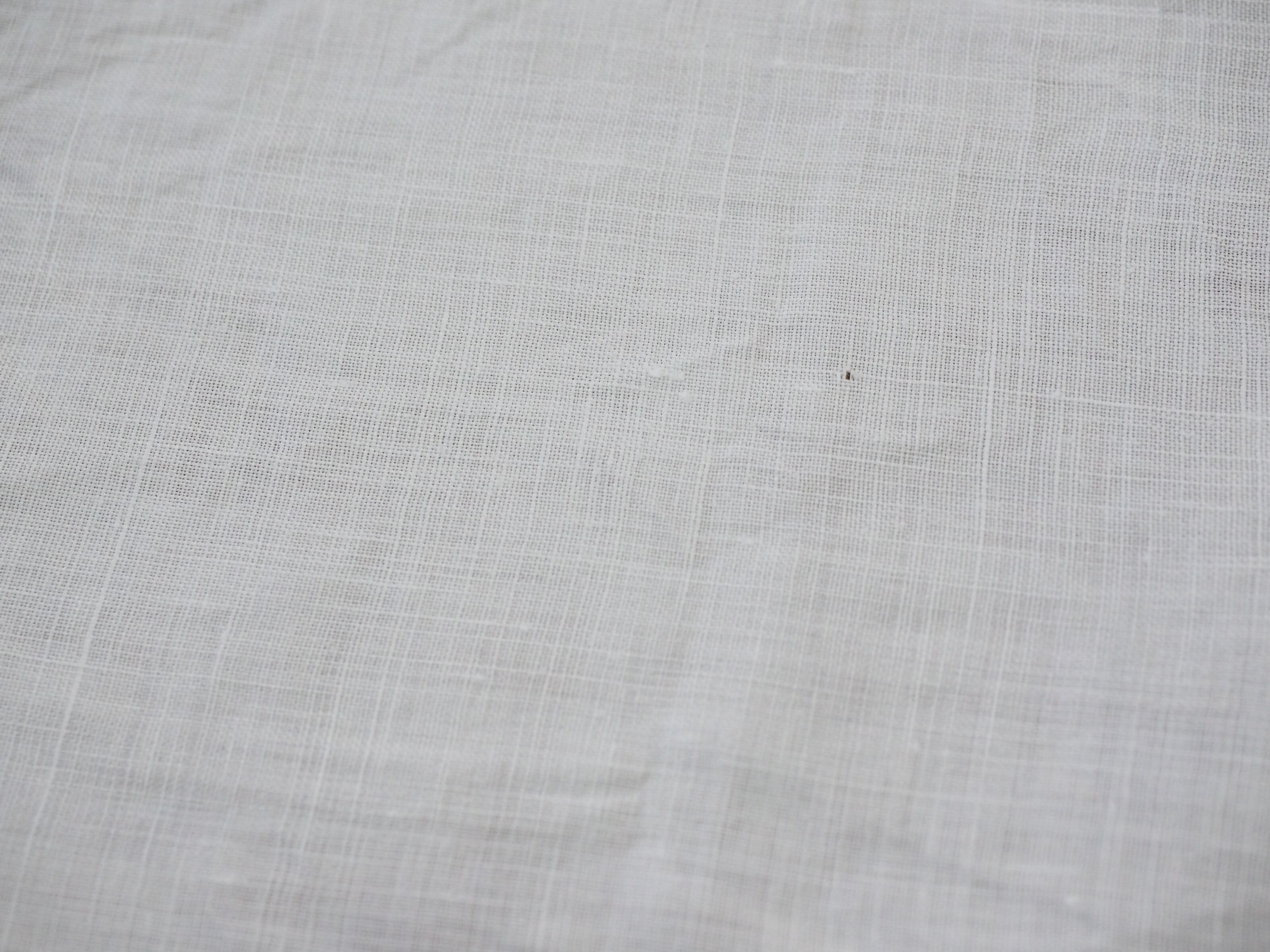 所々糸のかたまりや筋が見られますが、「ネップ」と呼ばれる繊維が生地表面に出たものでリネン素材の特徴と思われます。