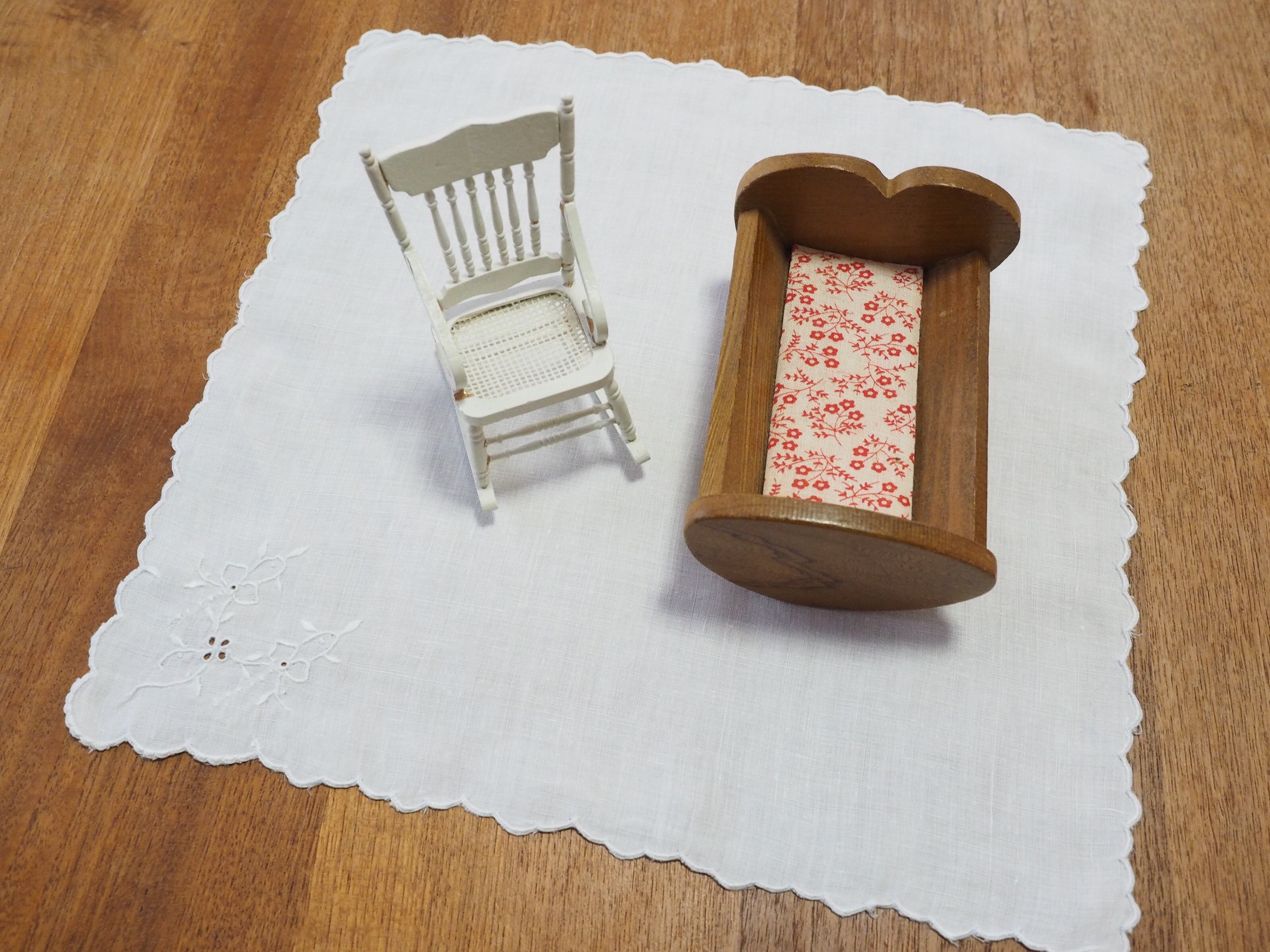 シンプルなコーナー刺繍のナプキンですが、ぐるっと縁に施されたスカラップもとても素敵です。