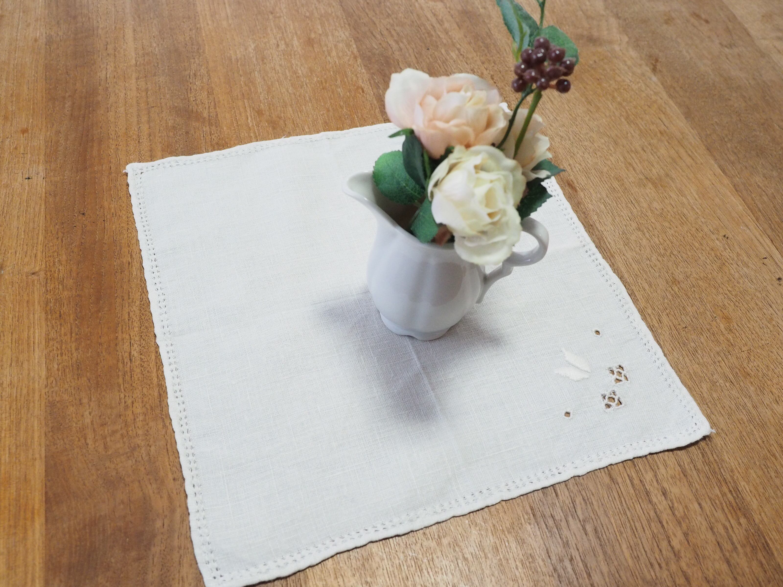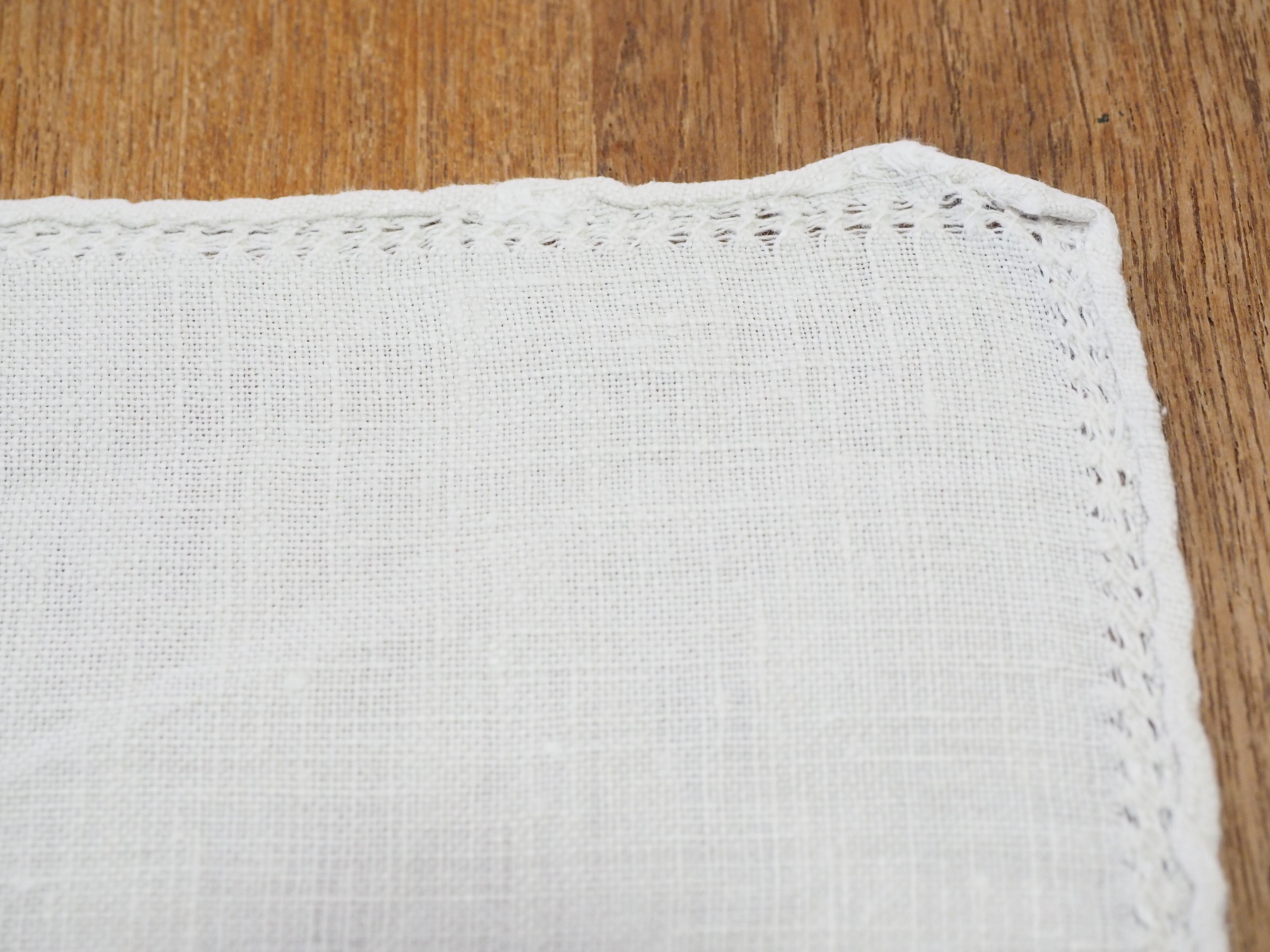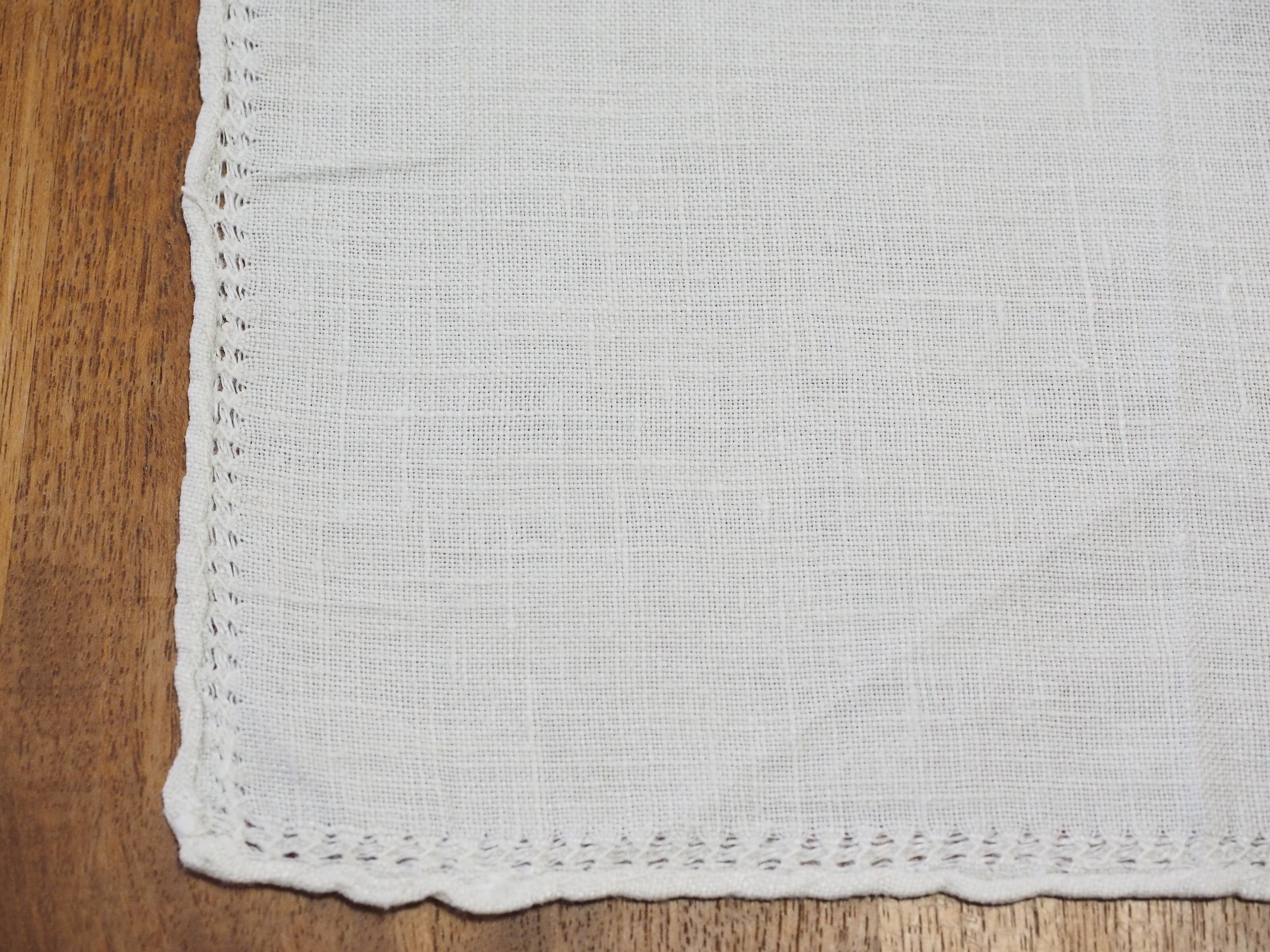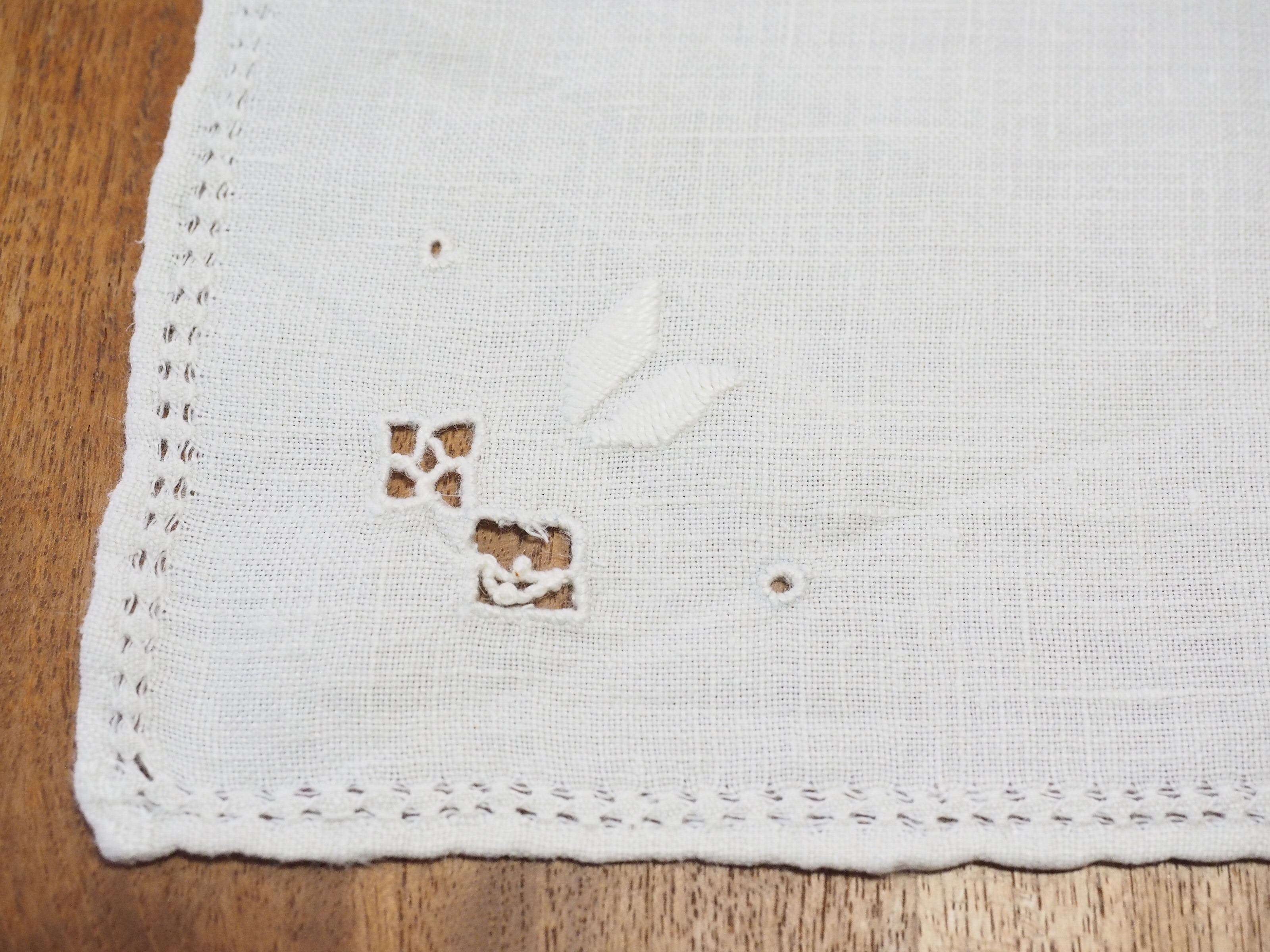 *まわりがガタガタしていたり、ほつれがあるもの、茶色がかったシミ、ドロンワークの糸切れがあり、ランダムでお送りいたします。