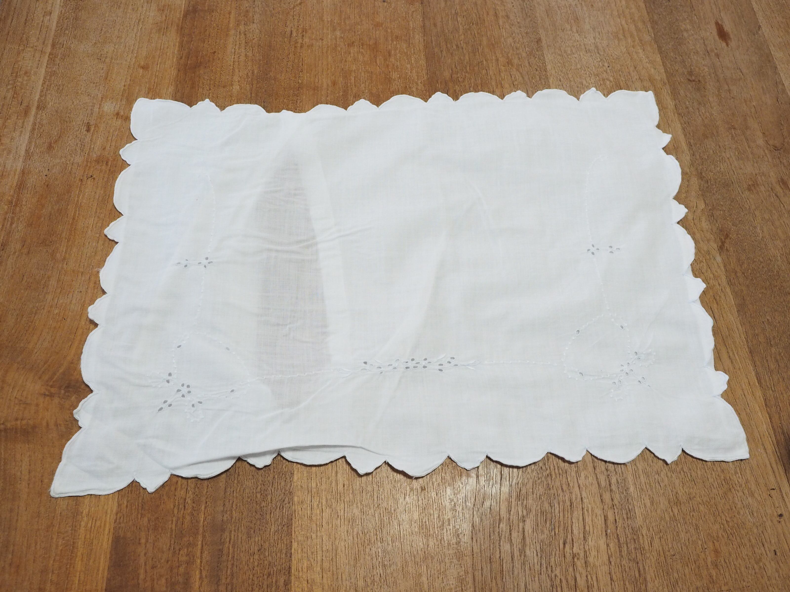 ビンテージなホワイトカラーと薄い生地、控えめな刺繍が施されたピローカバーです。