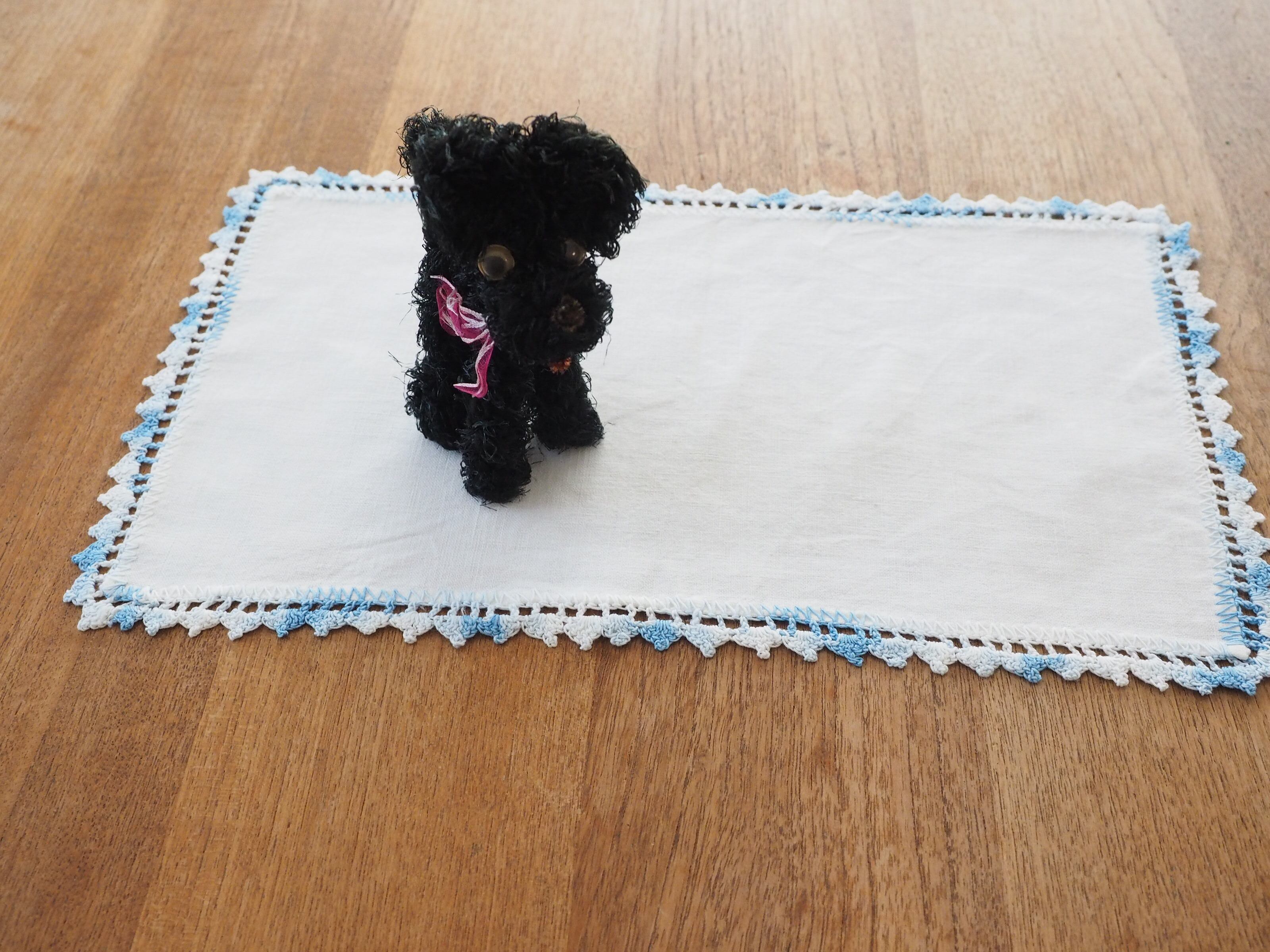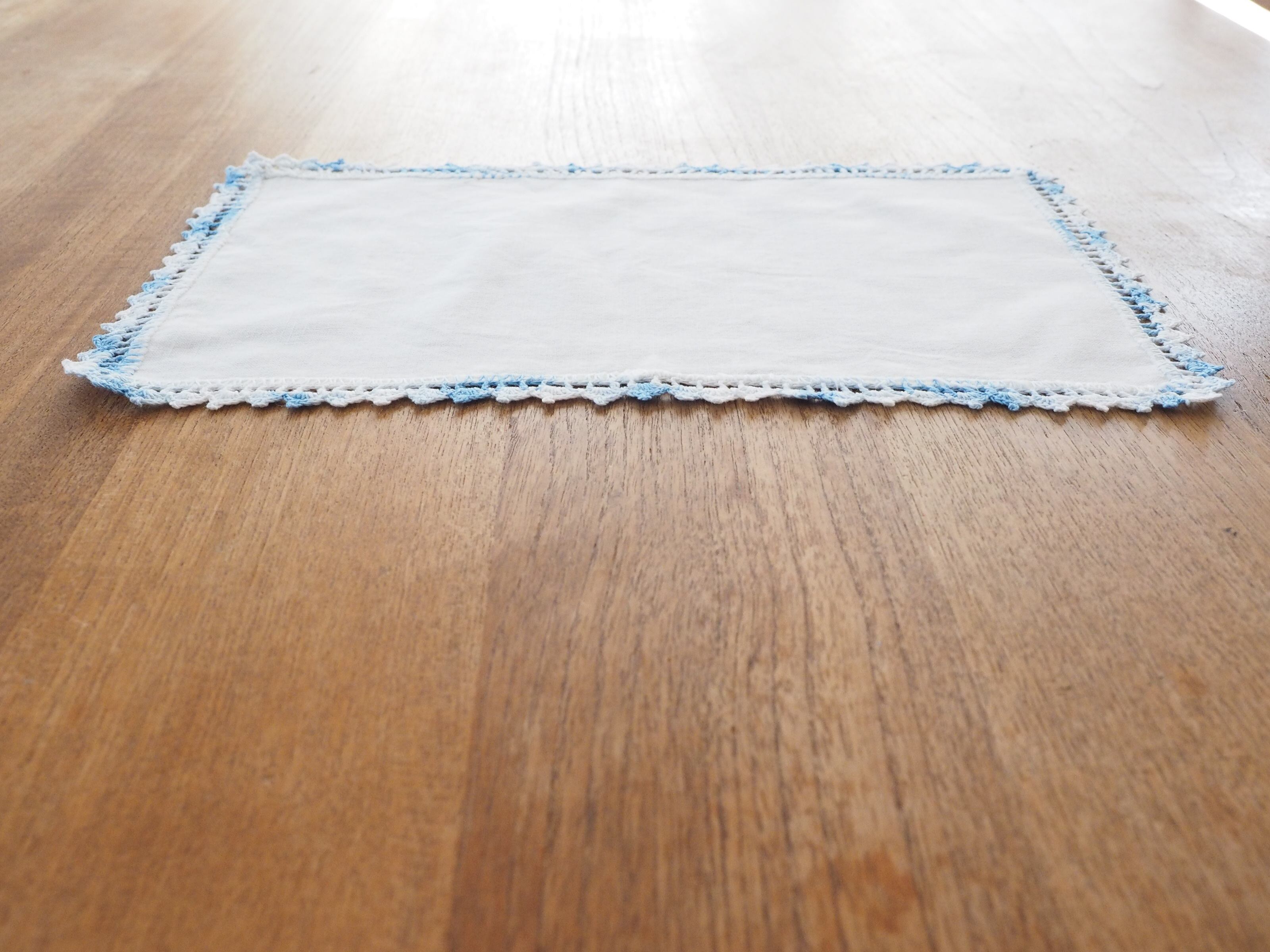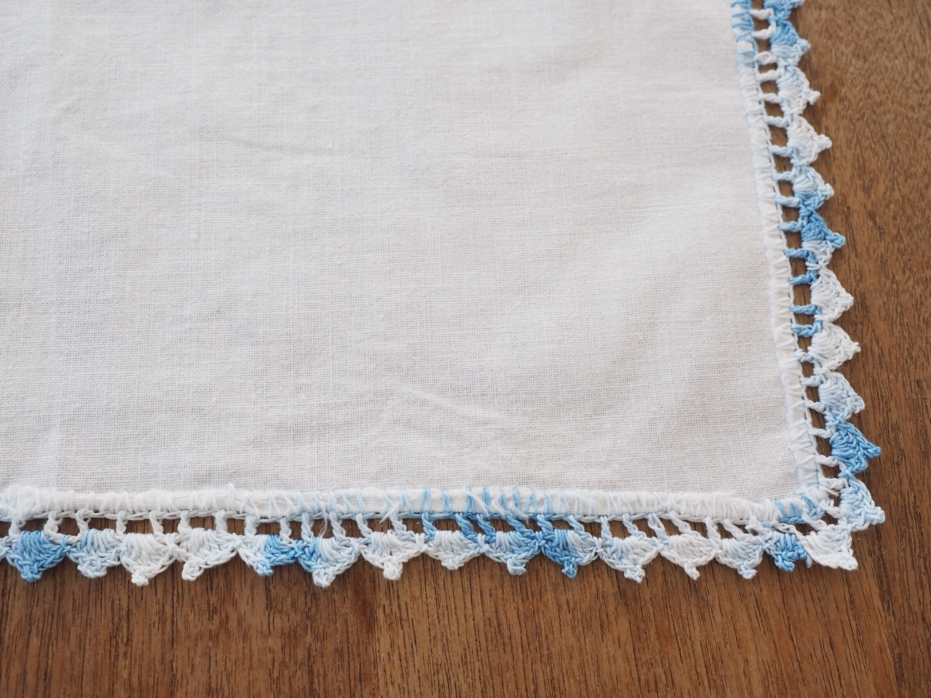 縁編みは柔らかく、ブルーのグラデーションカラーが爽やか。