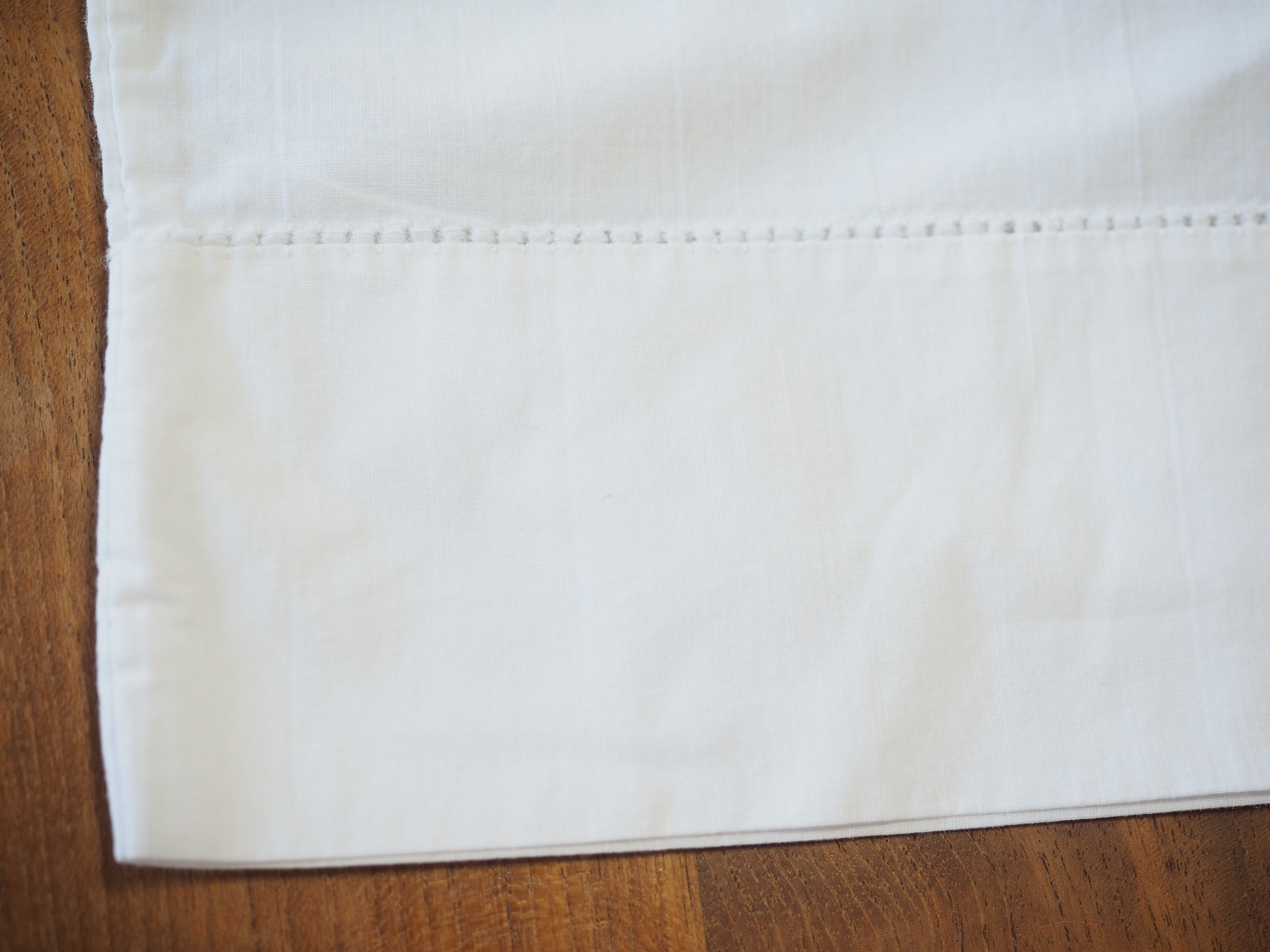 入れ口の折り返し部分に穴が開ききっていないのですが、ドロンワークが施されているところも手仕事の様子がみられアクセントになっています。