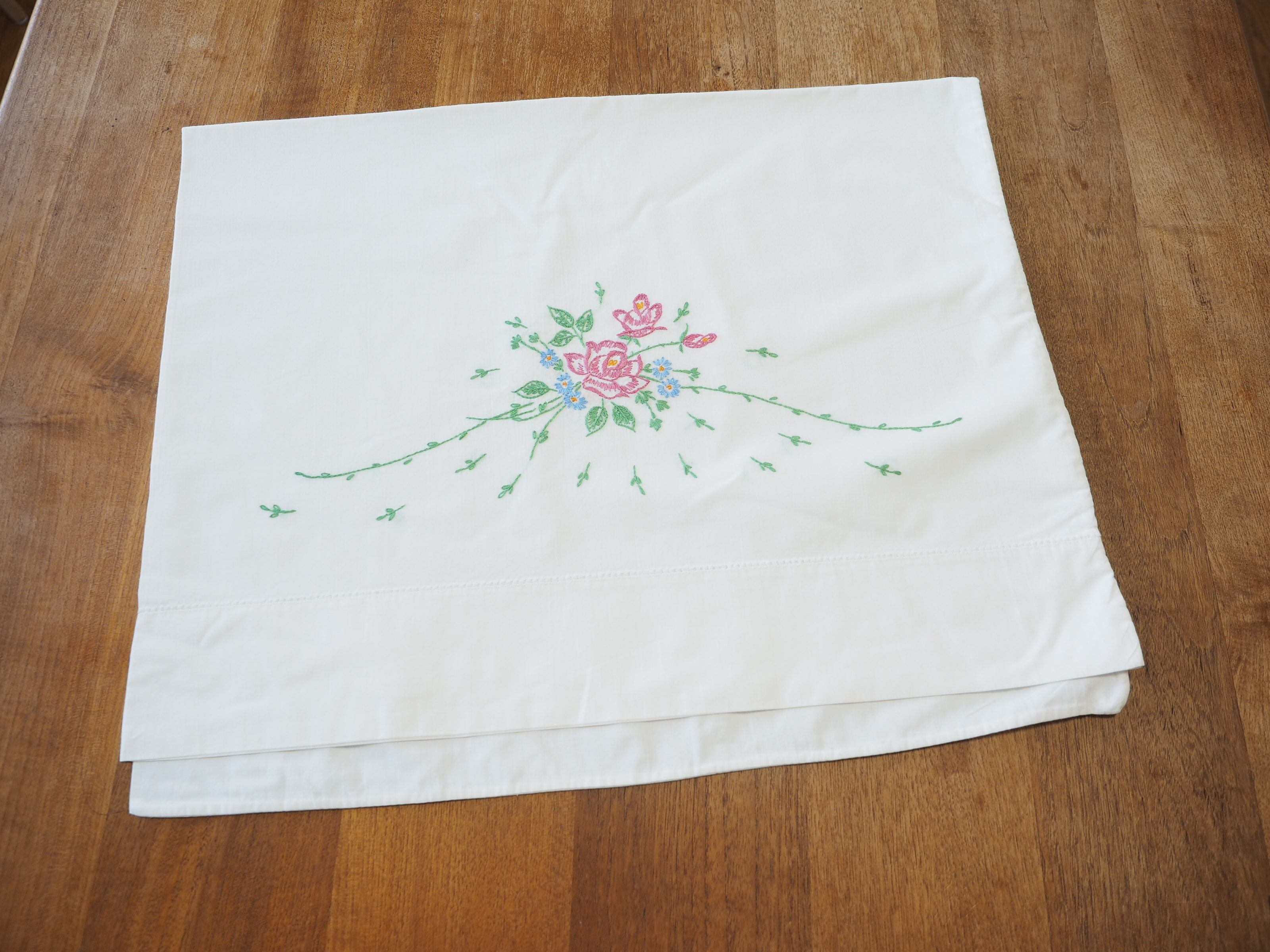 薄手コットン素材と思われ、洗いざらしたような風合いと1か所の刺繍がシンプルで素敵です。