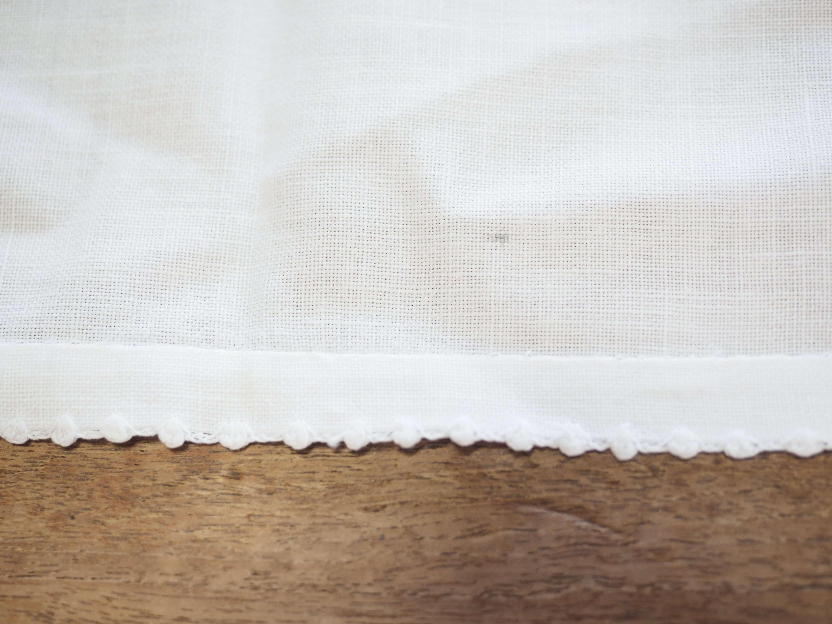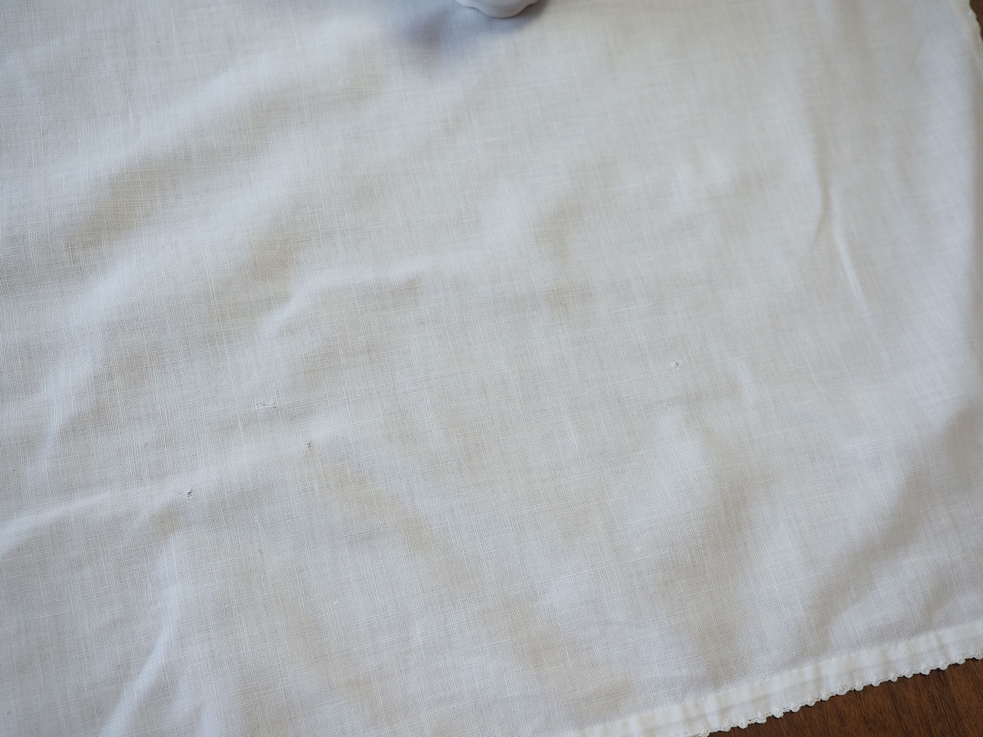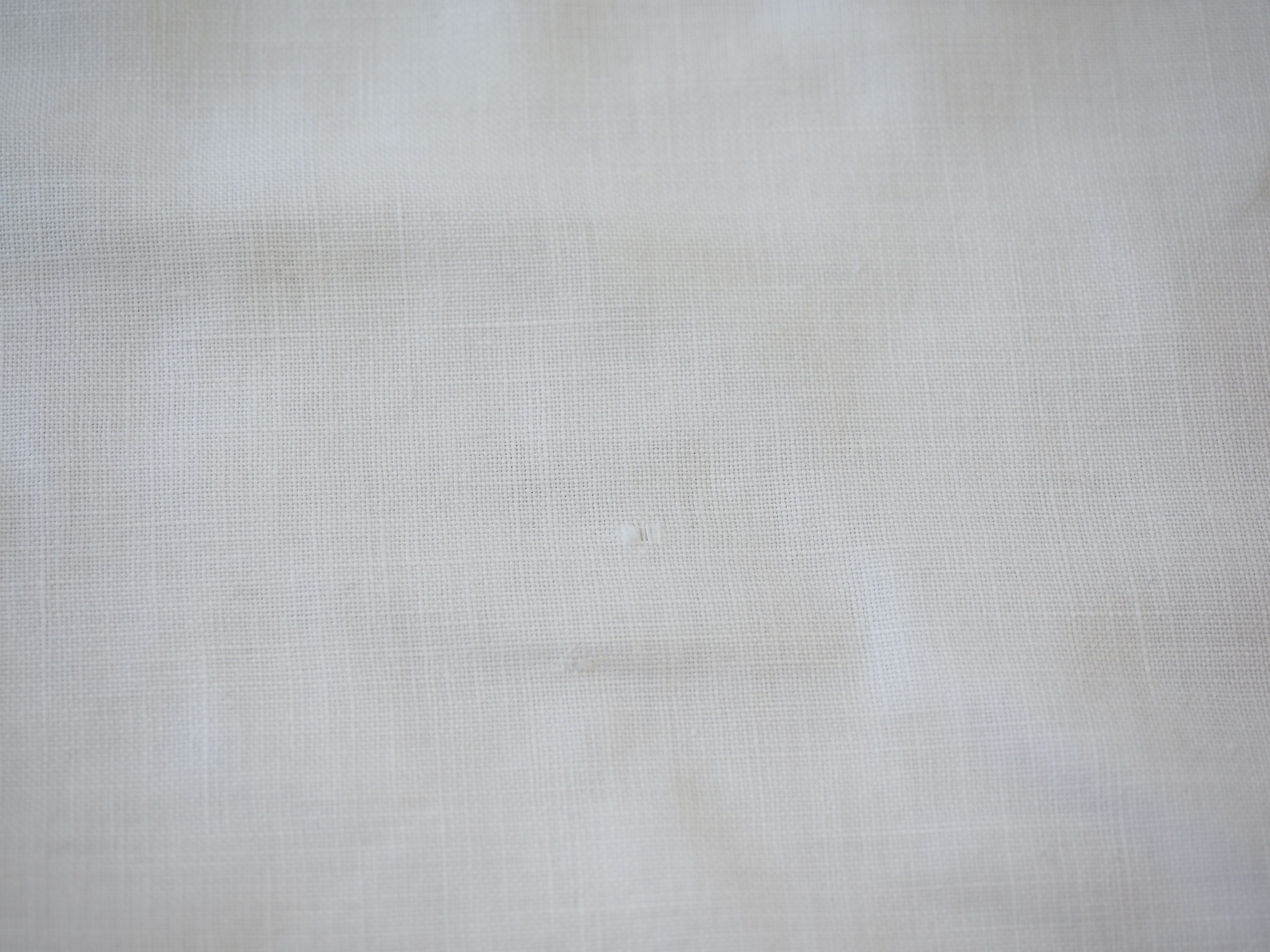 所々糸のかたまりや筋が見られますが、「ネップ」と呼ばれる繊維が生地表面に出たものでリネン素材の特徴と思われます。