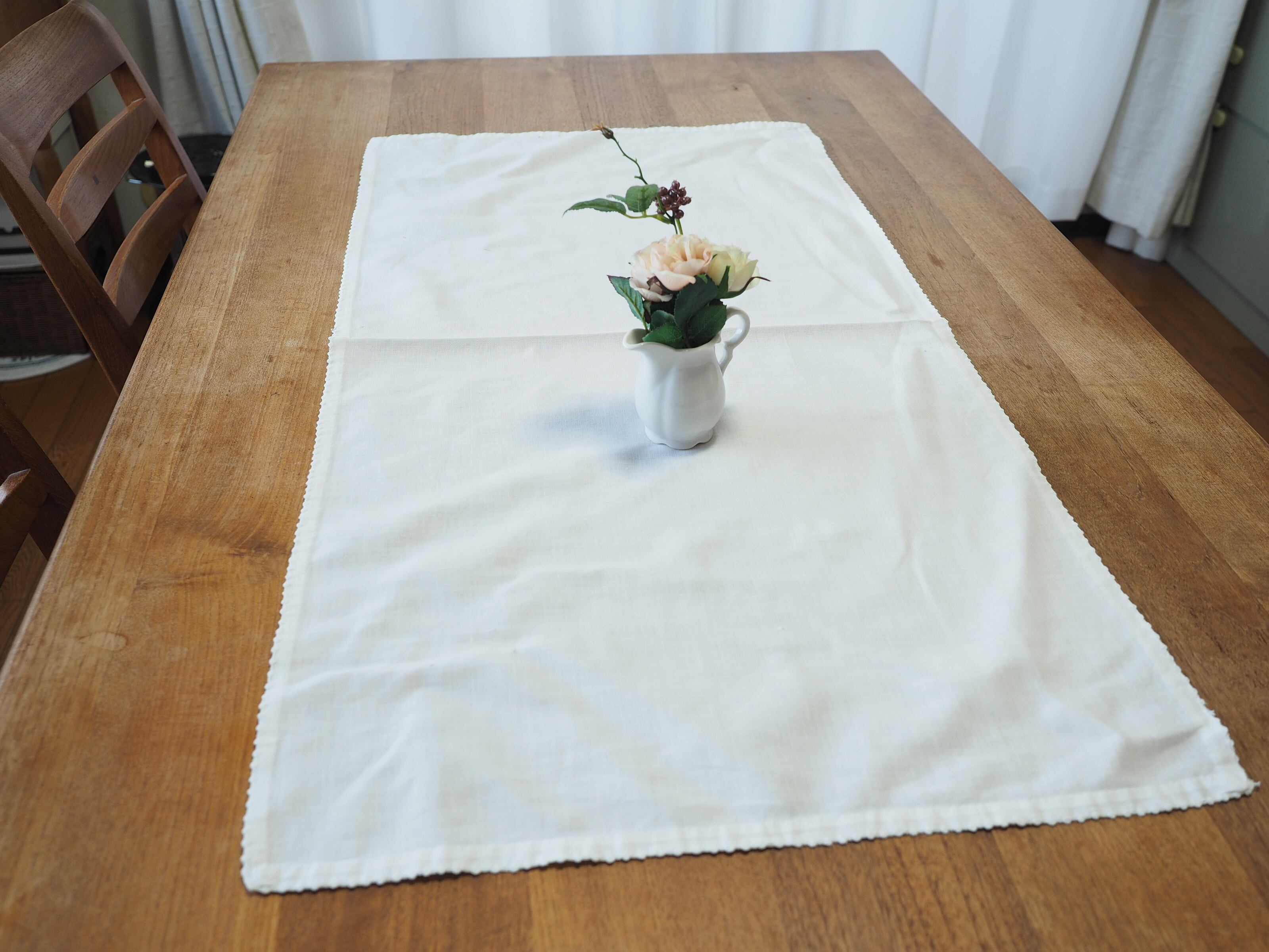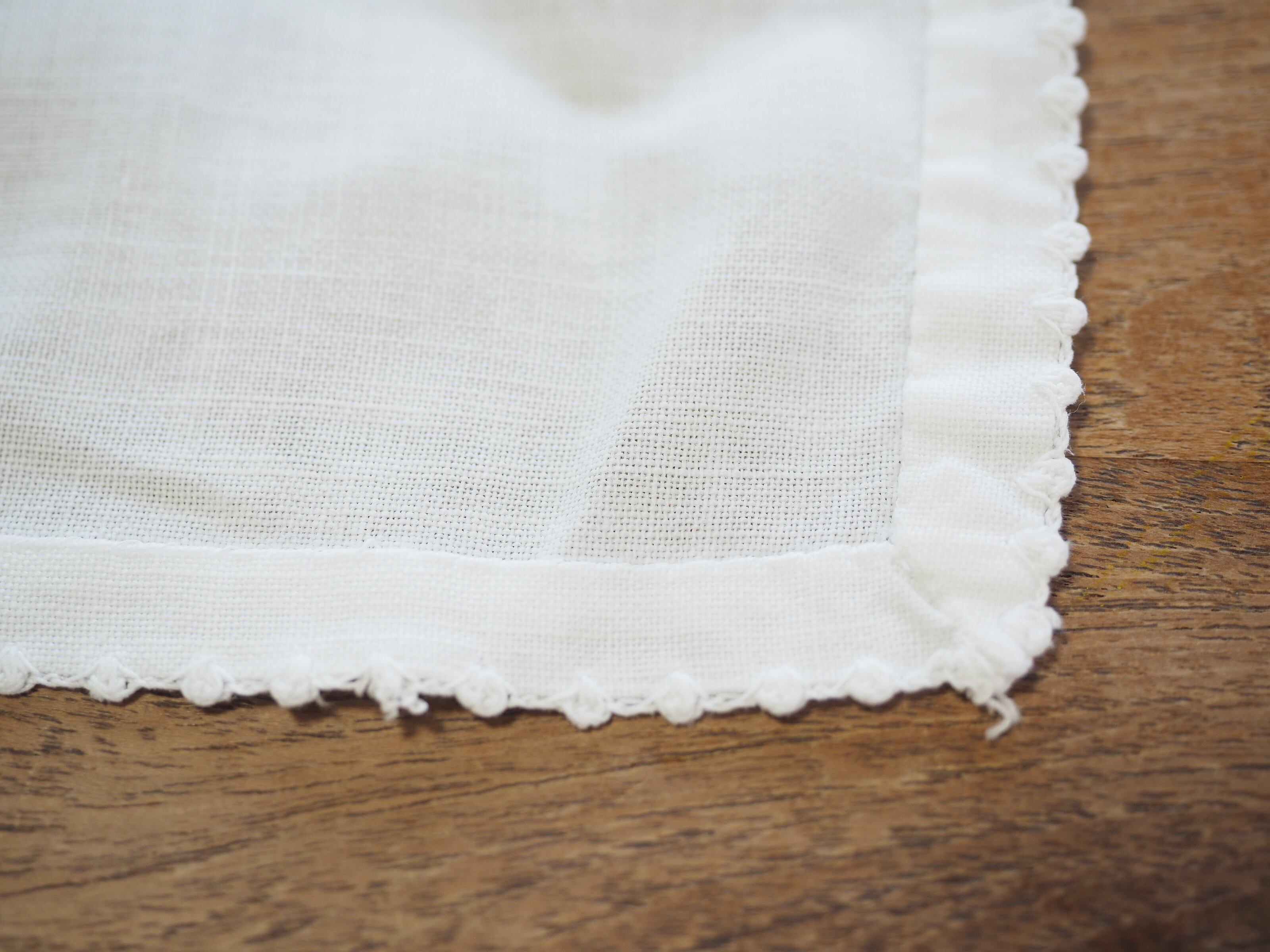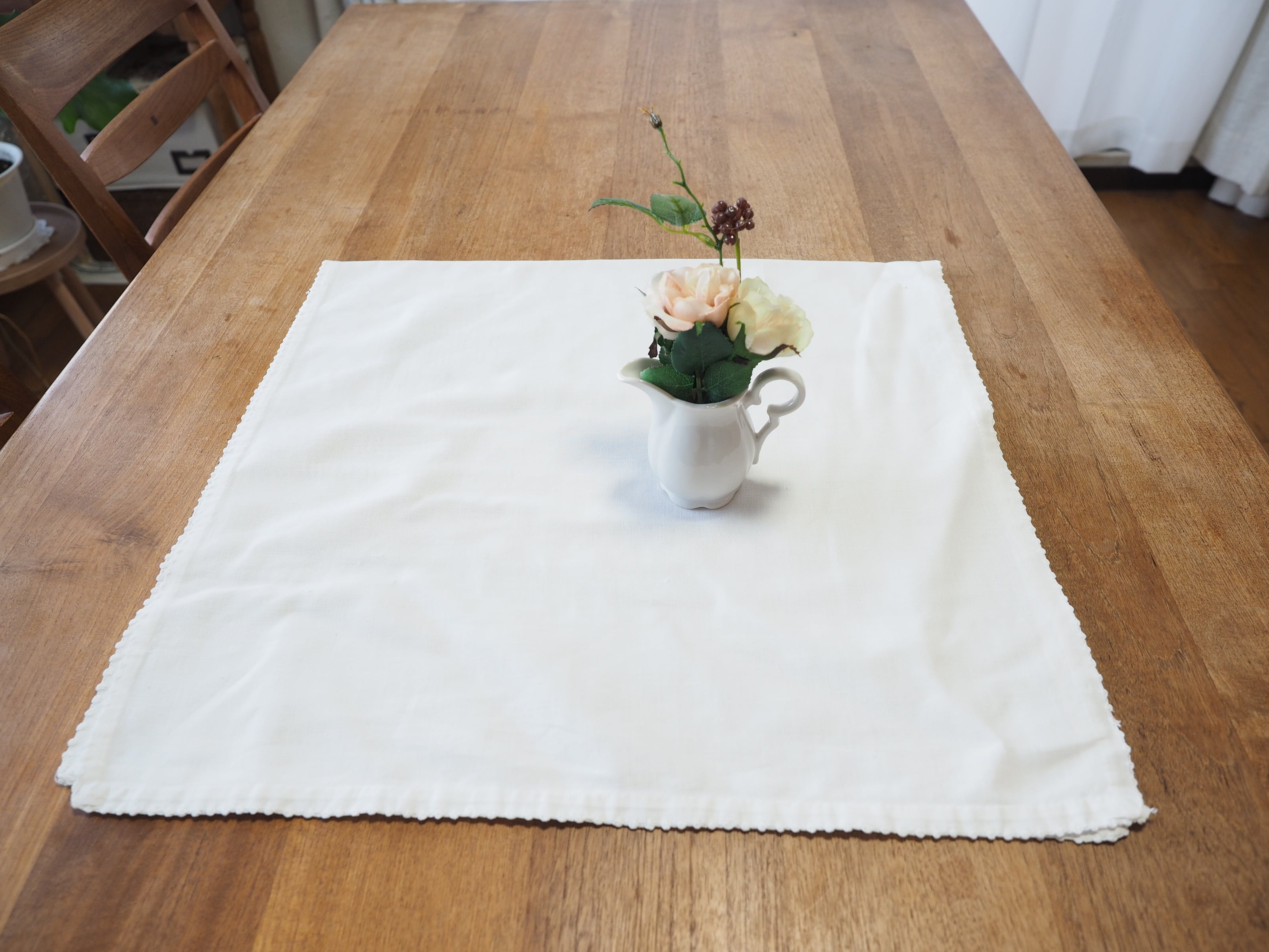 所々糸のかたまりや筋が見られますが、「ネップ」と呼ばれる繊維が生地表面に出たものでリネン素材の特徴と思われます。