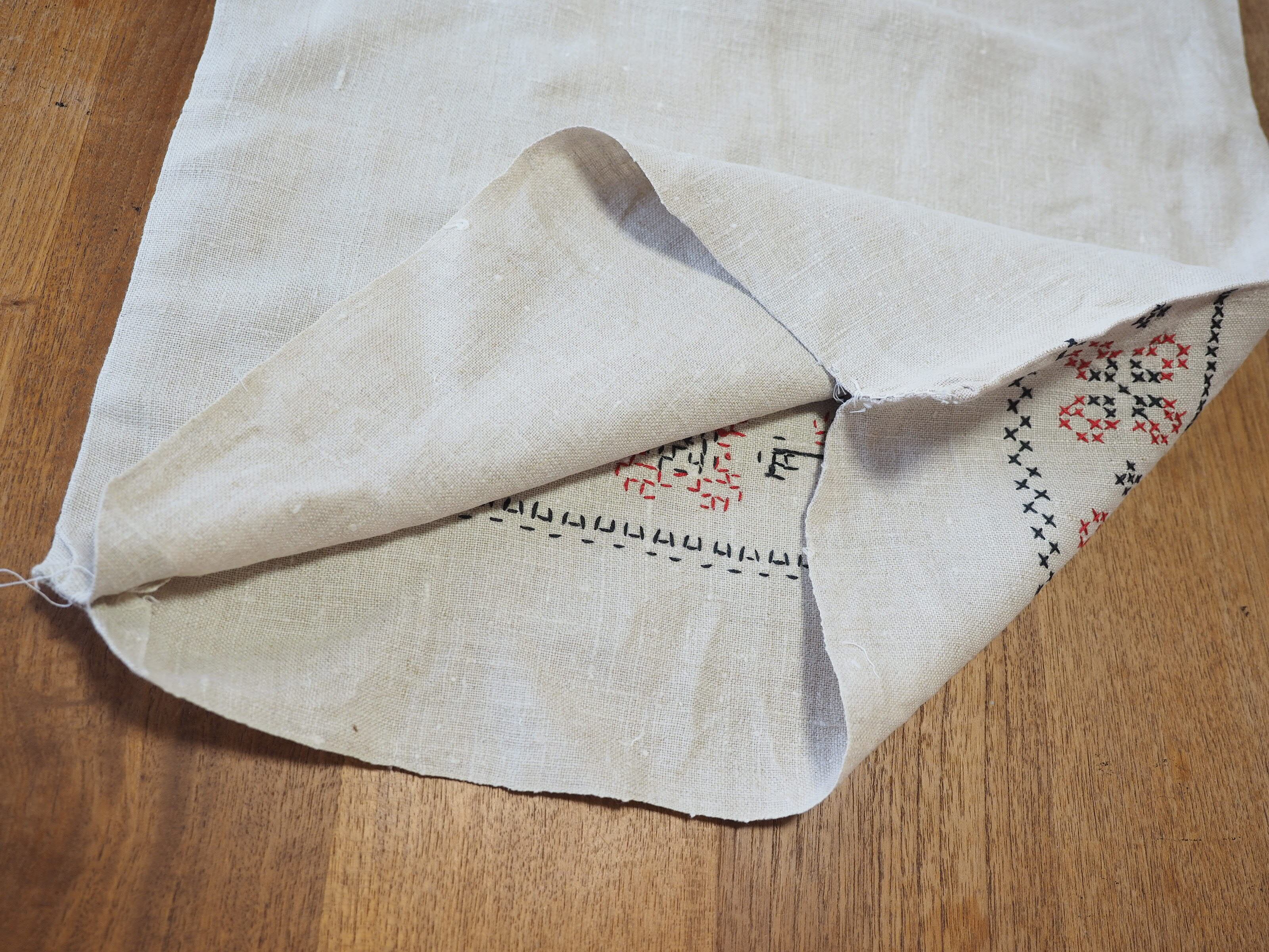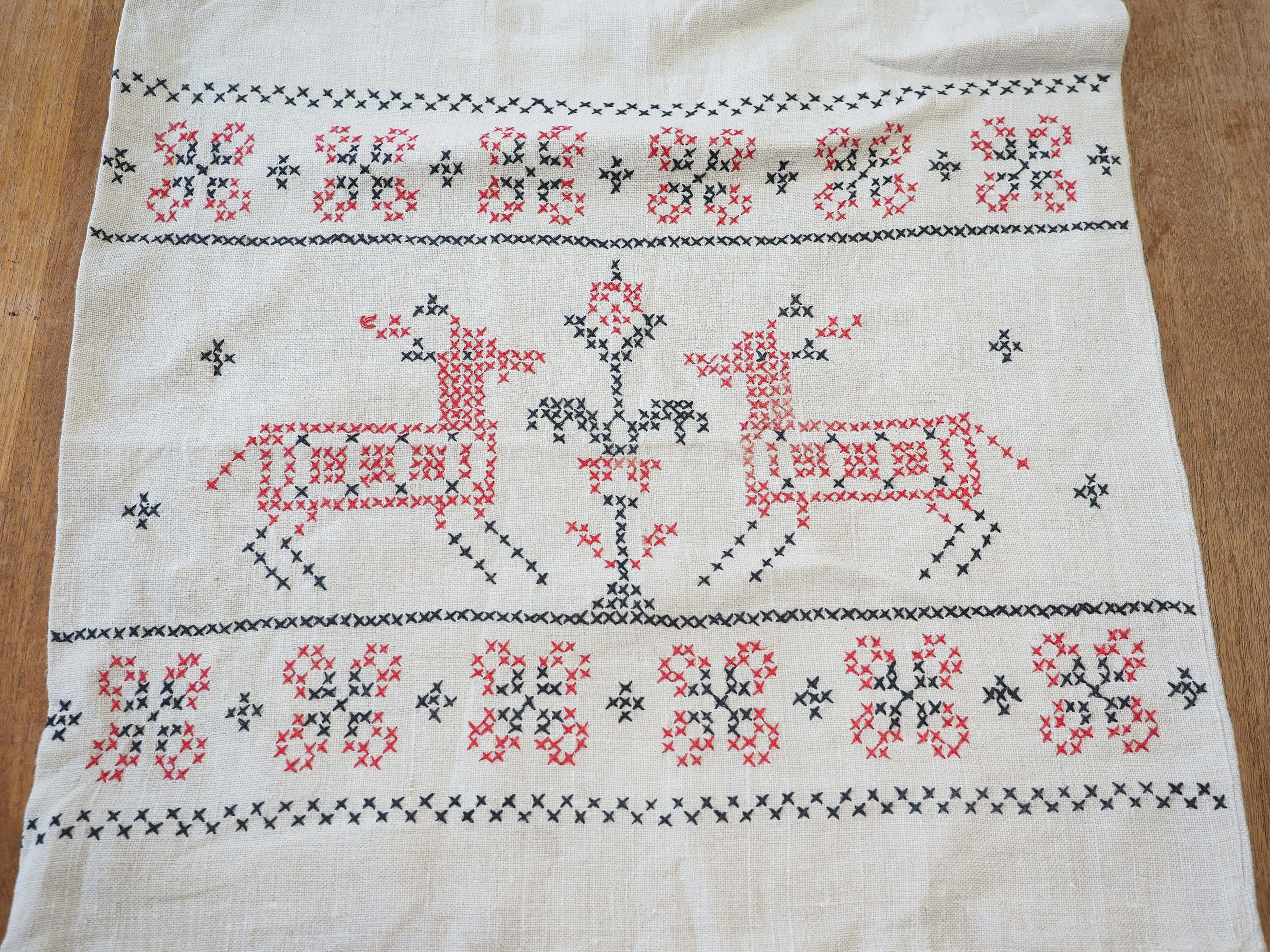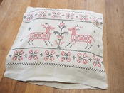 リネンのクッションカバー シカのクロスステッチ(色褪せあり)