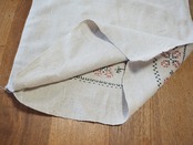 所々糸のかたまりや筋が見られますが、「ネップ」と呼ばれる繊維が生地表面に出たものでリネン素材の特徴と思われます。