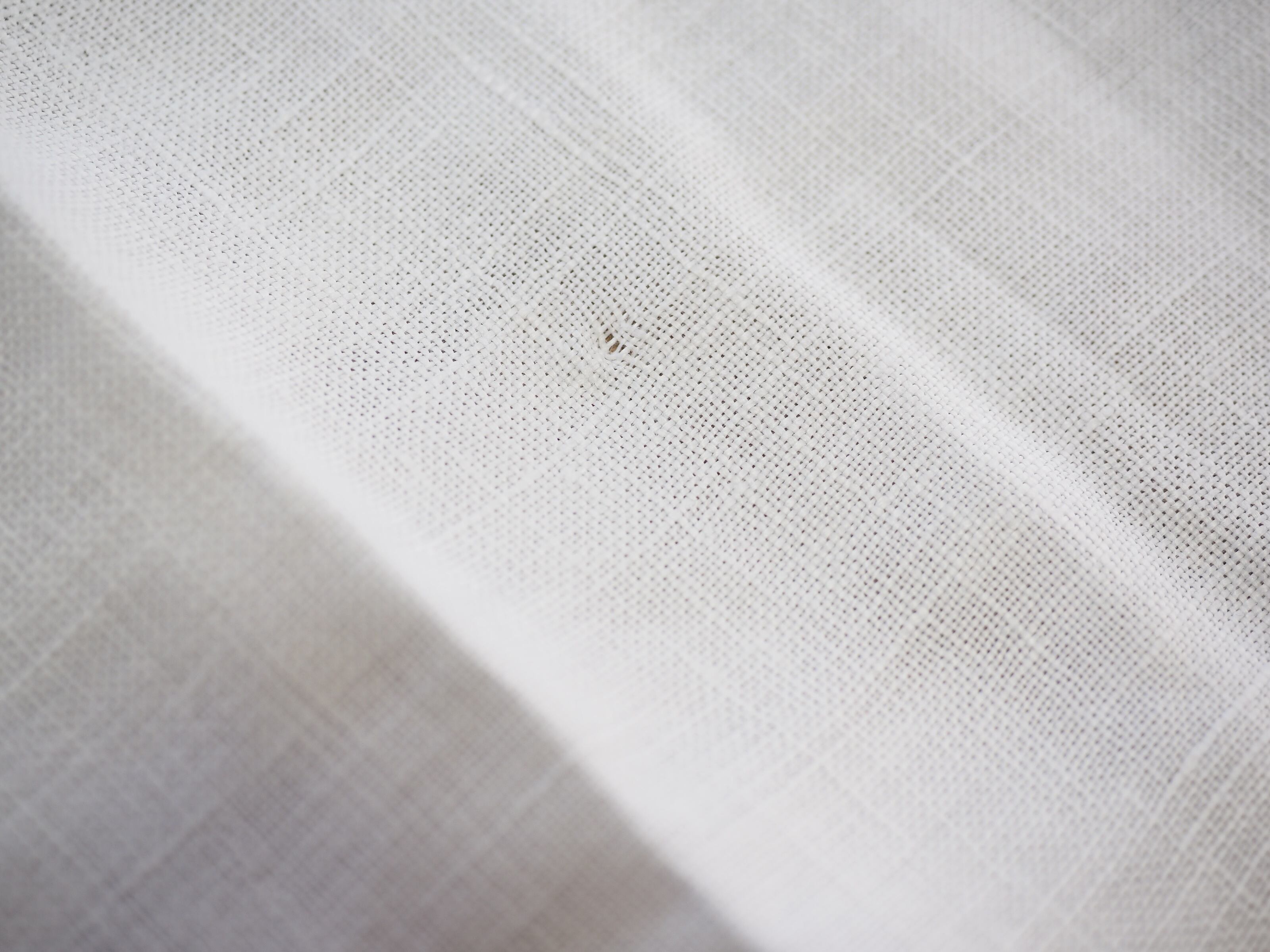 短い糸のはみ出した部分、刺繍の際刺したような針穴がございます。